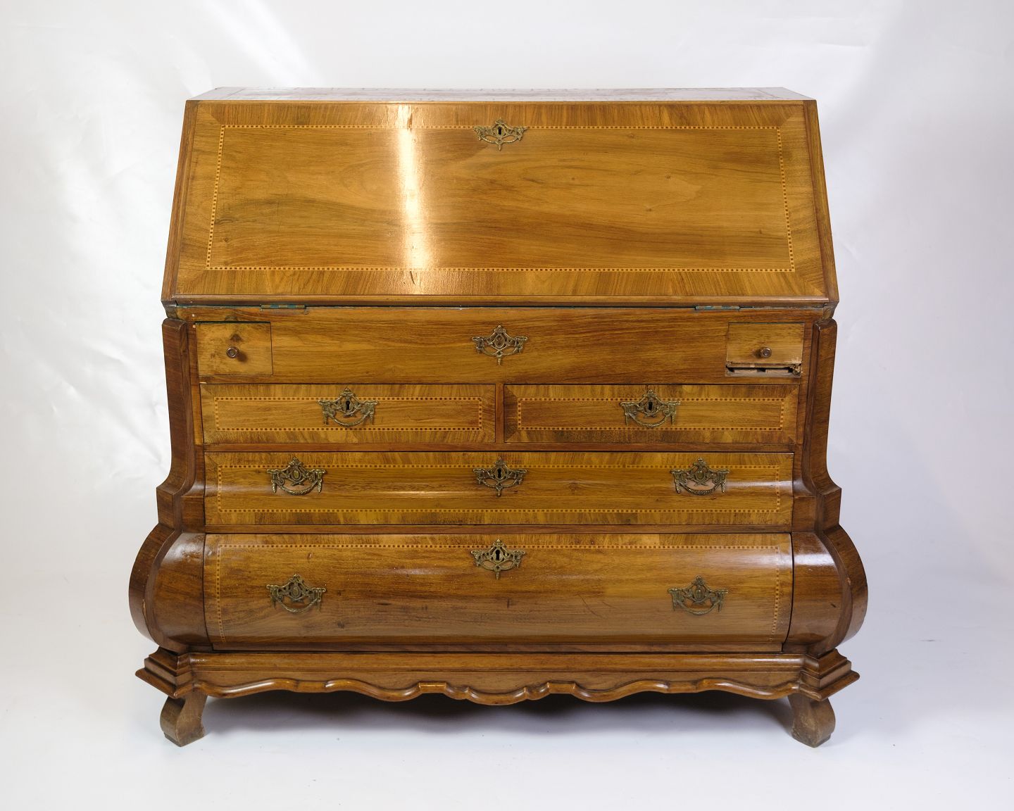 Chatol med fire skuffer, intersia og med indvendige bemaling. Chatollet er lavet i lys nøddetræ og fremstillet af møbelfabrikken Lysberg & Hansen, fra omkring år 1890erne.