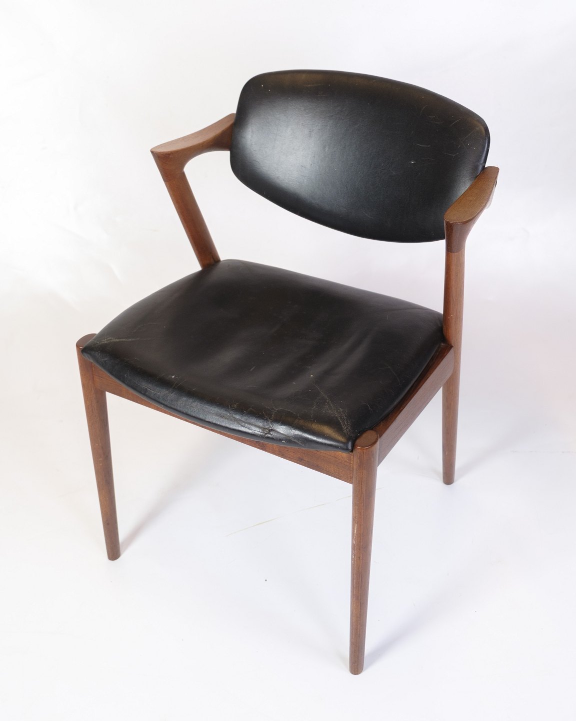 Spisebordsstol - Model 42 - Teaktræ & Sort Læder - Kai Kristiansen - Schou Andersen - 1960erne