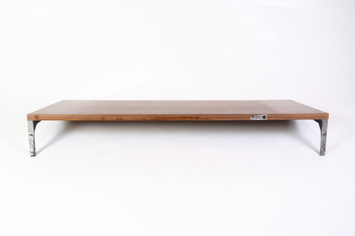 Wall-mounted shelf in rosewood with black lacquered metal suspension, designed by Albert Hansen as part of the Model Excellent series from the 1960s. The slim shape and beautiful grain patterns make the shelf ideal for smaller displays, books or decoration. Classic Danish design in a light and functional form.