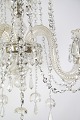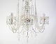 Stor Prismelysekrone med fem glasarme med elektrisk lyskilde fra omkring 1930'erne. Har mange smukke prismer og står i meget flot antik stand.