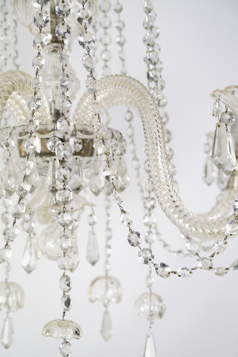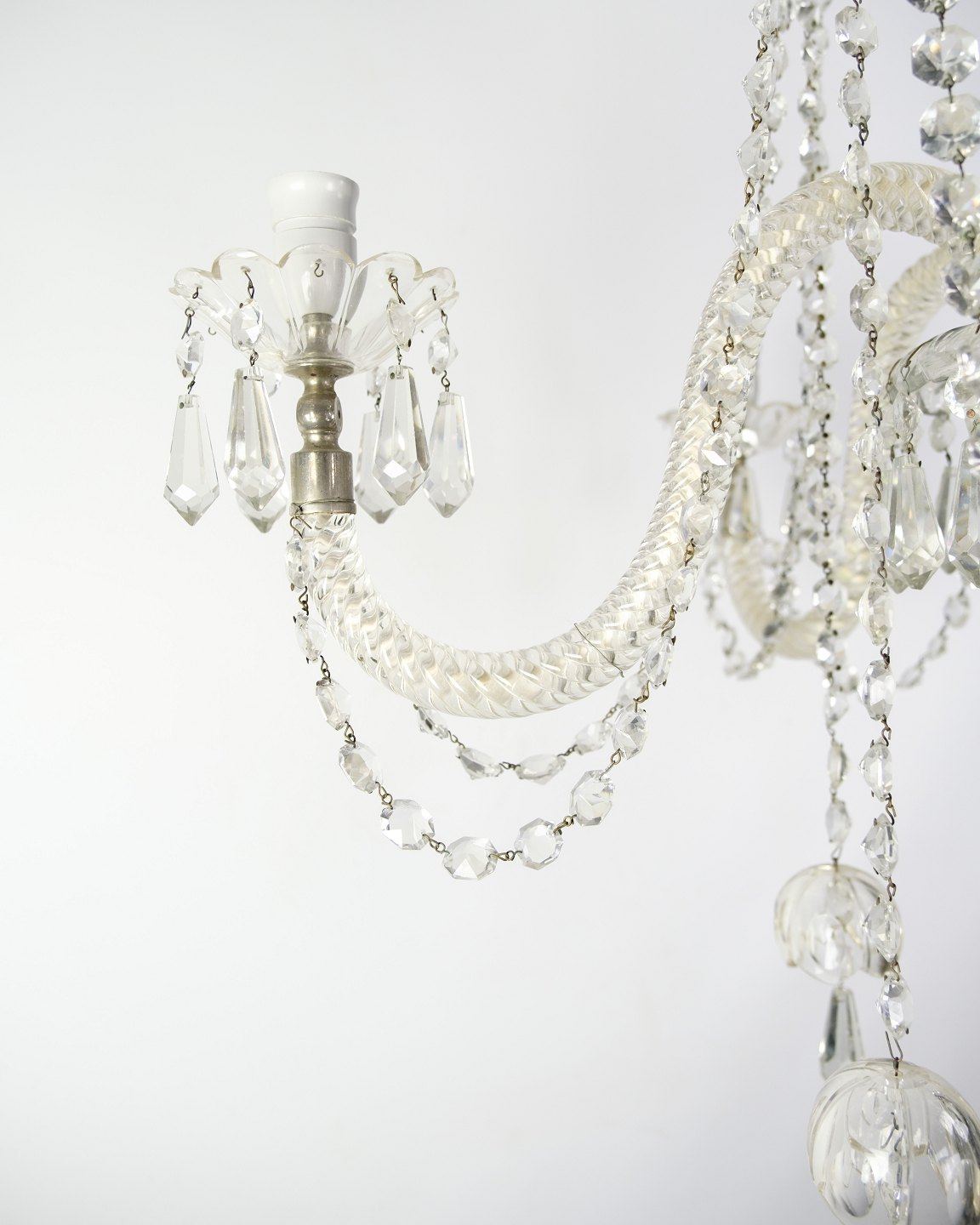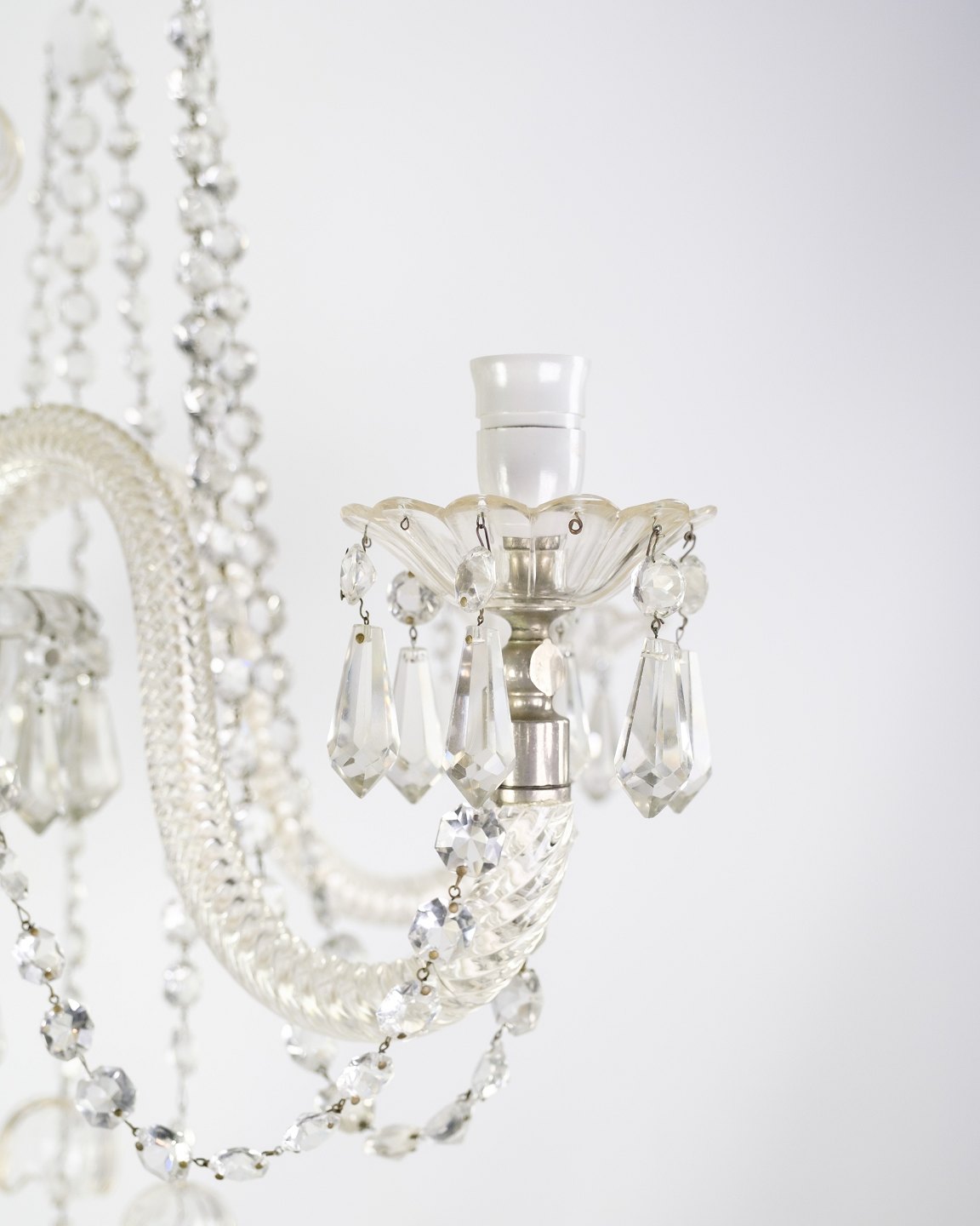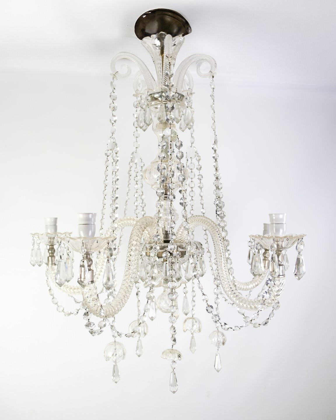Prismelysekrone - Fem glasarme - Elektrisk - ca. 1890
