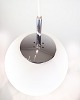 Pendel i kugleformet matteret glas med forkromet ophæng og hvid ledning. Lampen giver et blødt, diffust lys og passer perfekt over spisebord eller til entré. Et minimalistisk stykke skandinavisk design, hvor funktion og form mødes i en rolig helhed.