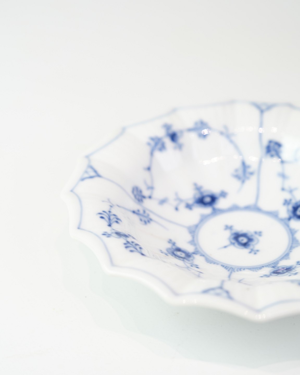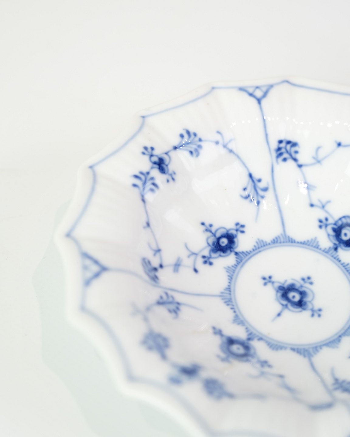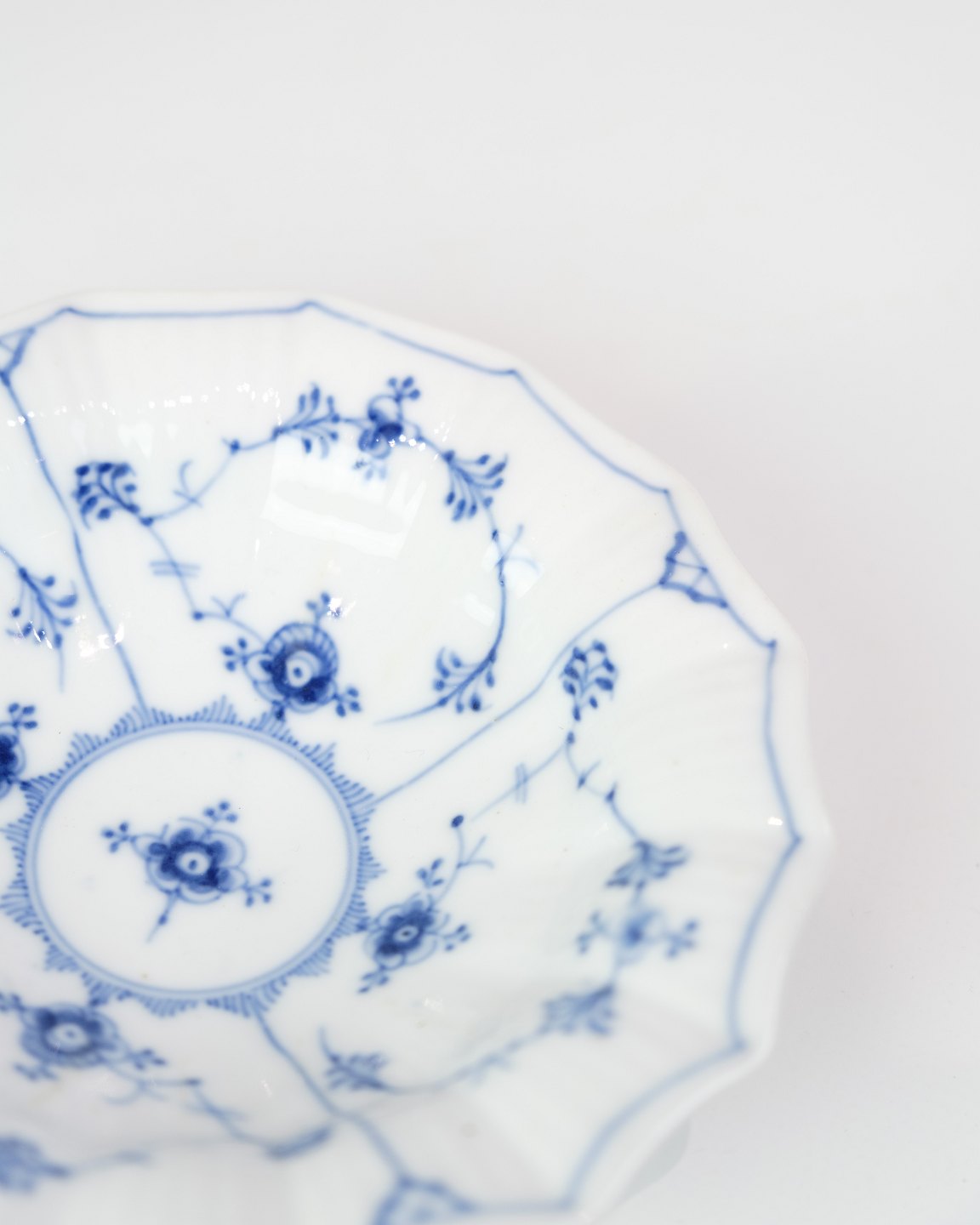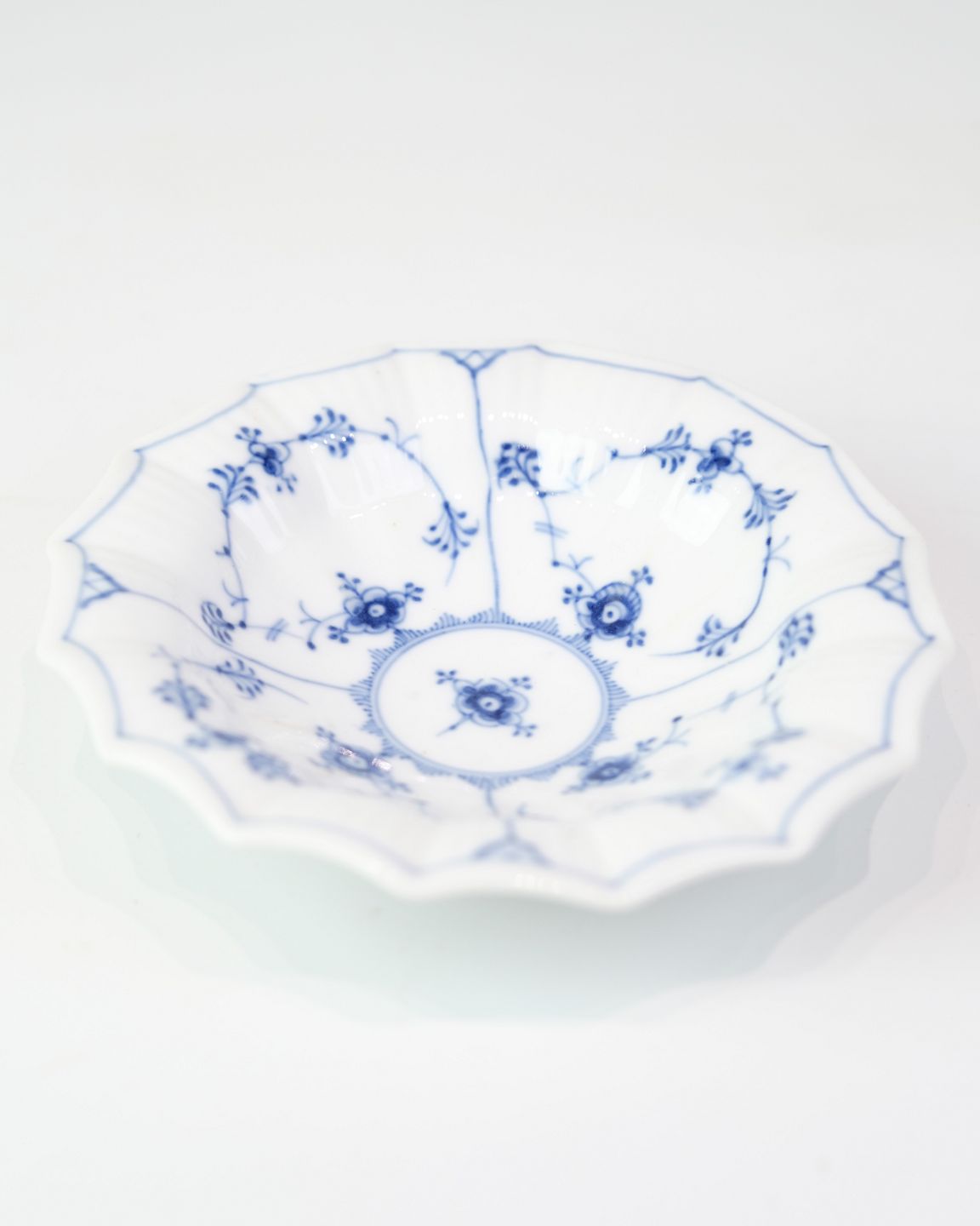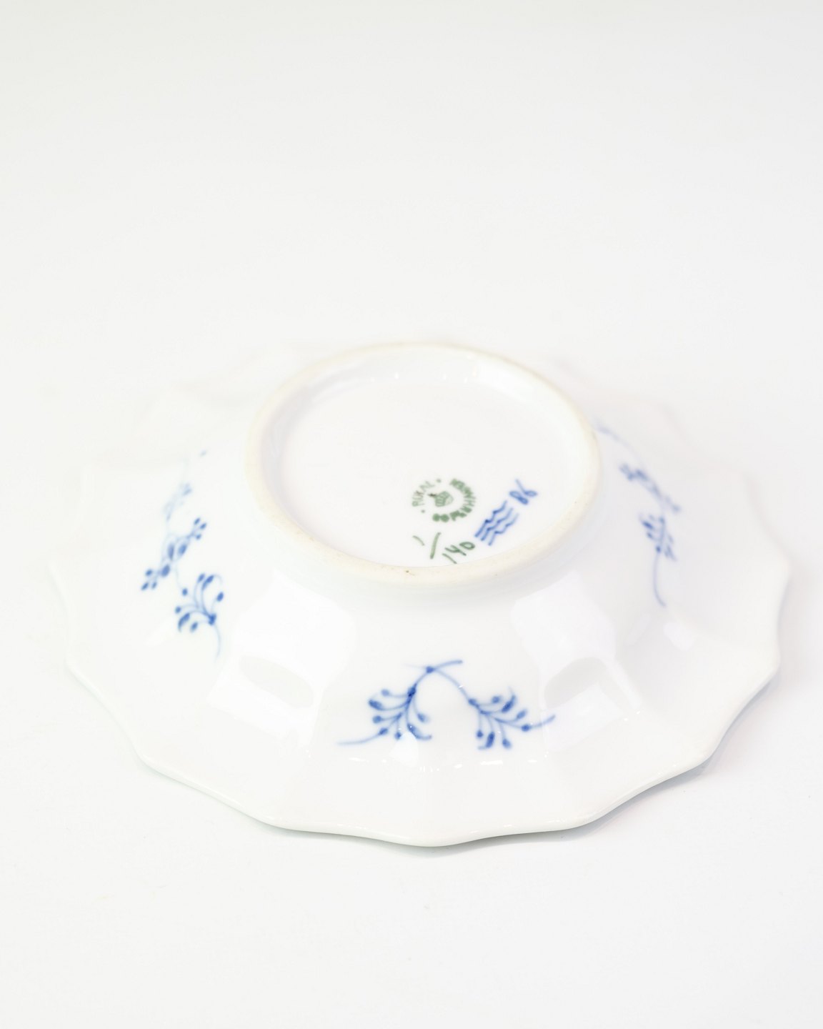 Elegant wave bowl from Royal Copenhagen in the iconic blue fluting pattern. The bowl has model number 140/1 and a diameter of 15 cm. Made of hand-painted porcelain with classic blue decoration.