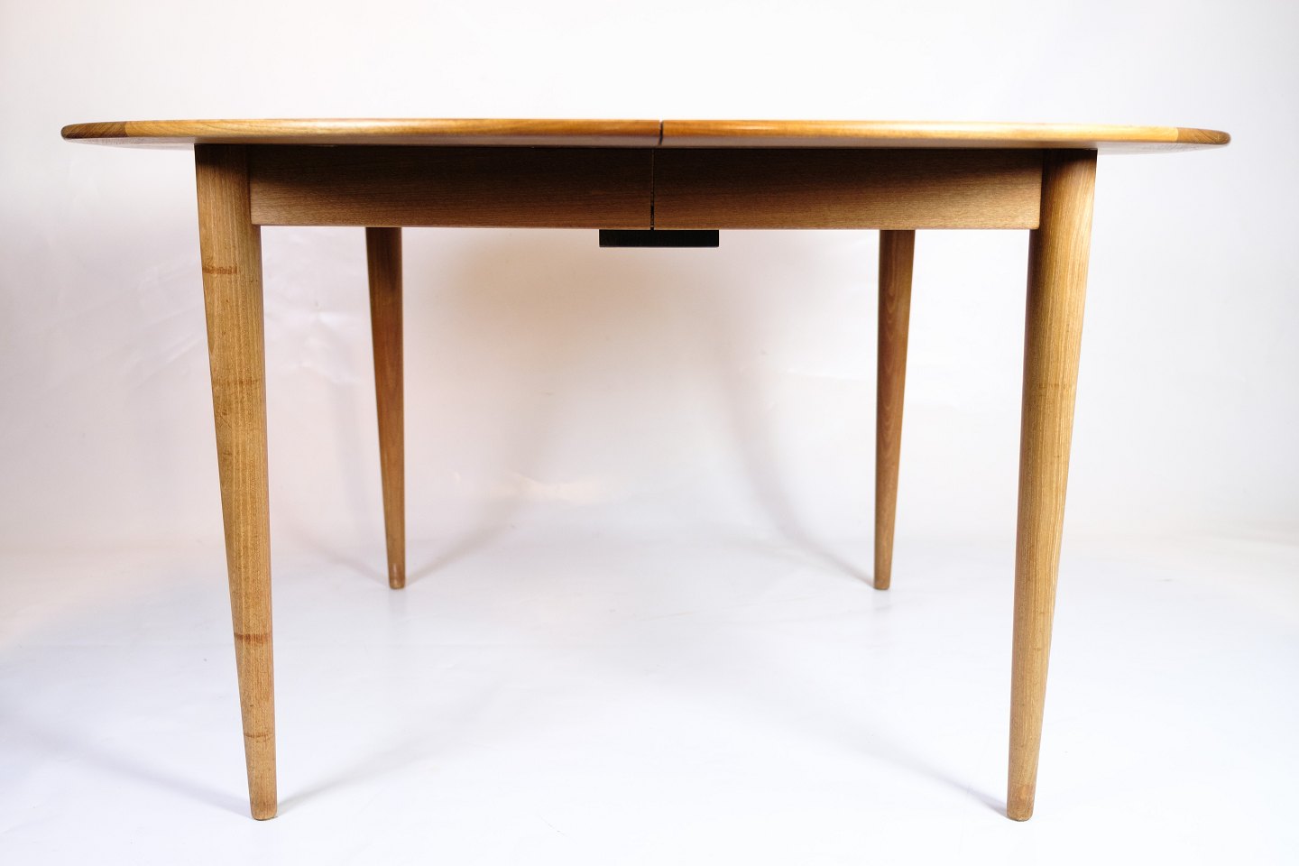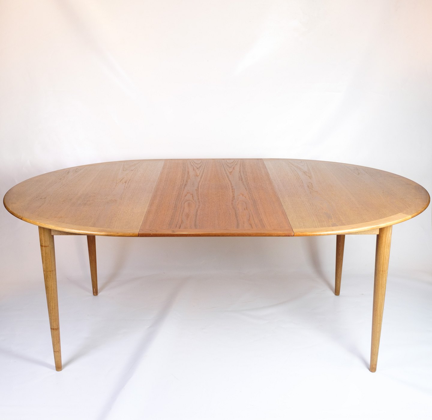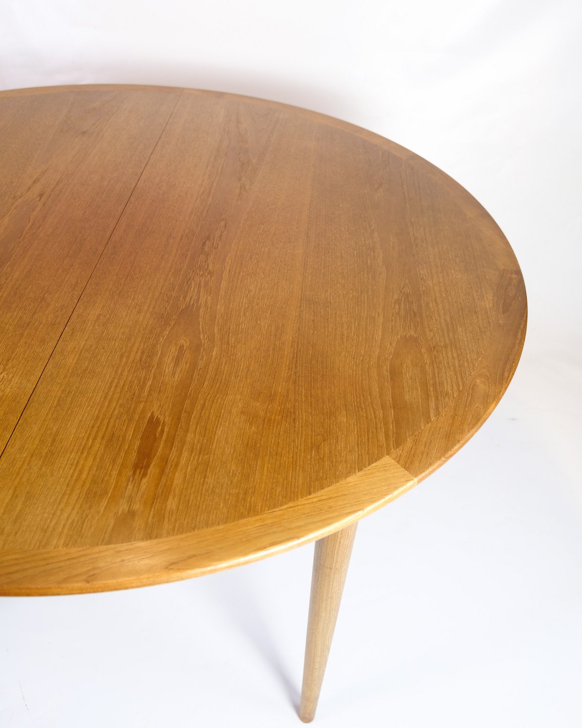 Kontakt os vedrørende prisRundt spisebord i teaktræ af Grete Jalk for P. Jeppesen fra omkring 1960’erne. Bordet kommer med 2 originale tillægsplader og bordet bære også designmærket “PJ” og det officielle “Danish Furnituremakers Control”-stempel.