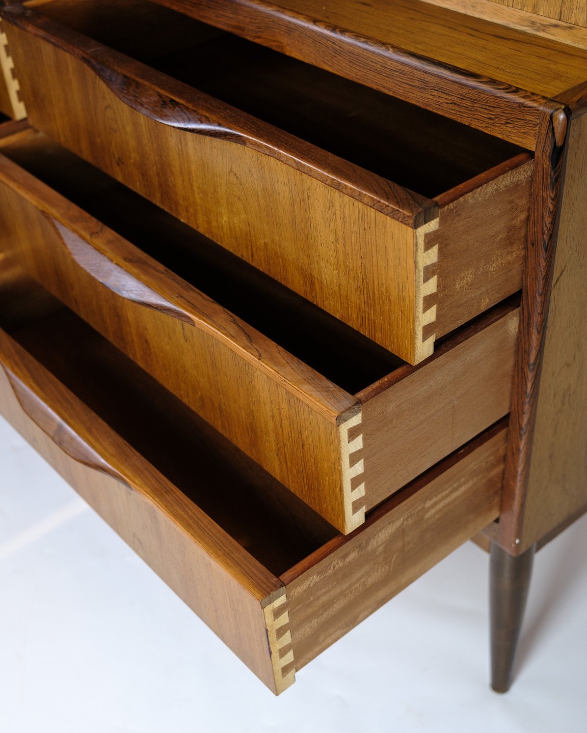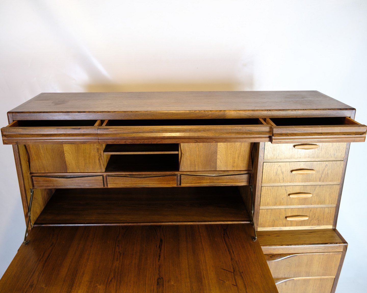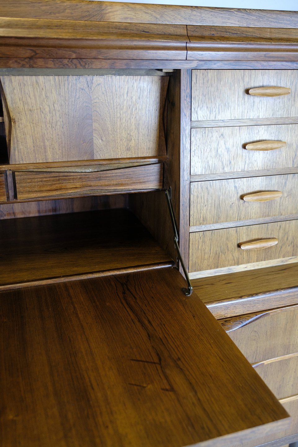 Chatol designet af Erling Torvits og udført i palisander. Øverste del åbnes med en klaplåge og med indbygget skuffer, åbne rum, brevhylder og tre integrerede “hemmelige” skuffer i topsektionen. Nederst seks rummelige skuffer med formpressede greb.