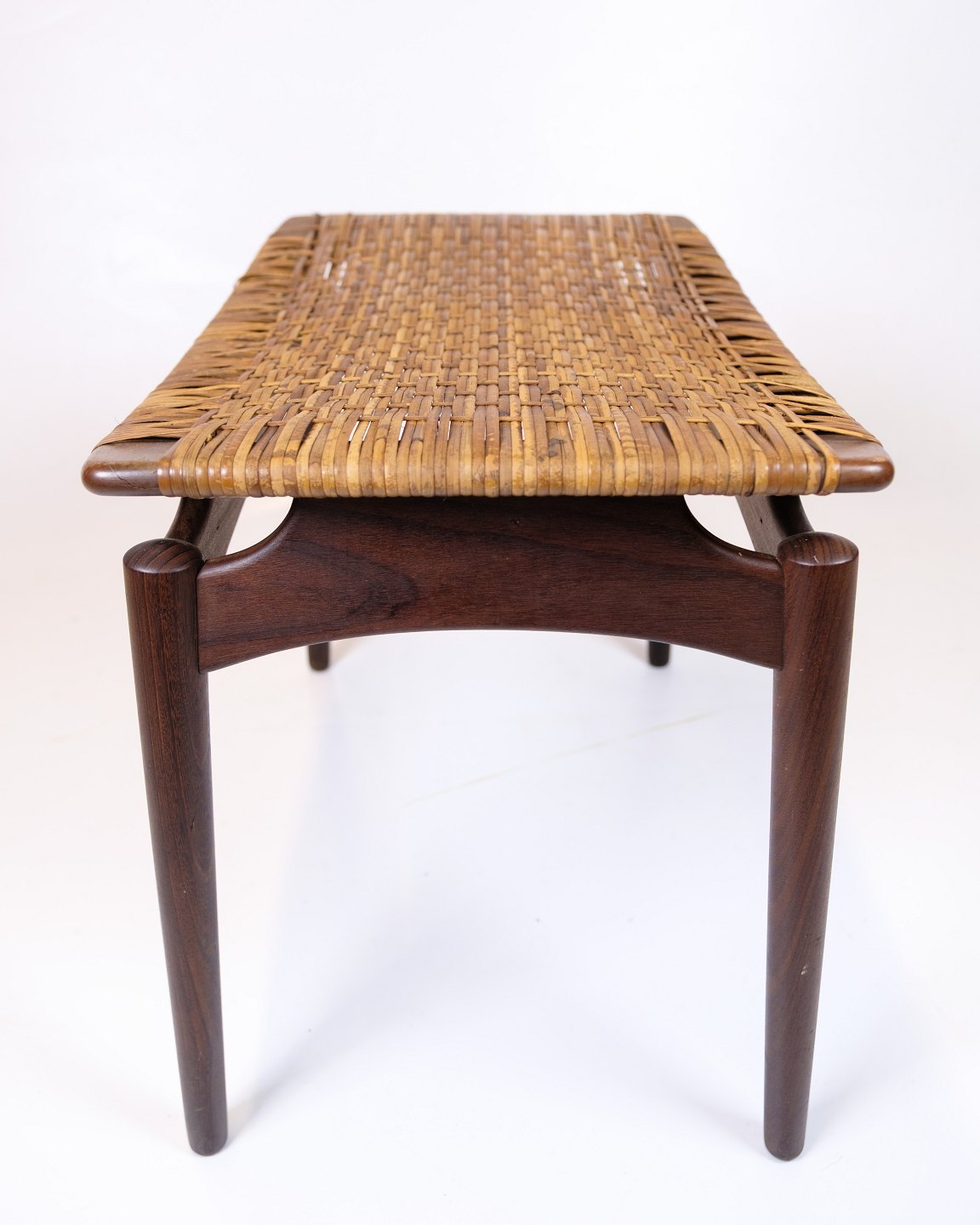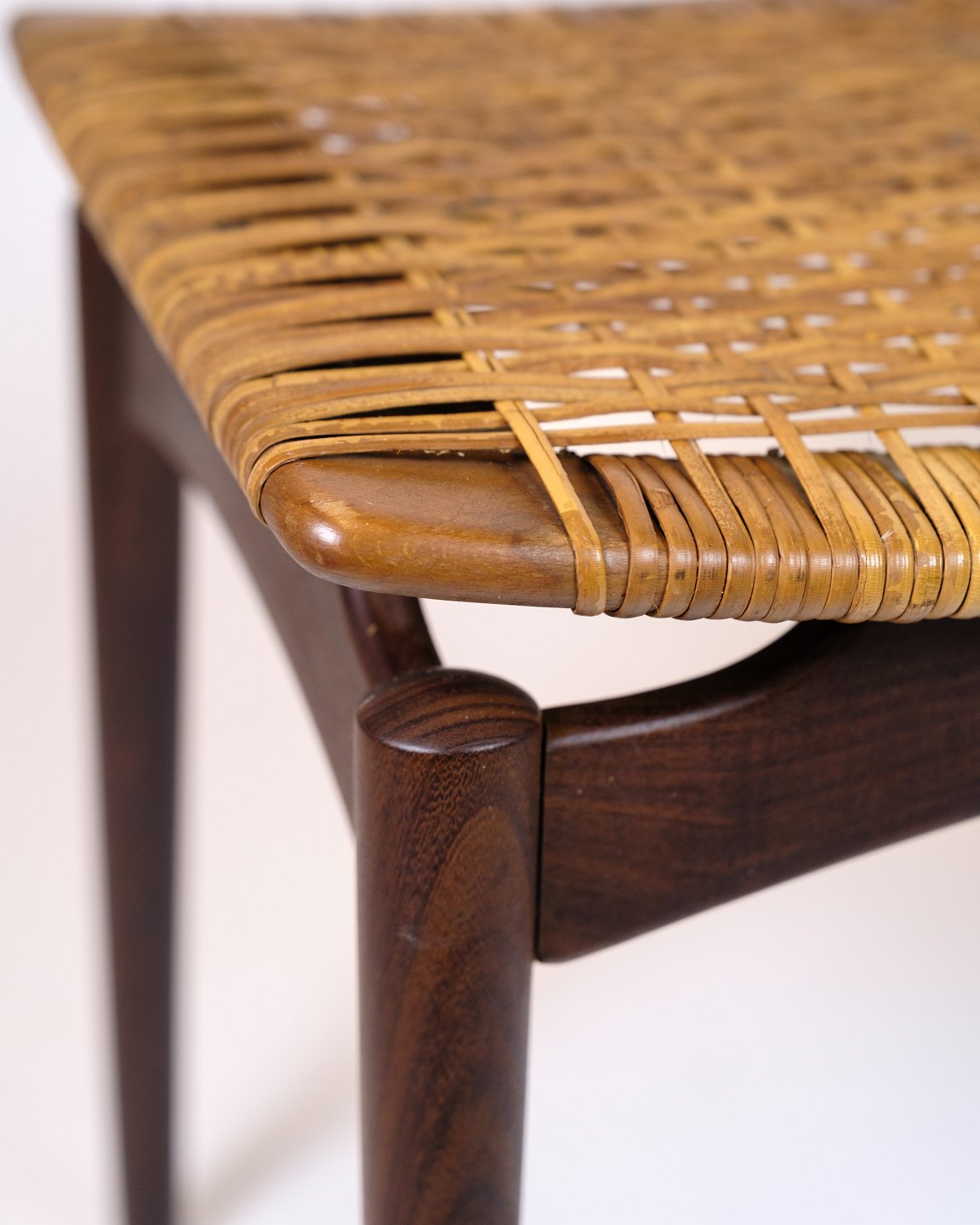 Teak wicker stool, designed by Sigfred Omann for Ølholm Møbelfabrik in the 1960s. Classic Danish design with hand-woven seat.