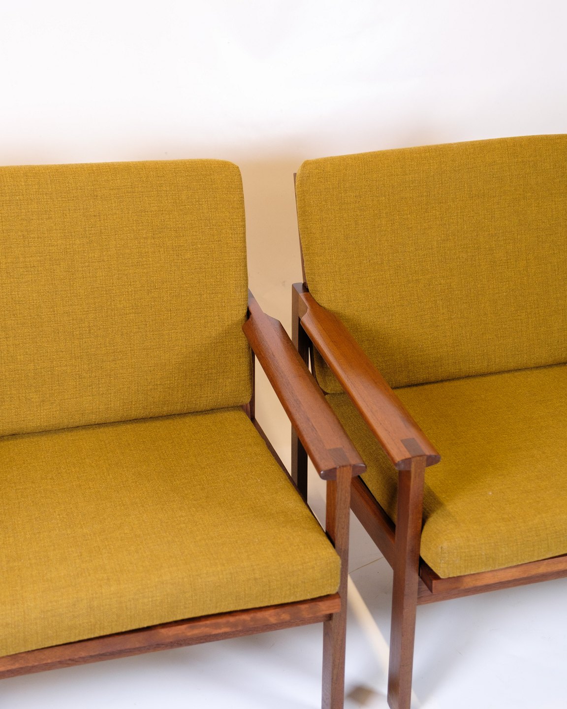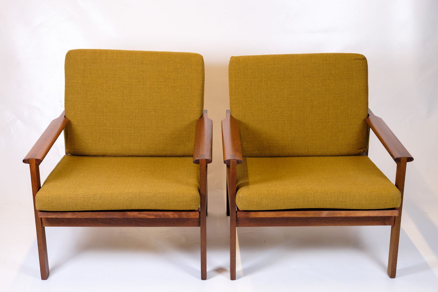 Set of two Capella armchairs in teak, designed by Illum Wikkelsø for N. Eilersen in the 1960s. Beautiful armchair. If other upholstery is desired, we have the option to reupholster as desired.