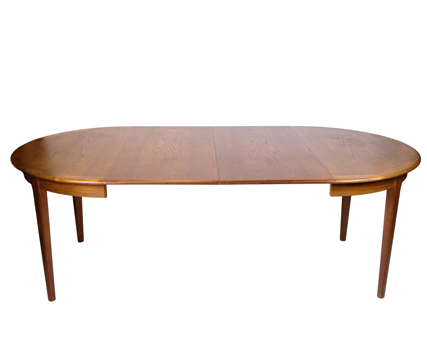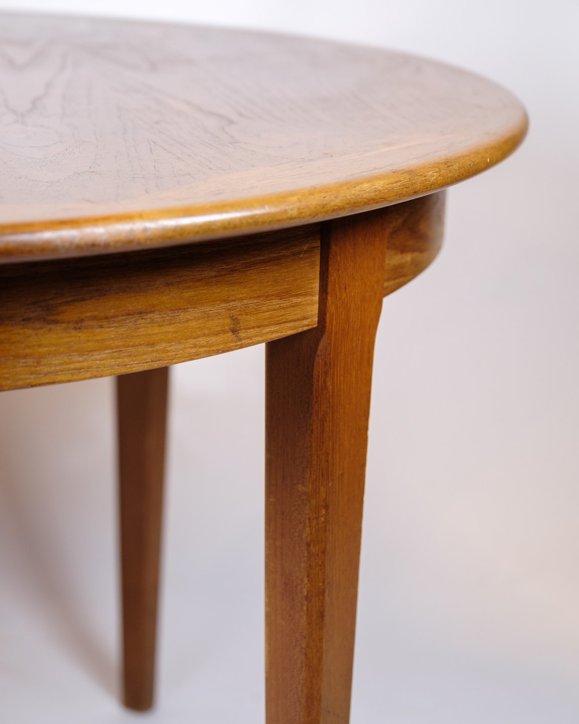 Round teak dining table from the 1960s with 2 extension leaves of 50 cm. Danish design.