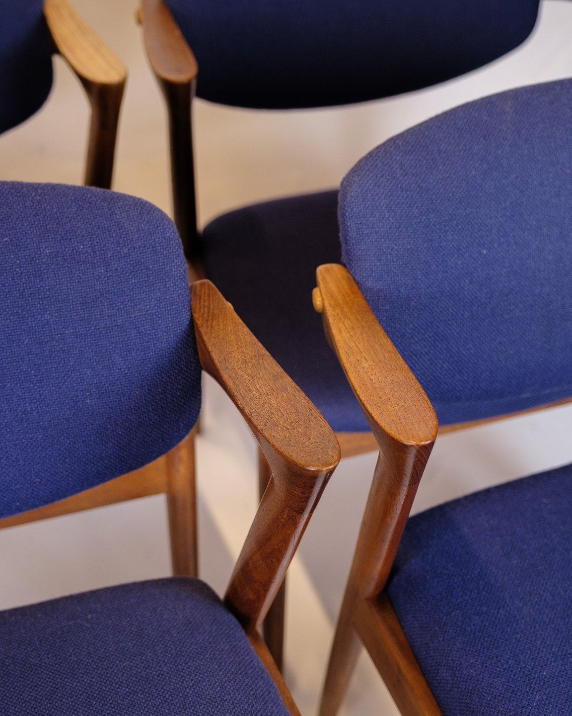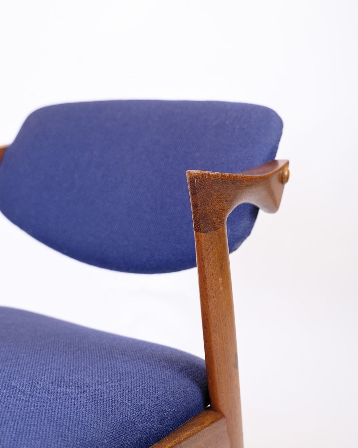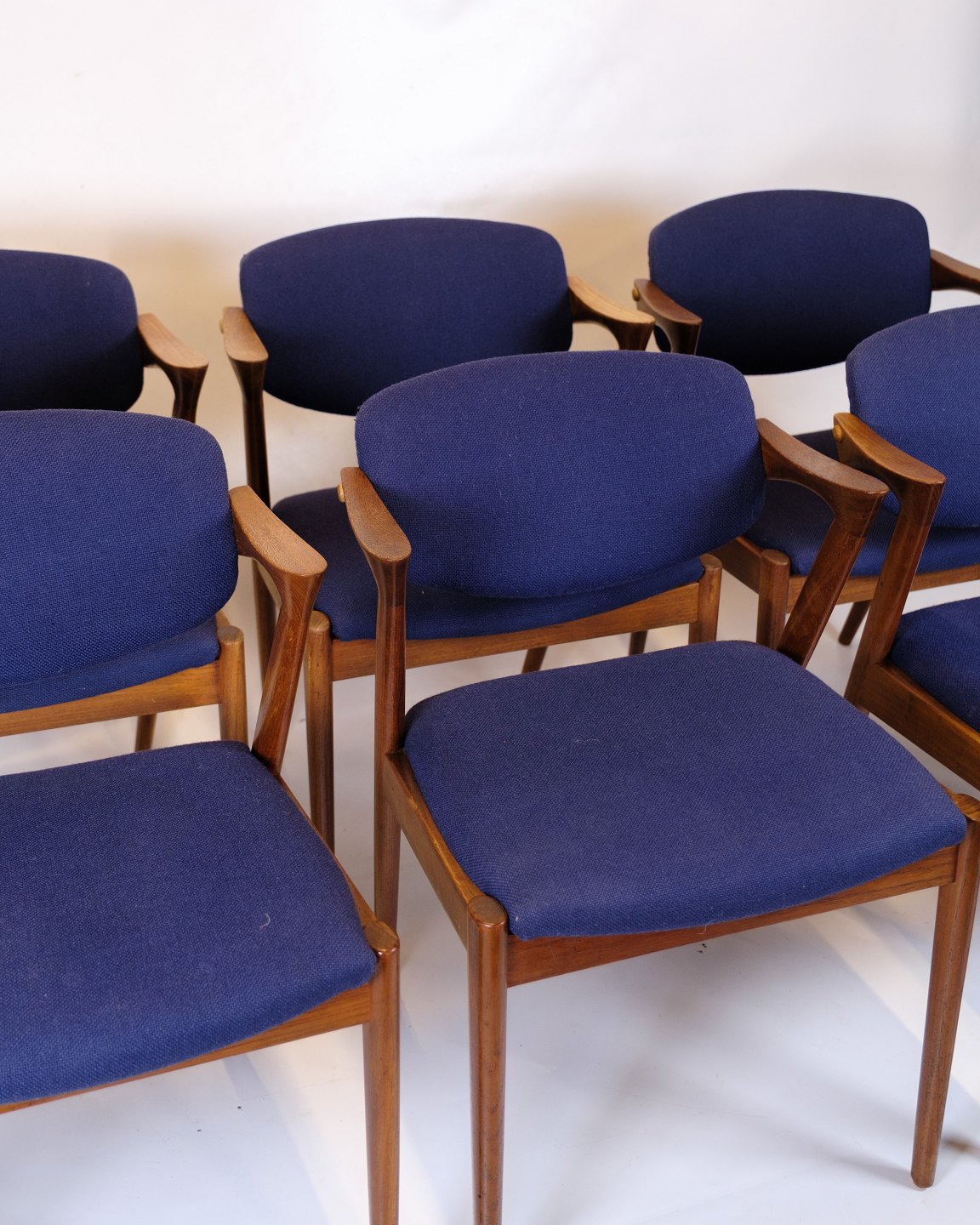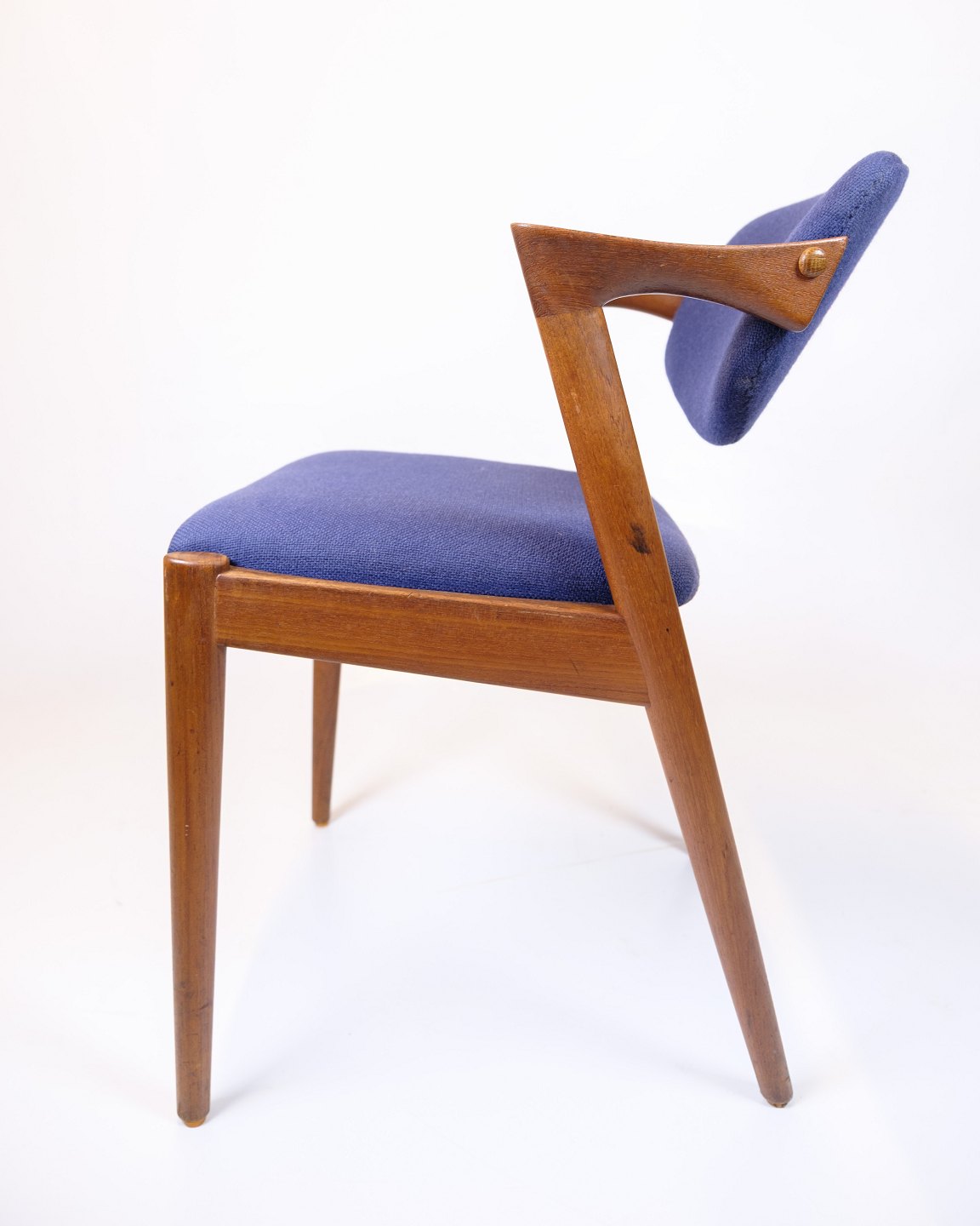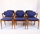 Sæt Af Seks Spisebordsstole - Model 42 - Teak & Blåt Stof - Kai Kristiansen - Schou Andersen - 1960erne