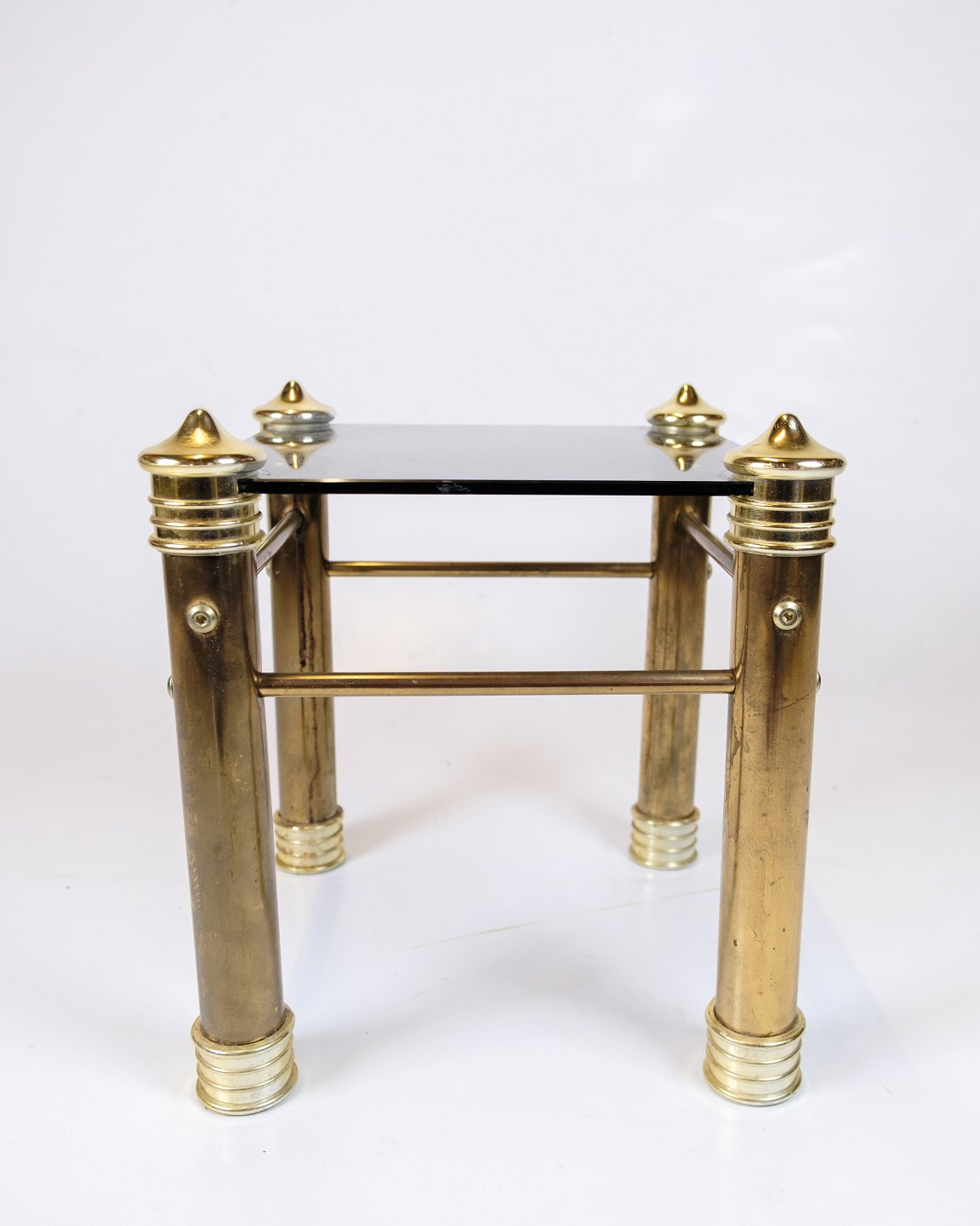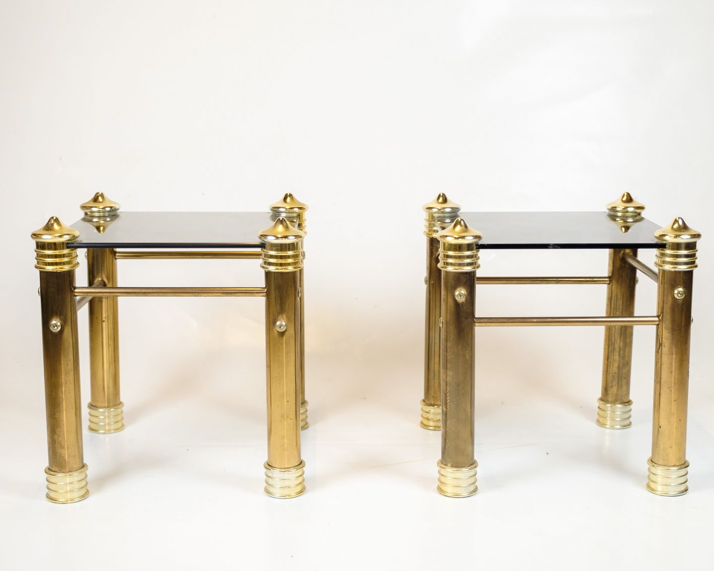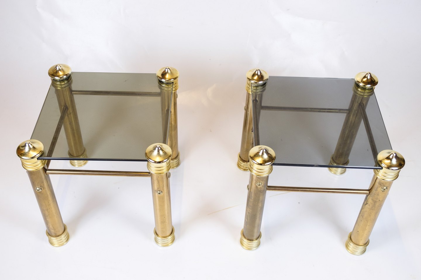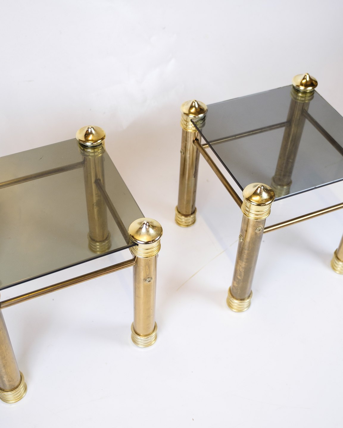 Sæt Af To Nat/Sideborde - Messing Ben - Sort glasplade - Vintage stil - 1970erne