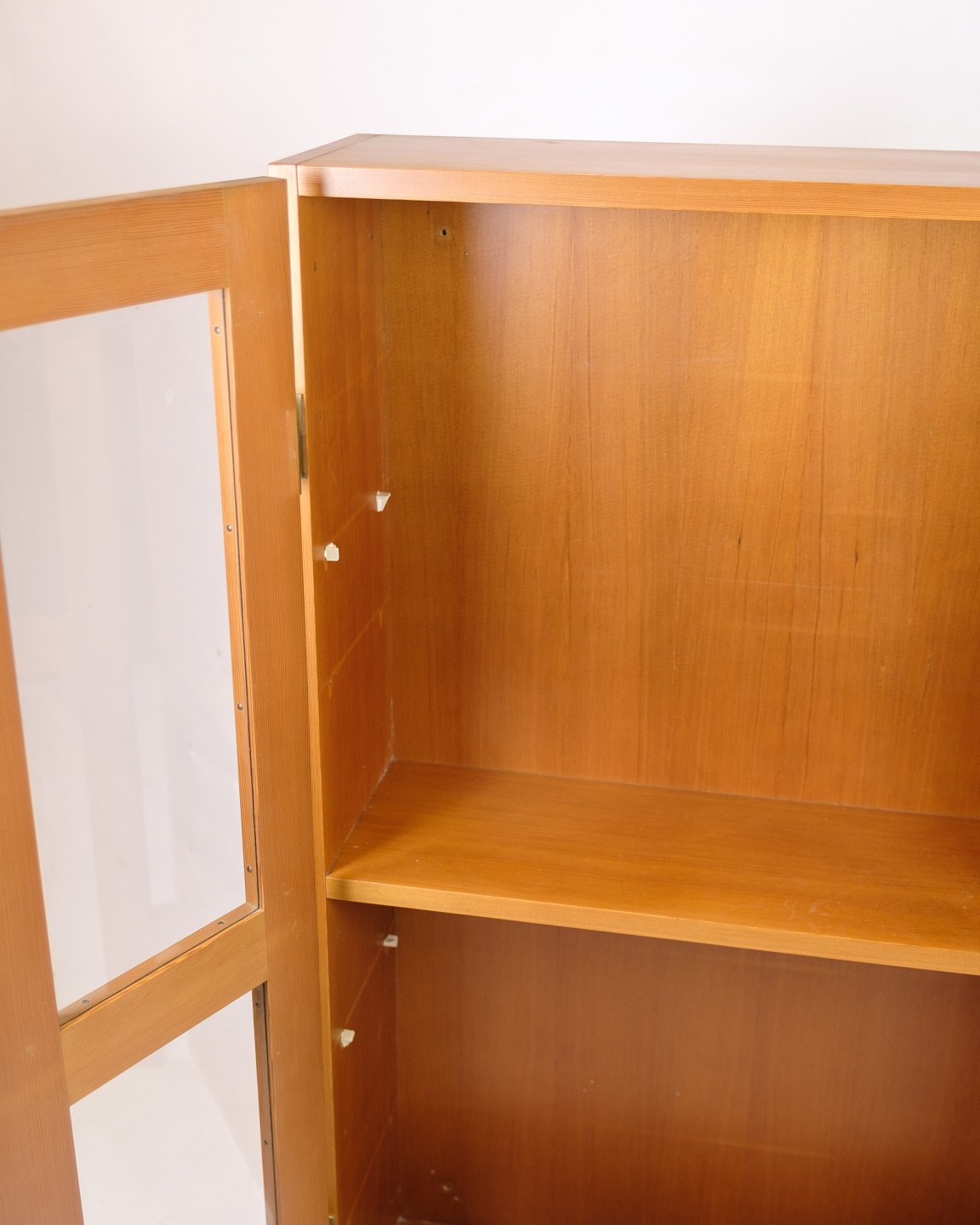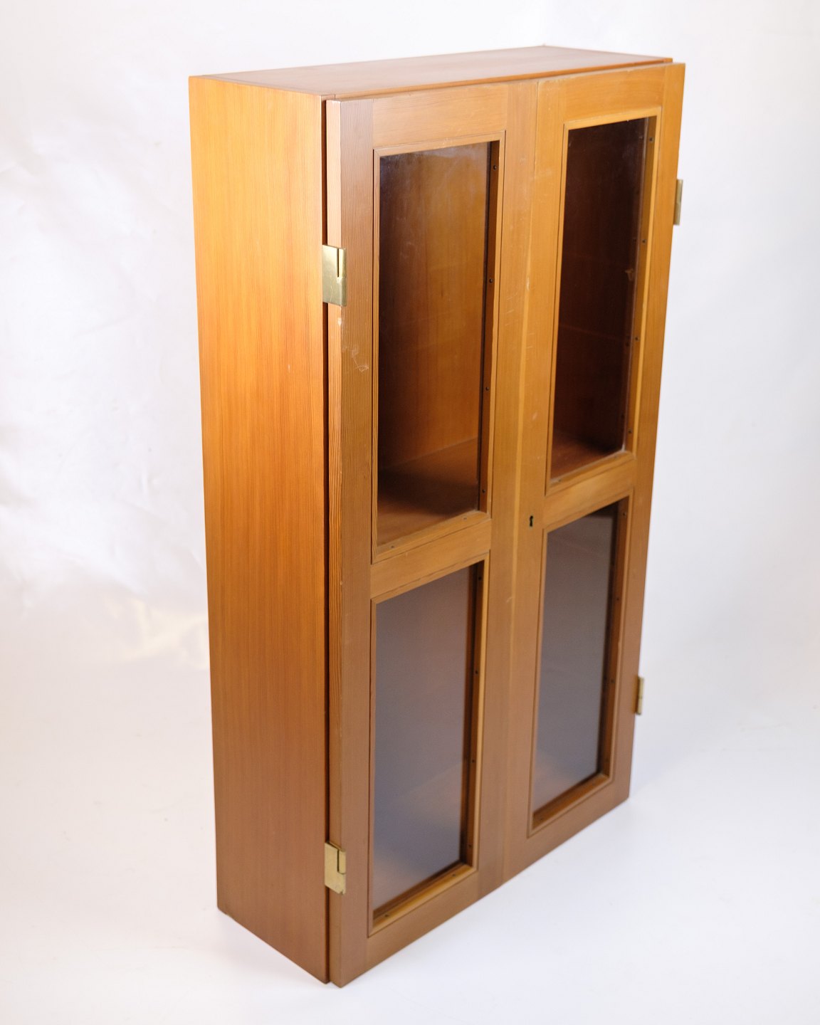 Sæt af to vitrineskabe i Oregon pine fra 1960’erne. Dansk design med glaslåger og faste hylder. Elegant og funktionelt.