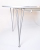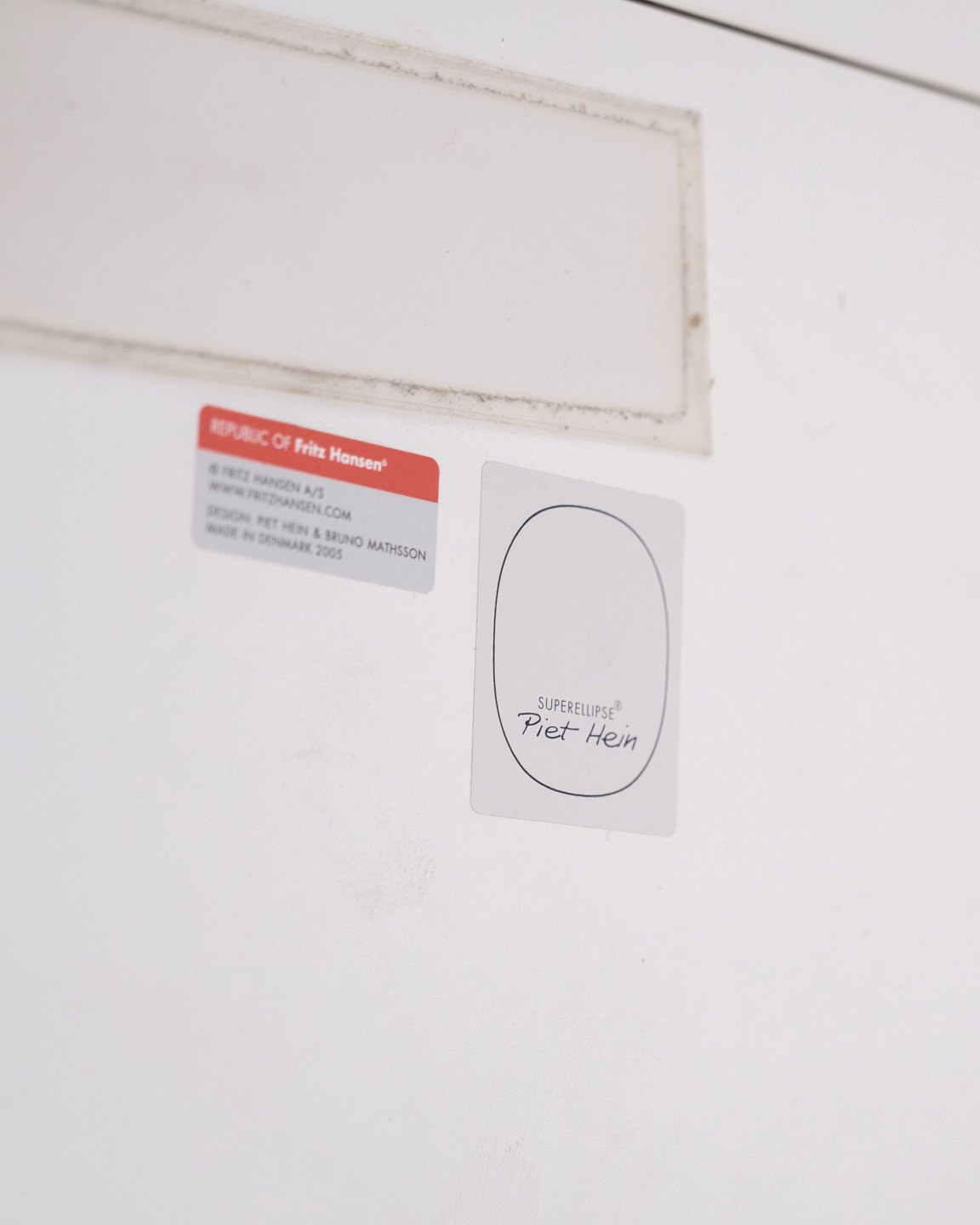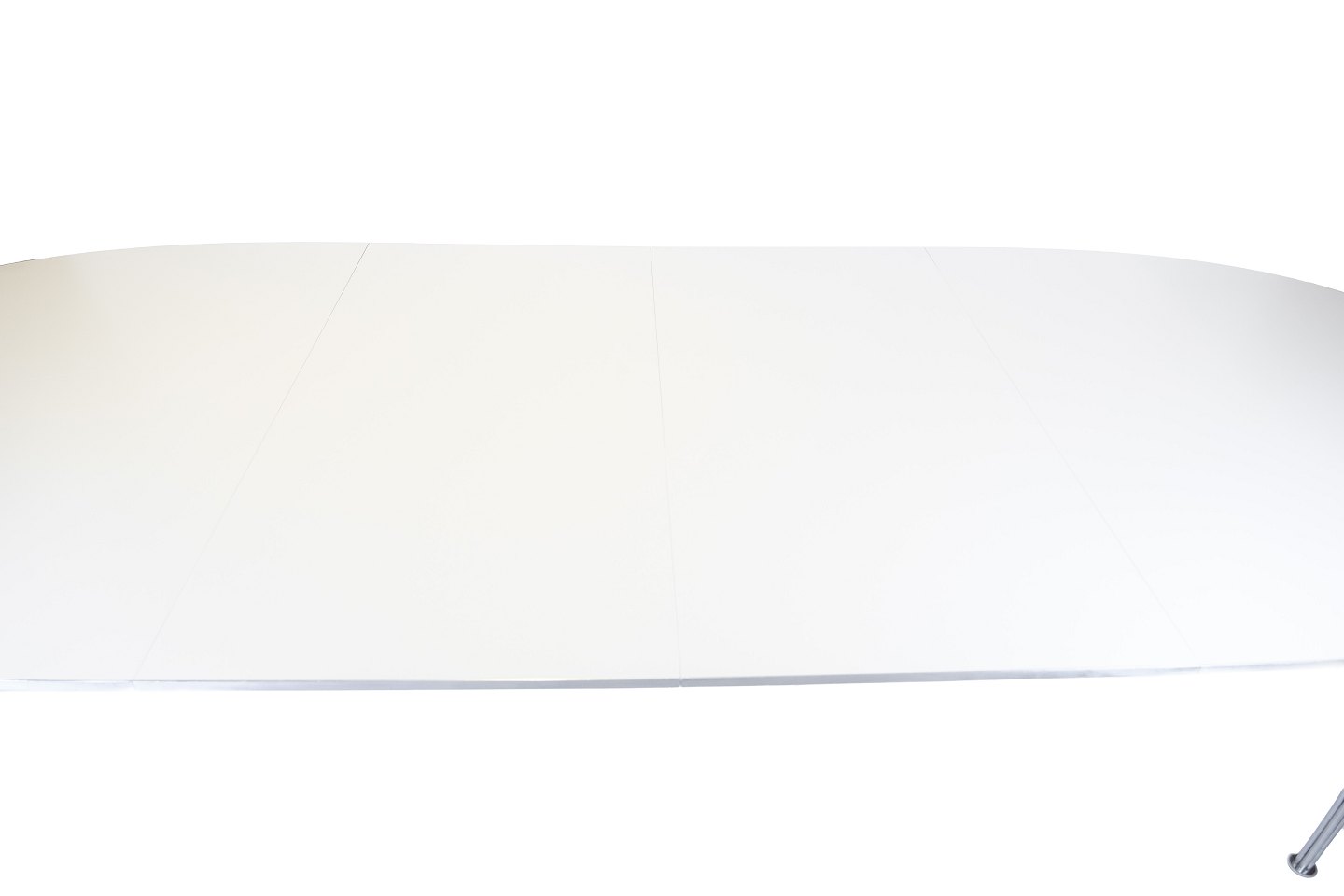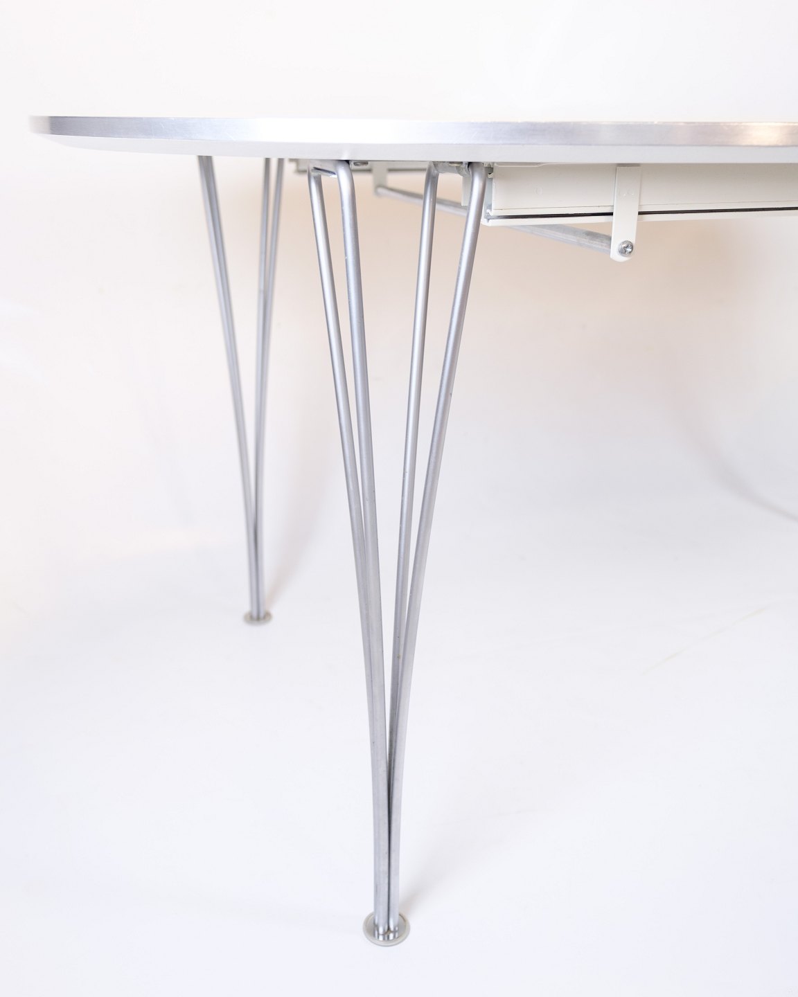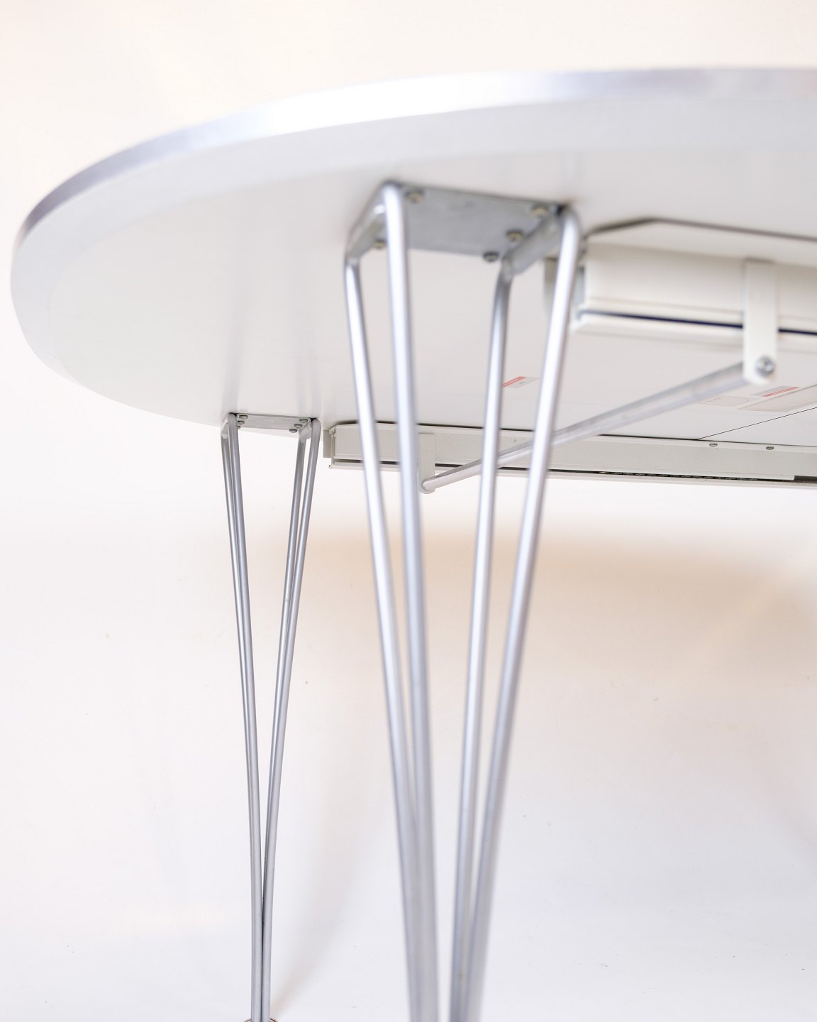 Superellipse dining table by Piet Hein & Arne Jacobsen for Fritz Hansen. White laminate with 2 extension leaves. Produced in 2005