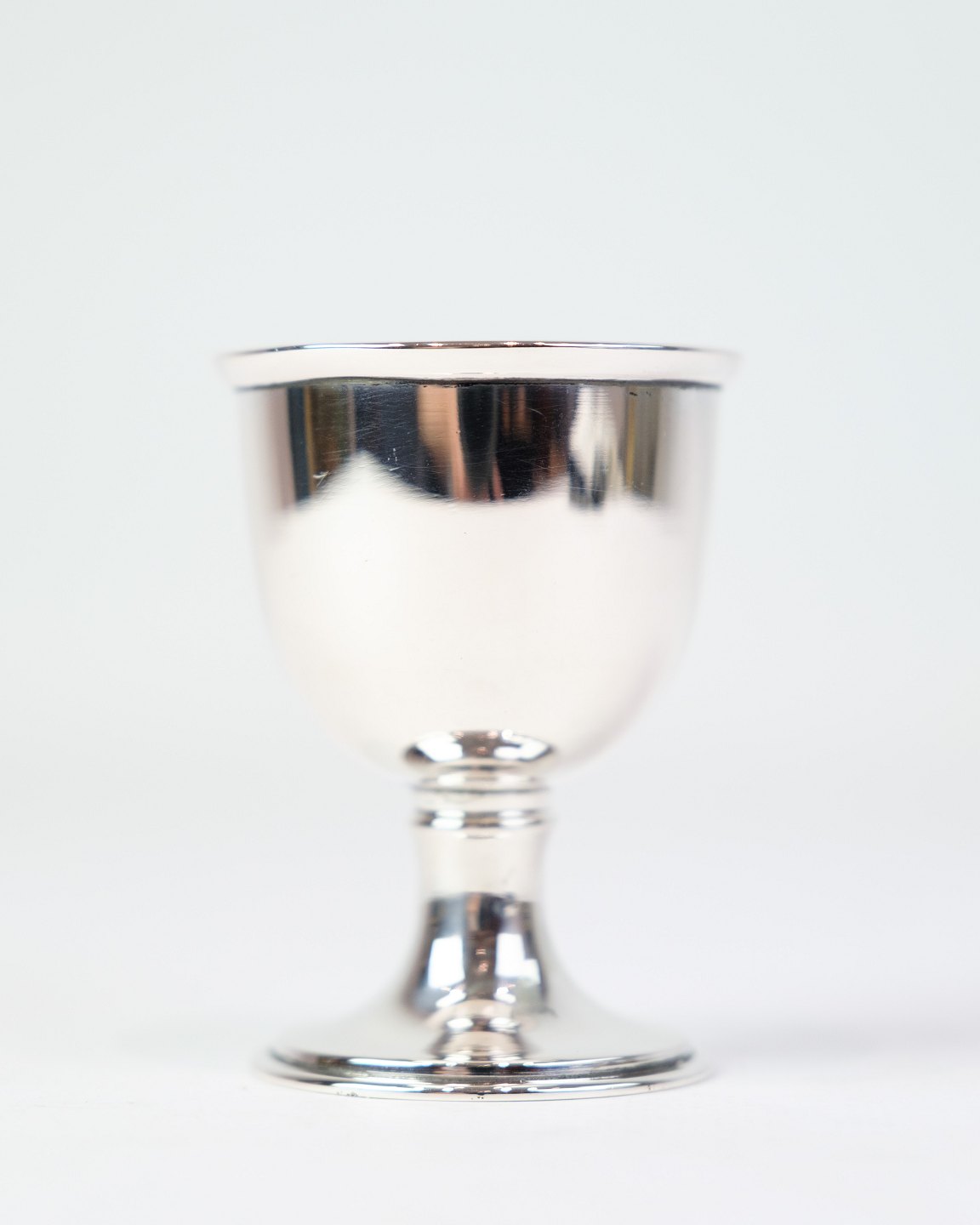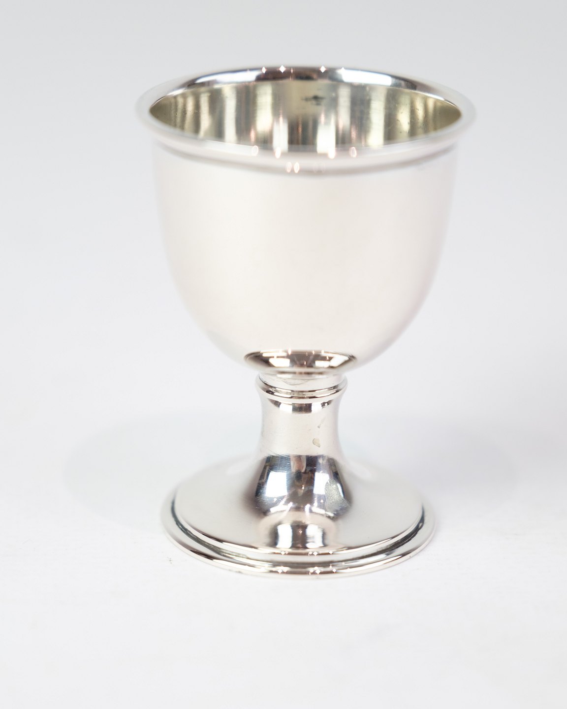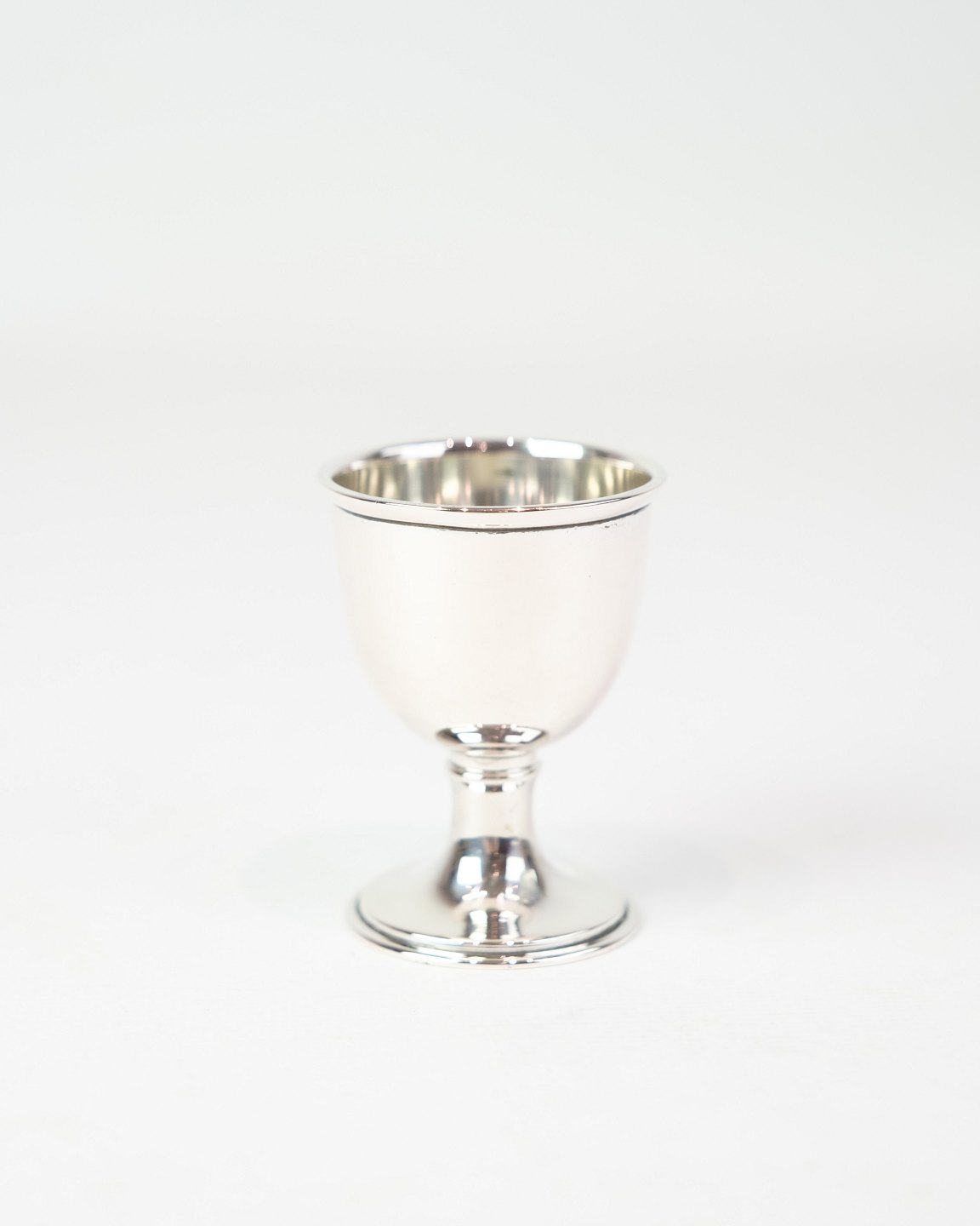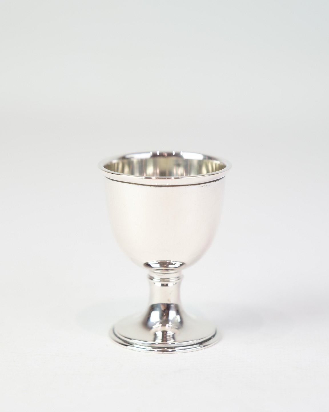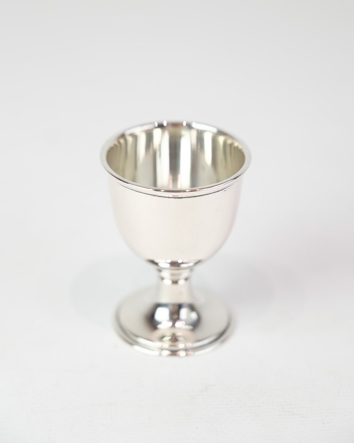 SolgtÆggebæger i ægte sølv. Enkelt design uden indgravering. Højde 6,3 cm, diameter 4,5 cm.