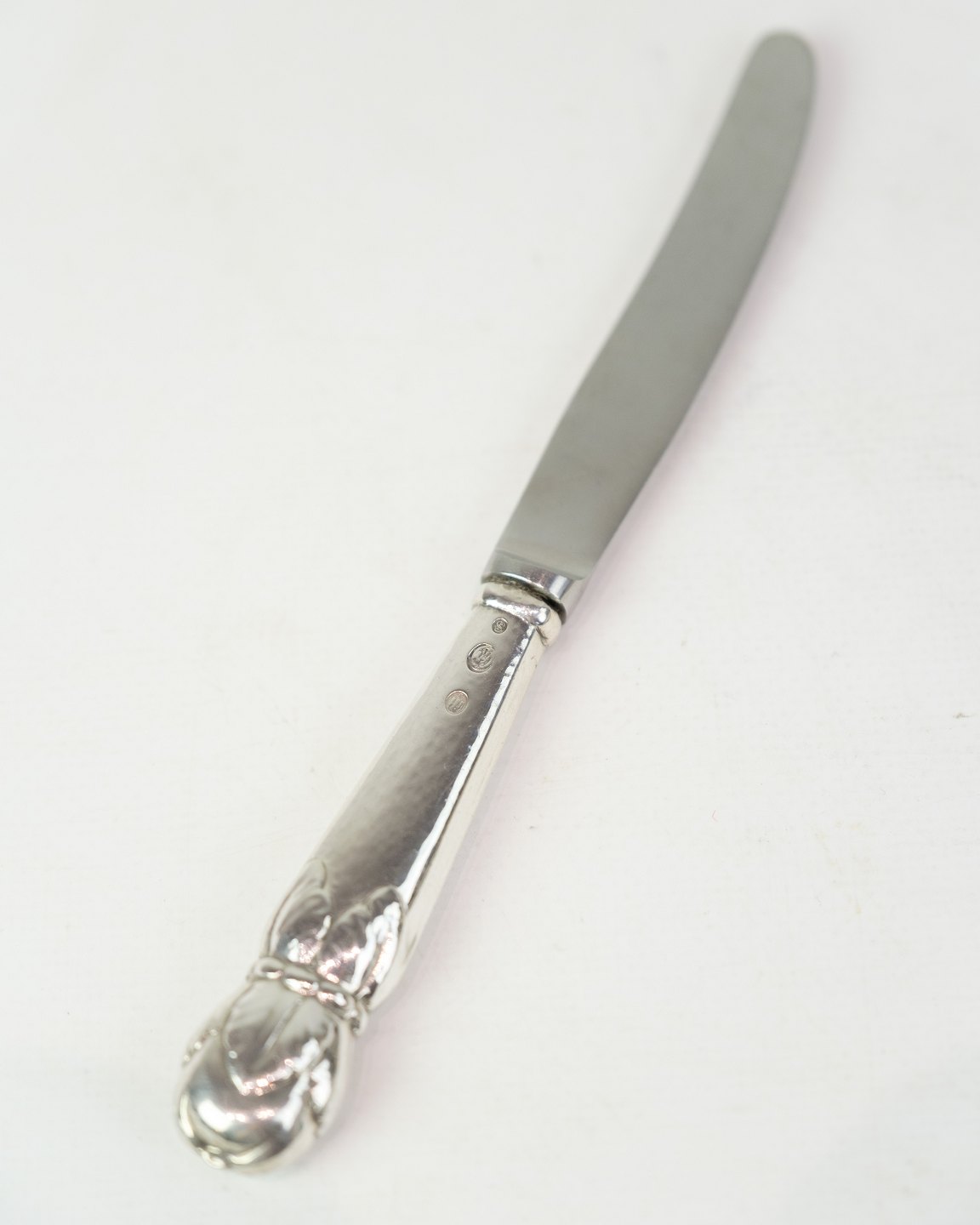 A.C. Illum frokostkniv i tretårnet sølv, stemplet 825. Fremstillet i København ca. midt 1900-tallet. Længde 18 cm. Klassisk dansk sølvhåndværk.