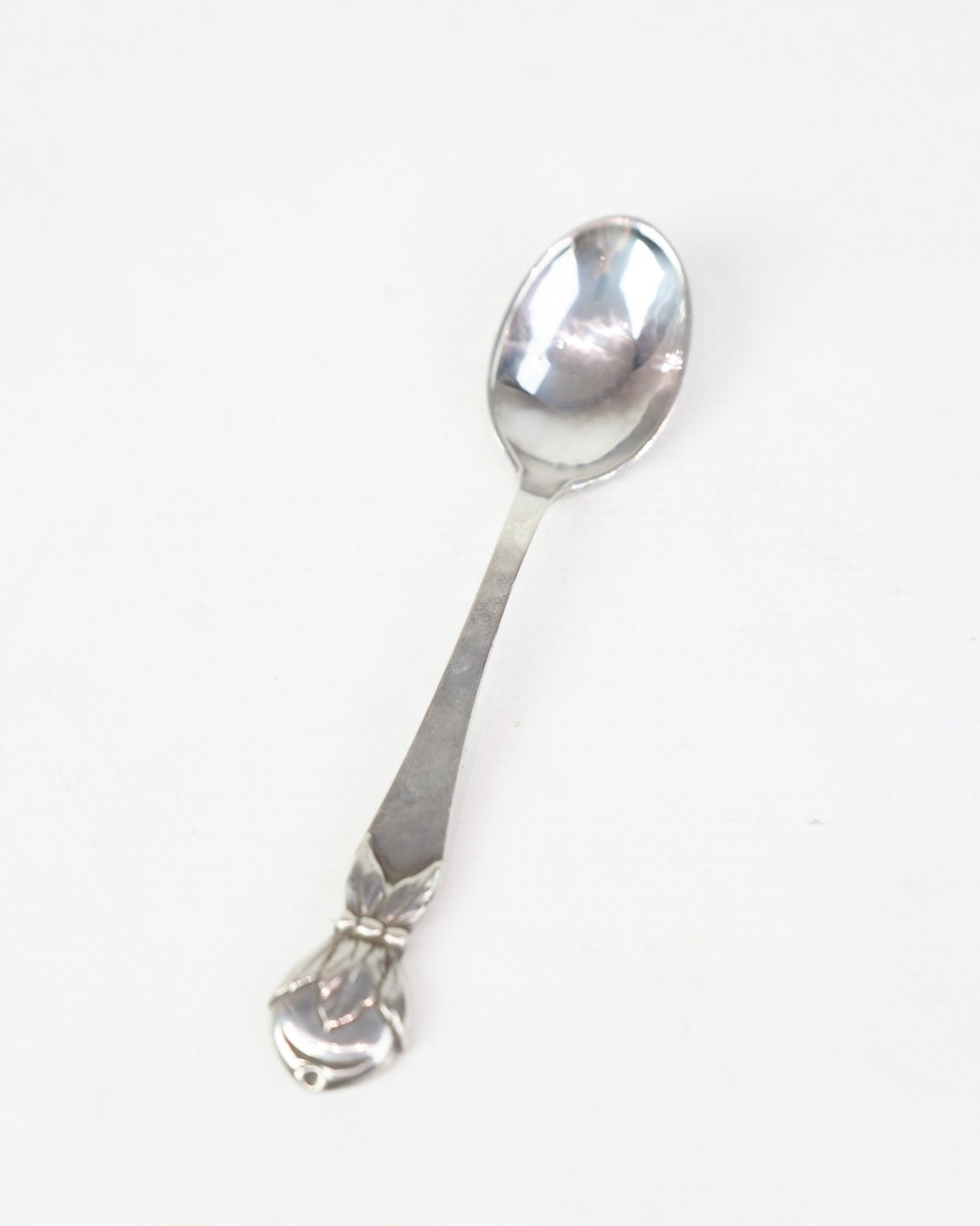 Teske/kaffeske fra A.C. Illum i tretårnet sølv stemplet 825. Fremstillet i København ca. midt 1900-tallet. Længde 11 cm. Elegant dansk sølvarbejde.