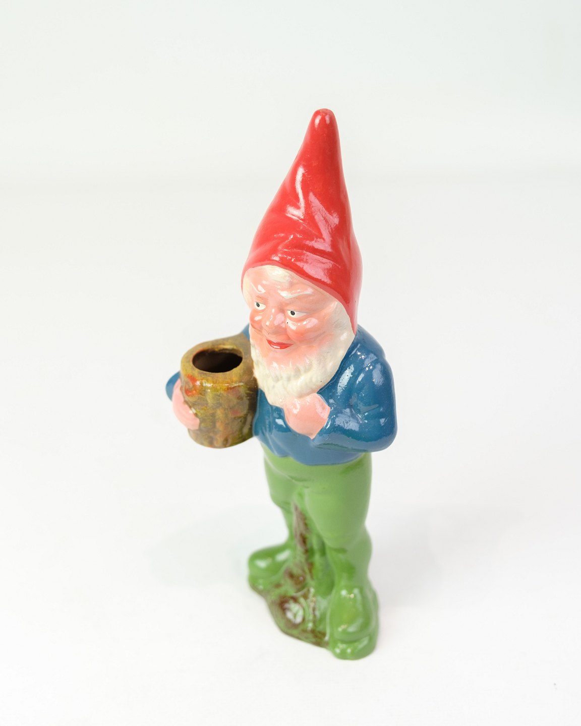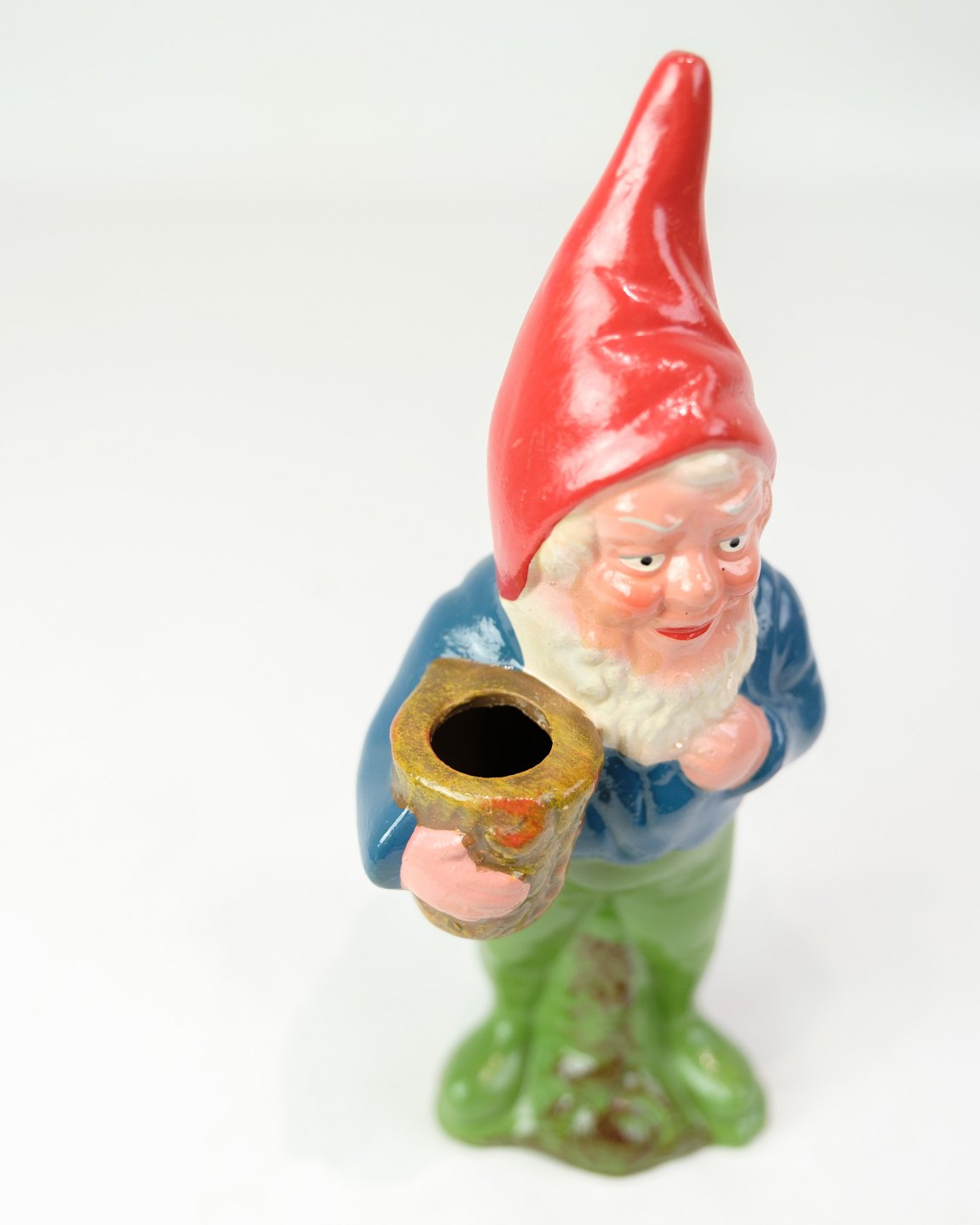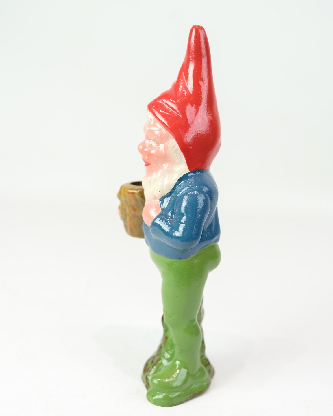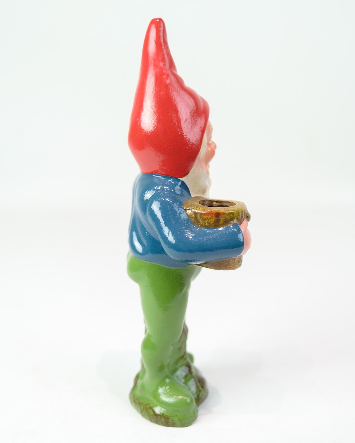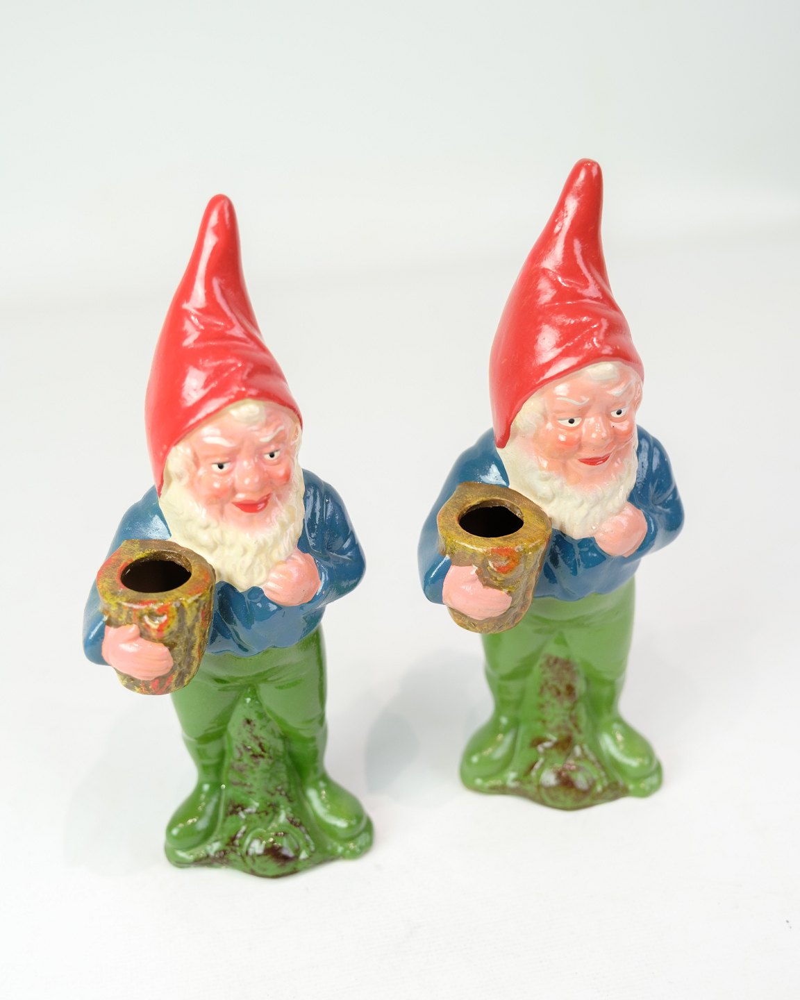 Sæt af vintage julelysestager formet som nisser. Tysk oprindelse, ca. midt 1900-tallet. Rød, grøn og blå bemaling. Højde 20 cm.