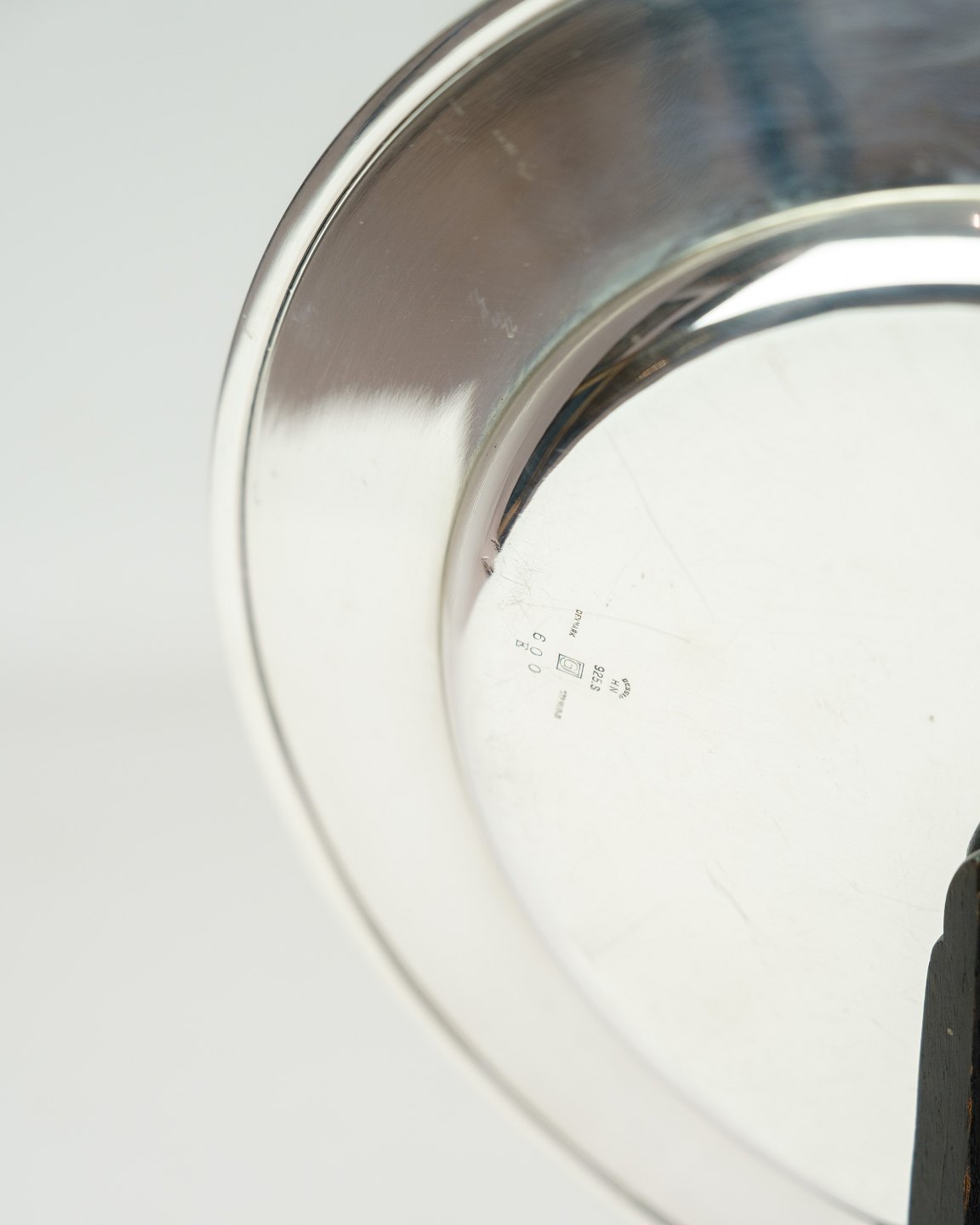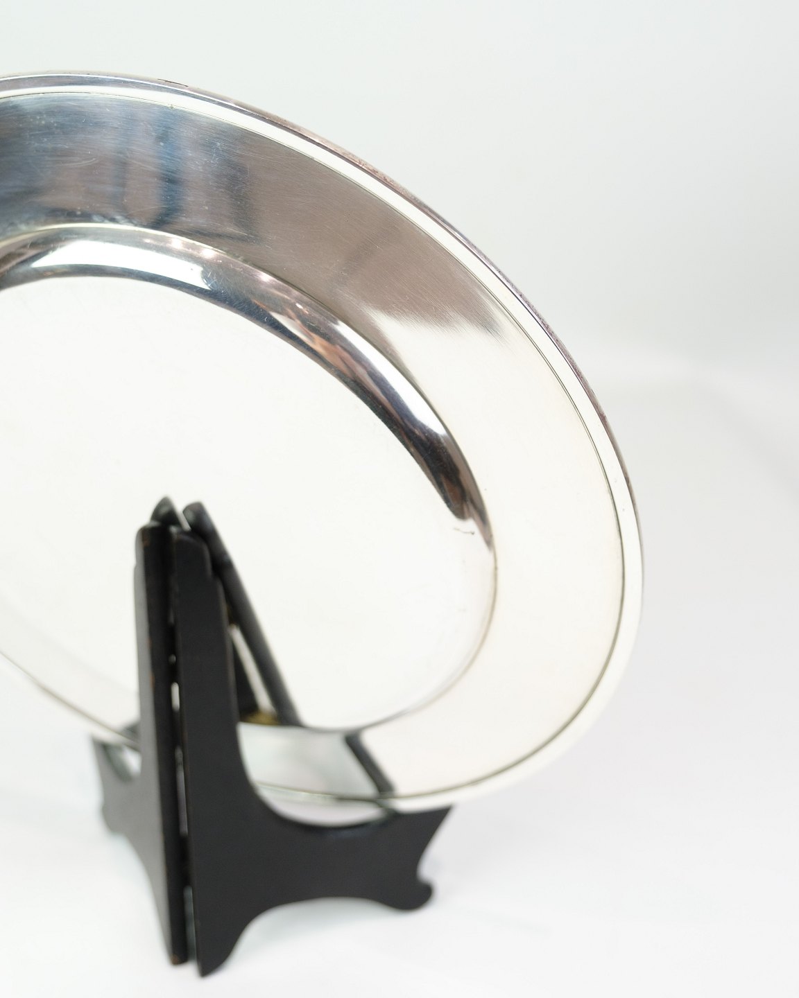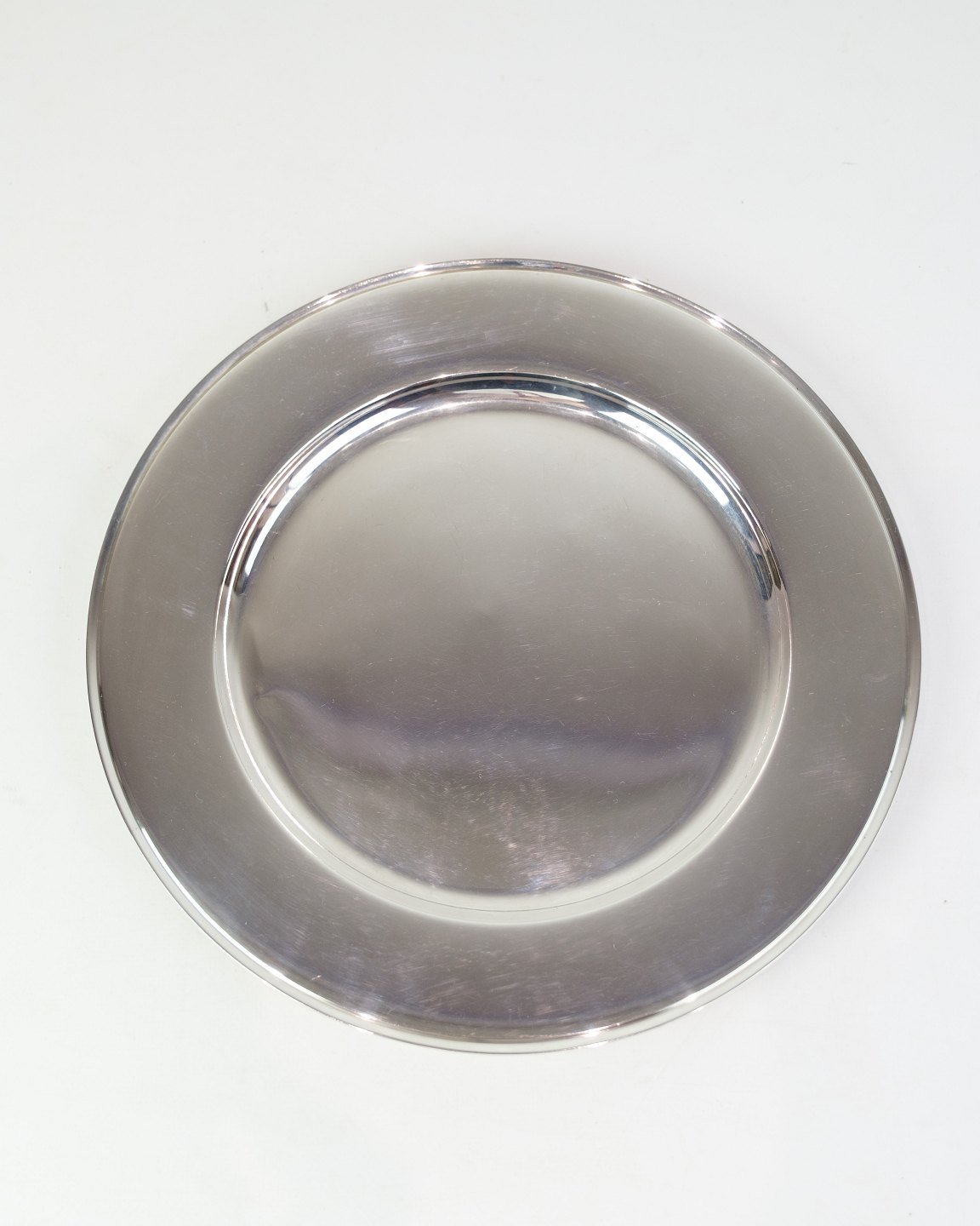 Georg Jensen sterling silver place setting plate, Pyramid model No. 600E. Diameter 26 cm, weight 522 g. Elegant Danish design classic.