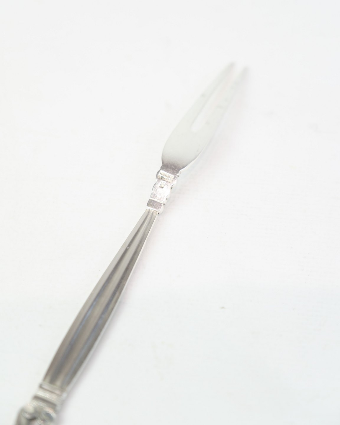 Georg Jensen pålægs-/stegegaffel i Konge mønster. Sterling sølv, design af Johan Rohde 1915. Længde 16,5 cm.