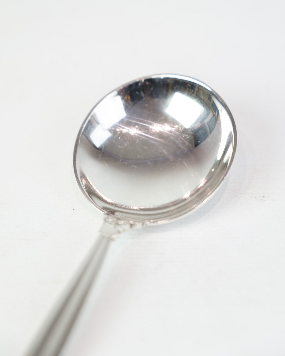 Georg Jensen soup spoon in Konge pattern. Sterling silver, design by Johan Rohde 1915. Length 16 cm.