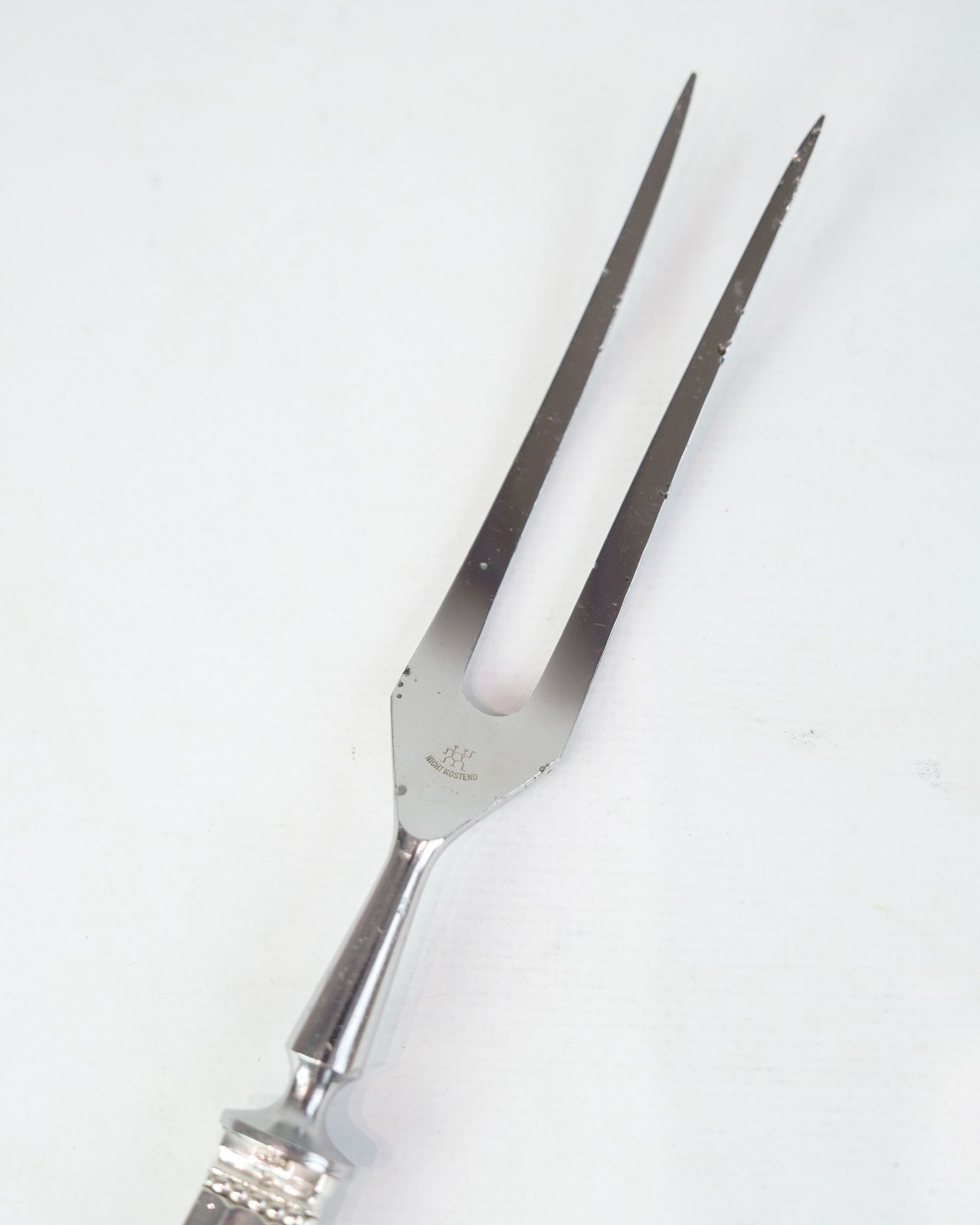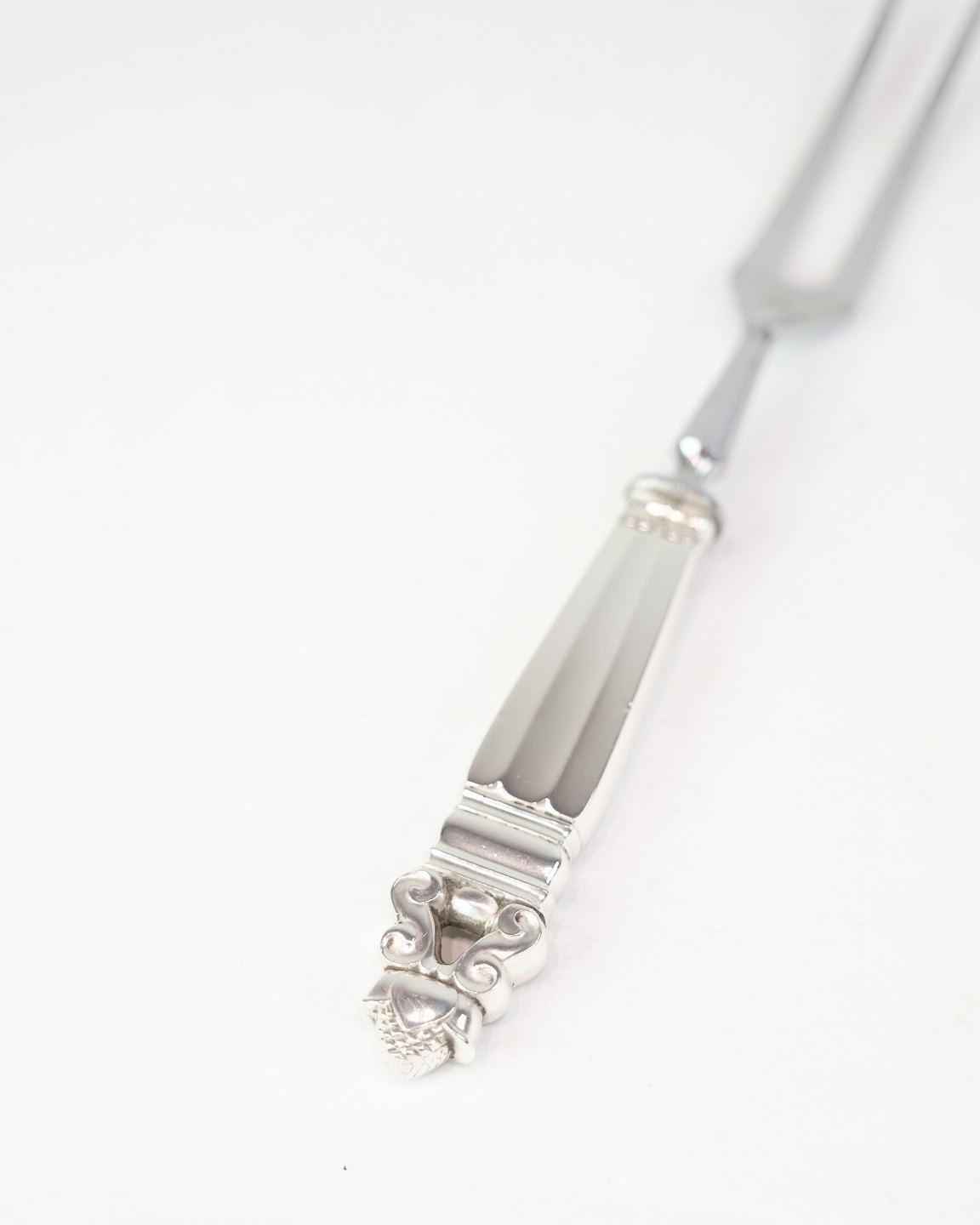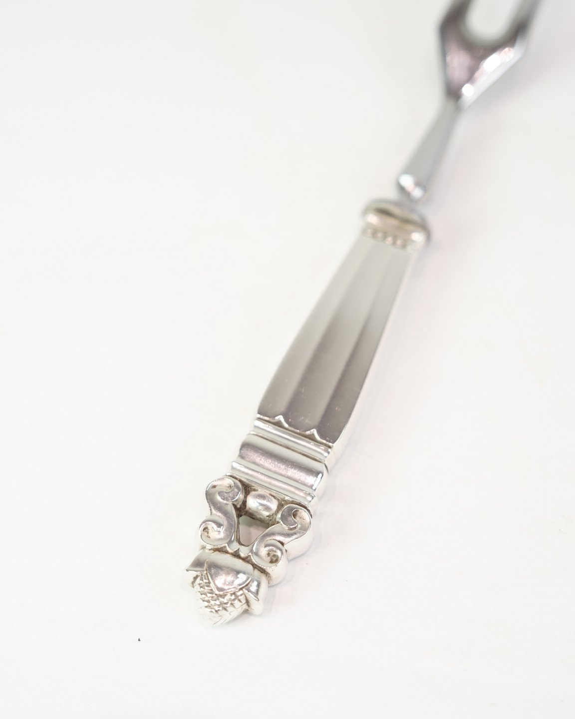Georg Jensen forskærergaffel i sølv, mønster Konge. Designet af Johan Rohde i 1915. Længde 25 cm. Klassisk dansk sølvarbejde.