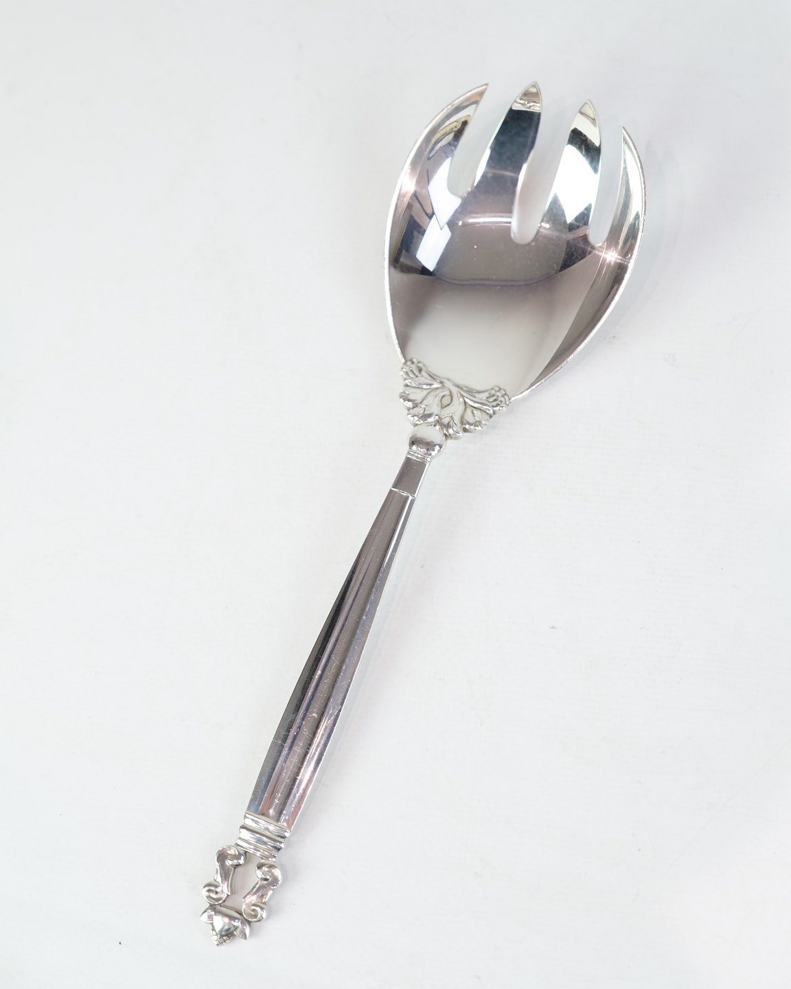 Georg Jensen serveringsgaffel i mønster Konge. 925 sterling sølv, nr. 114. Design af Johan Rohde, 1915. Længde 23 cm.