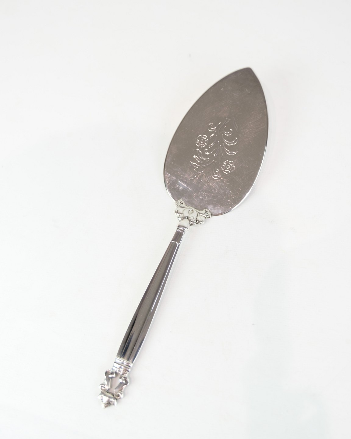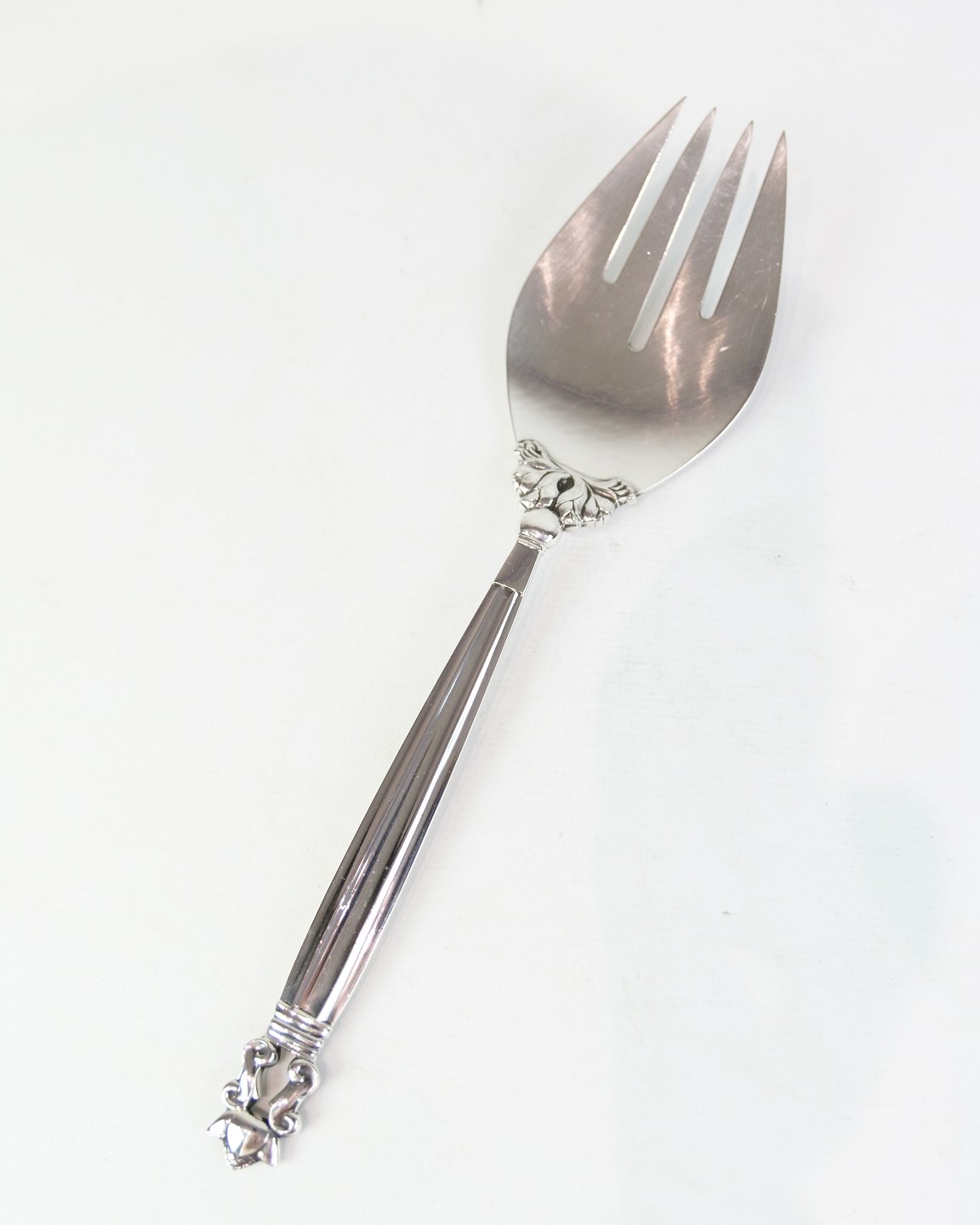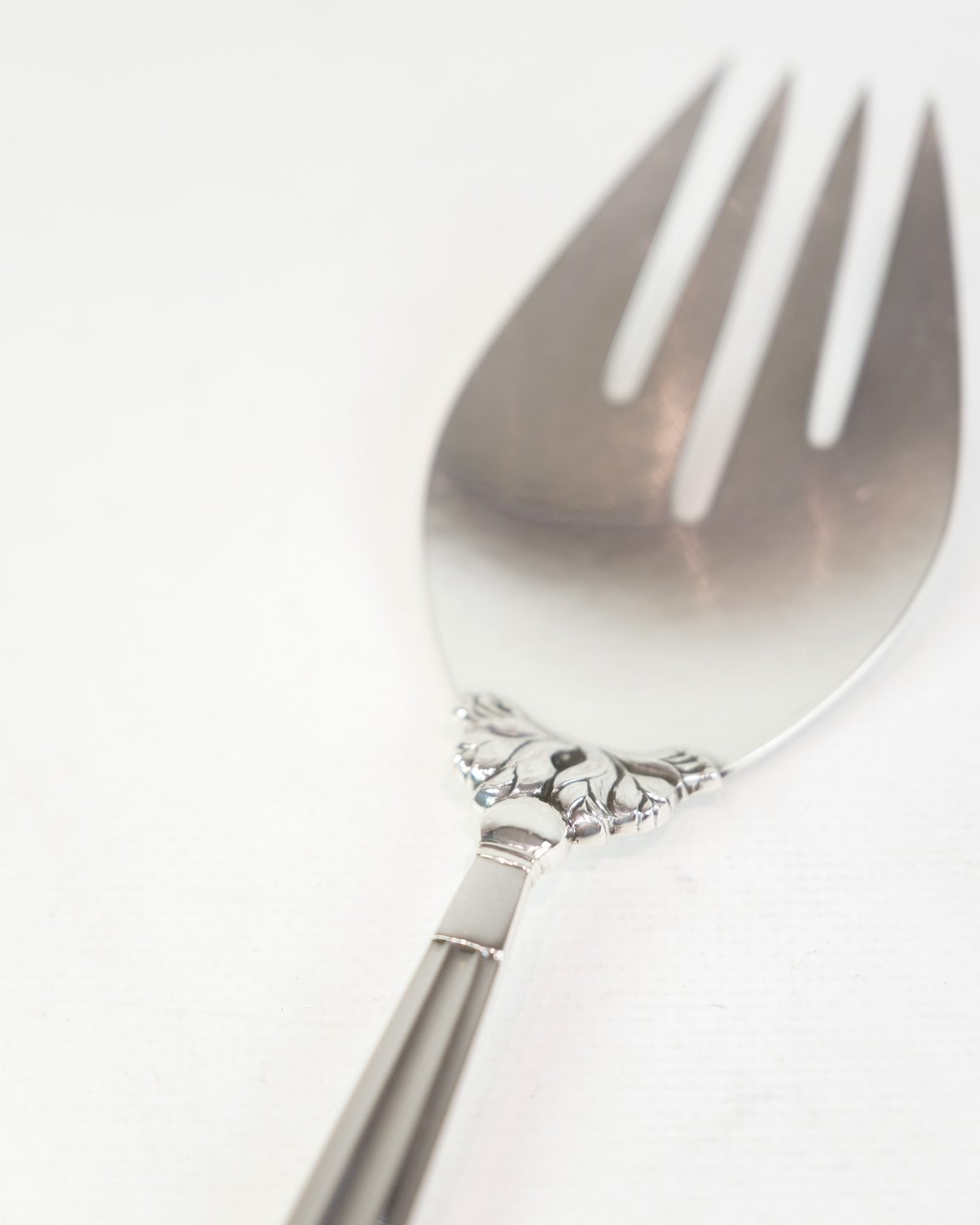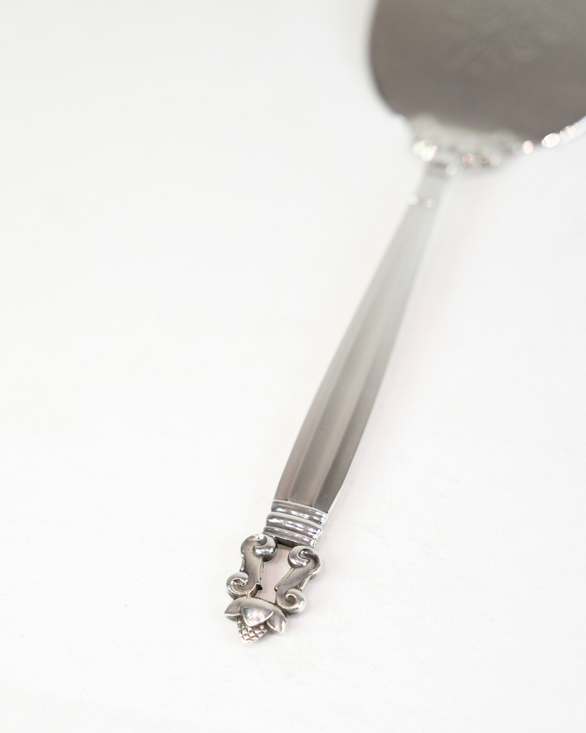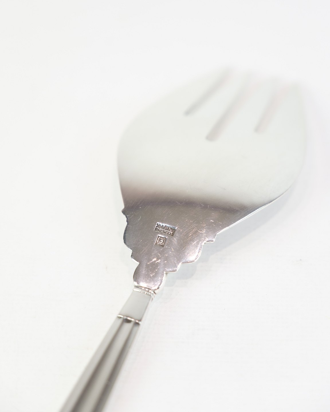 Georg Jensen serving set in King pattern. Sterling silver spade (No. 193, 26.5 cm) and fork (No. 114, 24 cm). Design by Johan Rohde 1915.