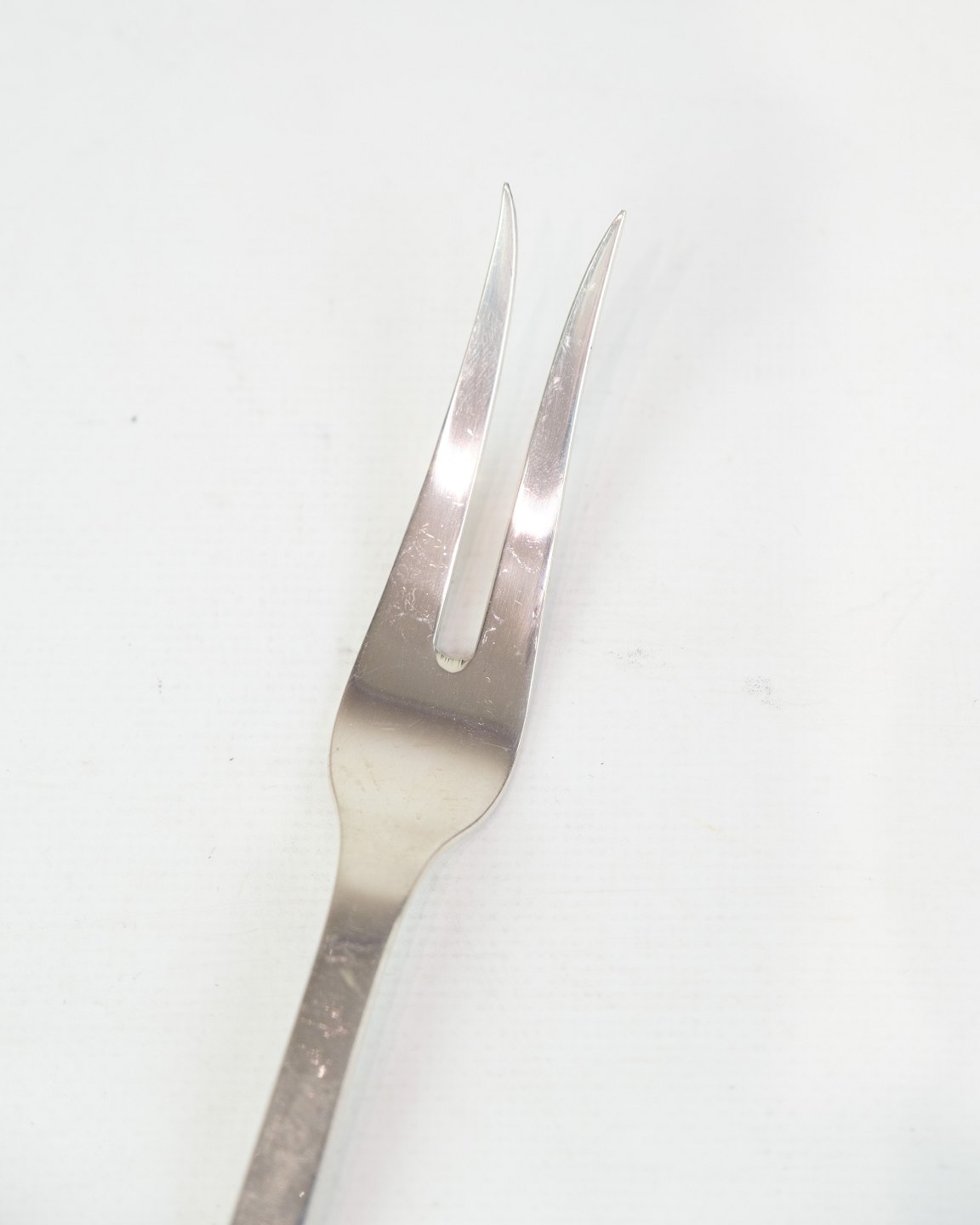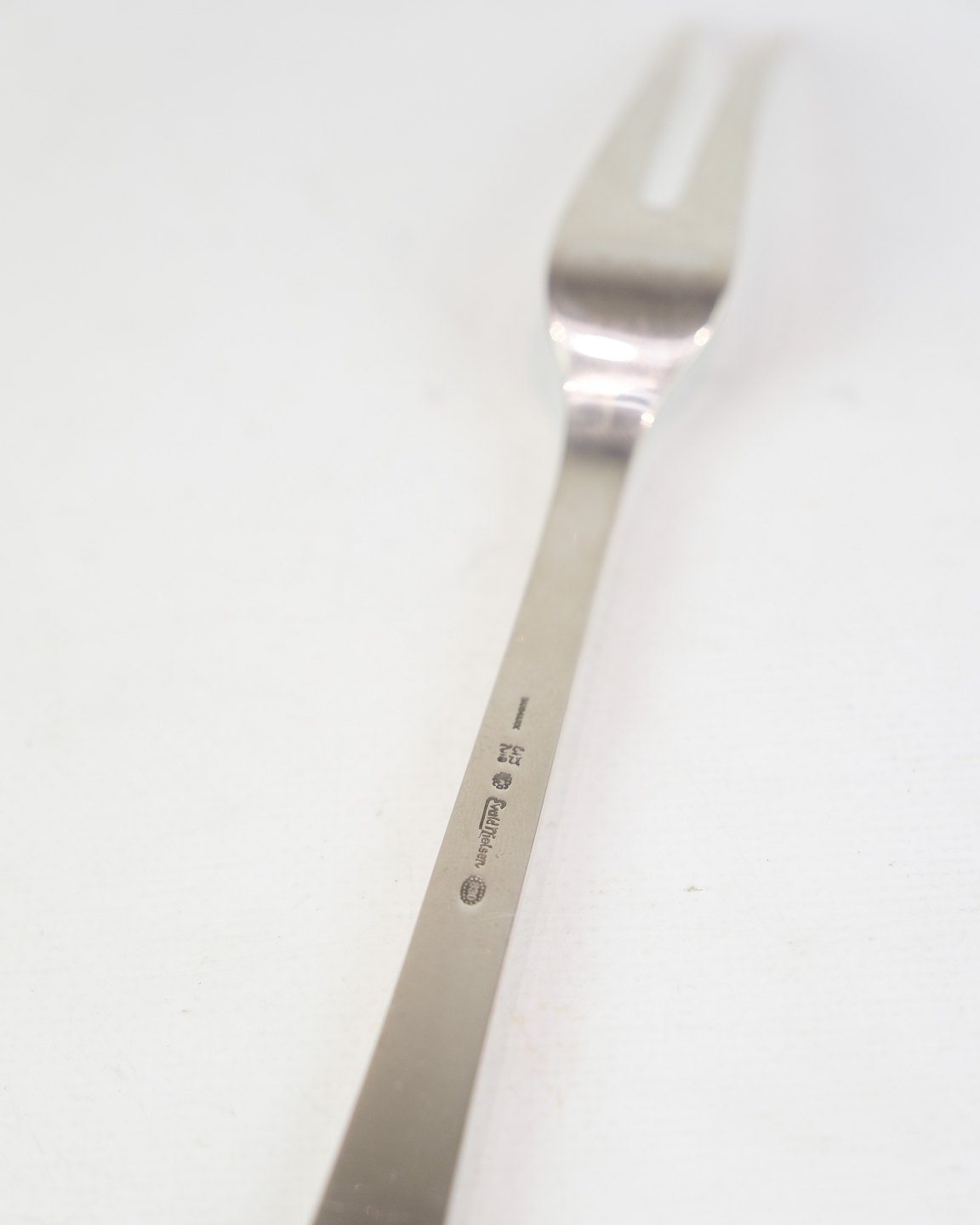 Evald Nielsen frying fork in real silver. Congo pattern No. 32. Classic Danish silverwork.