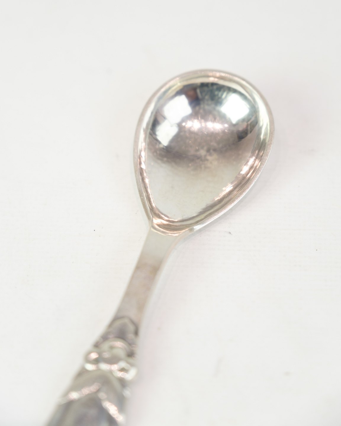 SolgtEvald Nielsen caviarske i ægte sølv. Hammerslået mønster, Model No. 16. Længde 14 cm. Klassisk dansk sølvarbejde.