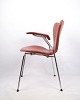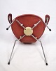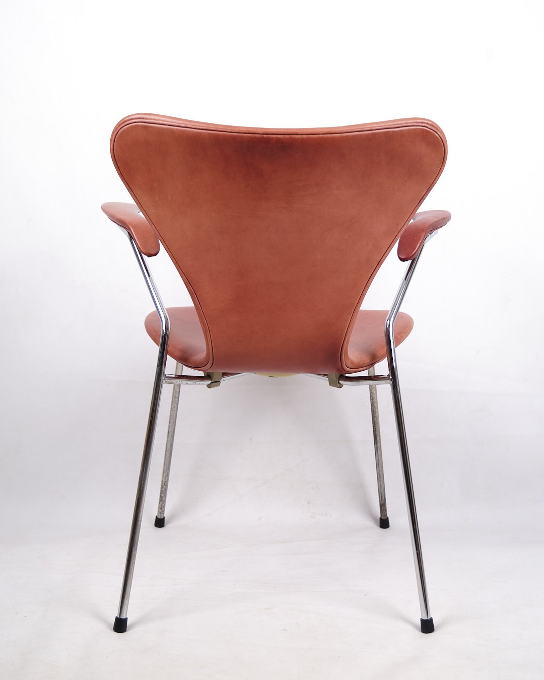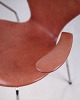 Arne Jacobsen Seven-chair with armrests, model 3207. Cognac-colored leather and chrome frame. Fritz Hansen design classic.