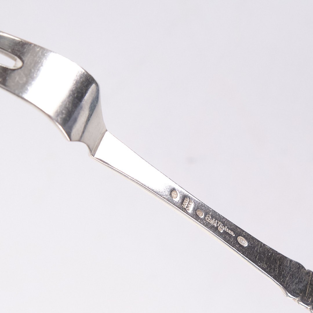 Frying fork in pattern no. 13 by Evald Nielsen. Silver, stamped. Classic Danish silver design in timeless quality.