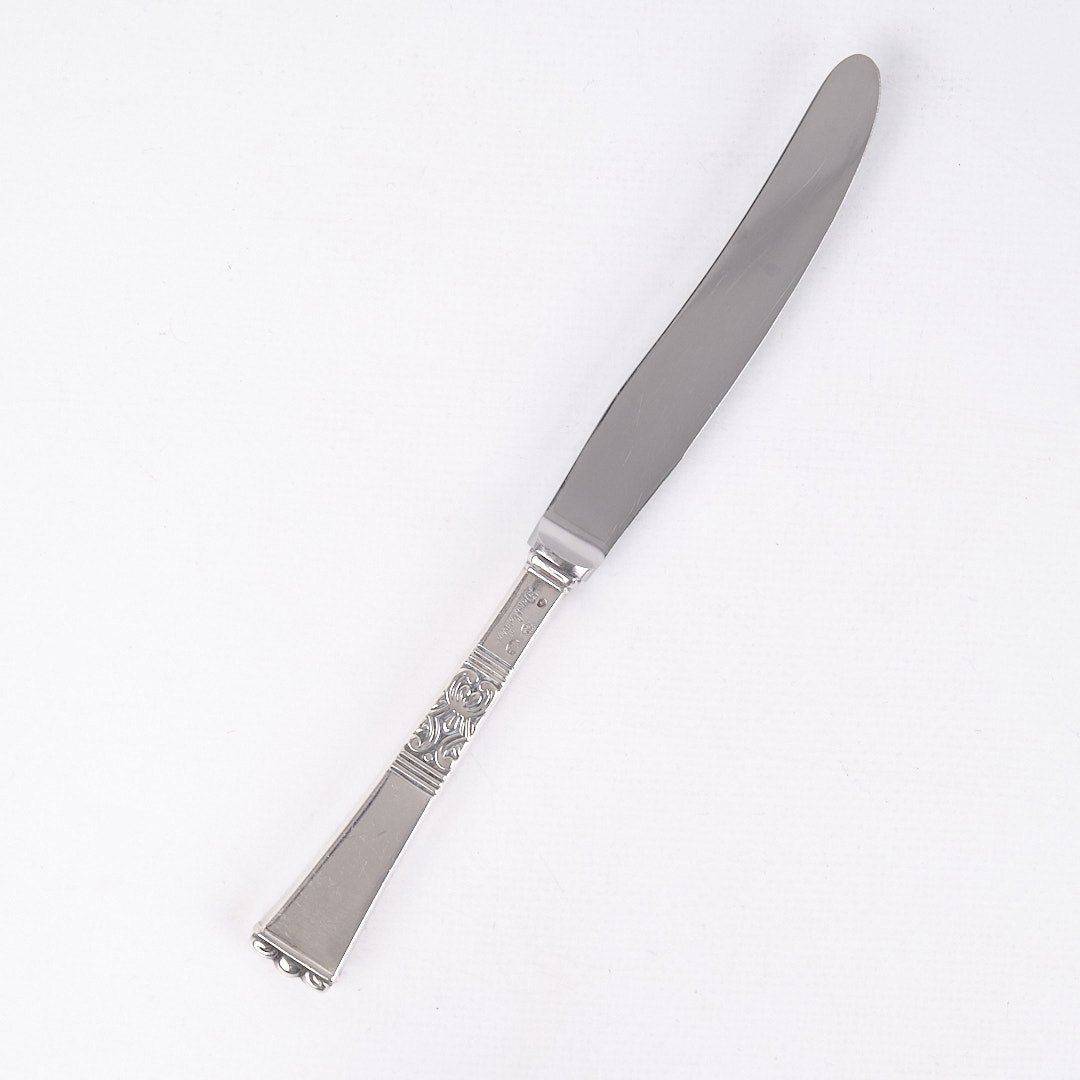 Frokostkniv i Rigsmønstret design af Poul Frigast. Sølv 830s fra 1930’erne.