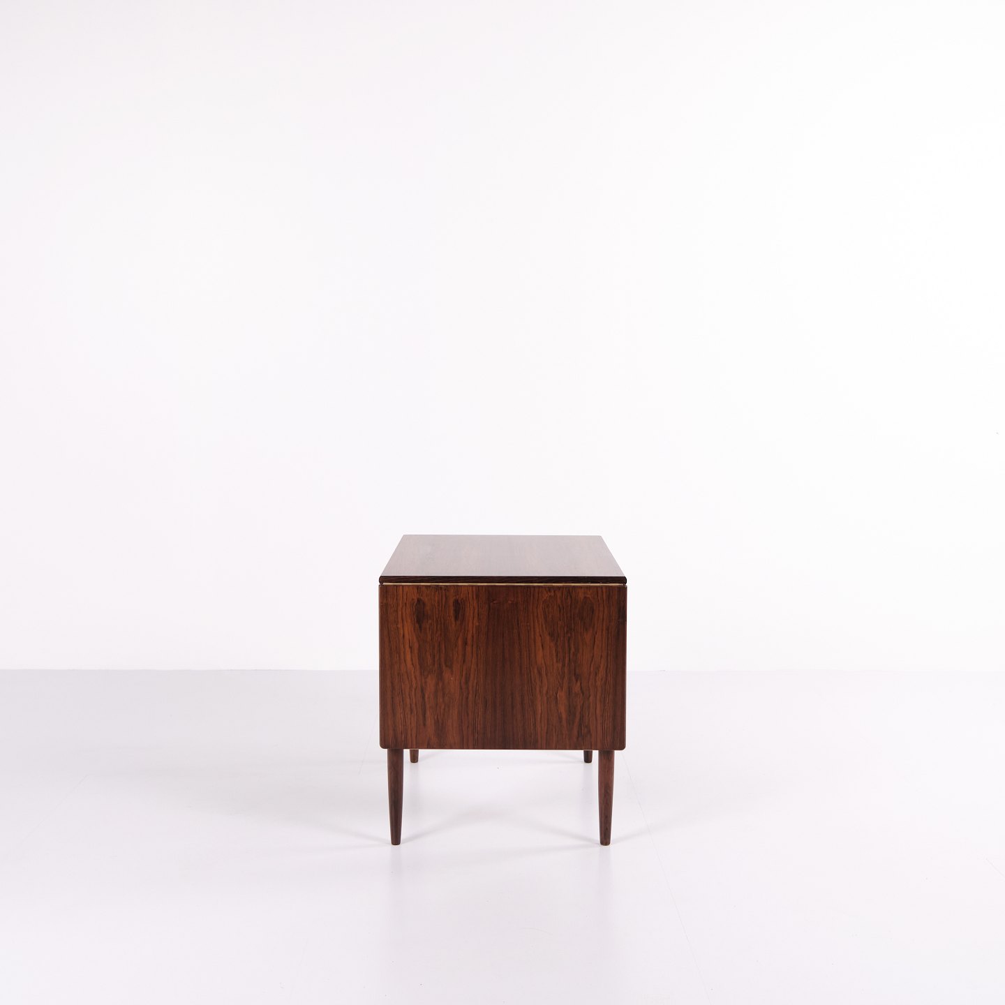 Foldbart sybord designet af Johannes Andersen og fremstillet af Silkeborg Møbelfabrik i 1960’erne. Bordet er udført i palisander og har både skuffe og udklappelig bordplade, hvilket gør det særligt funktionelt til opbevaring og arbejde.