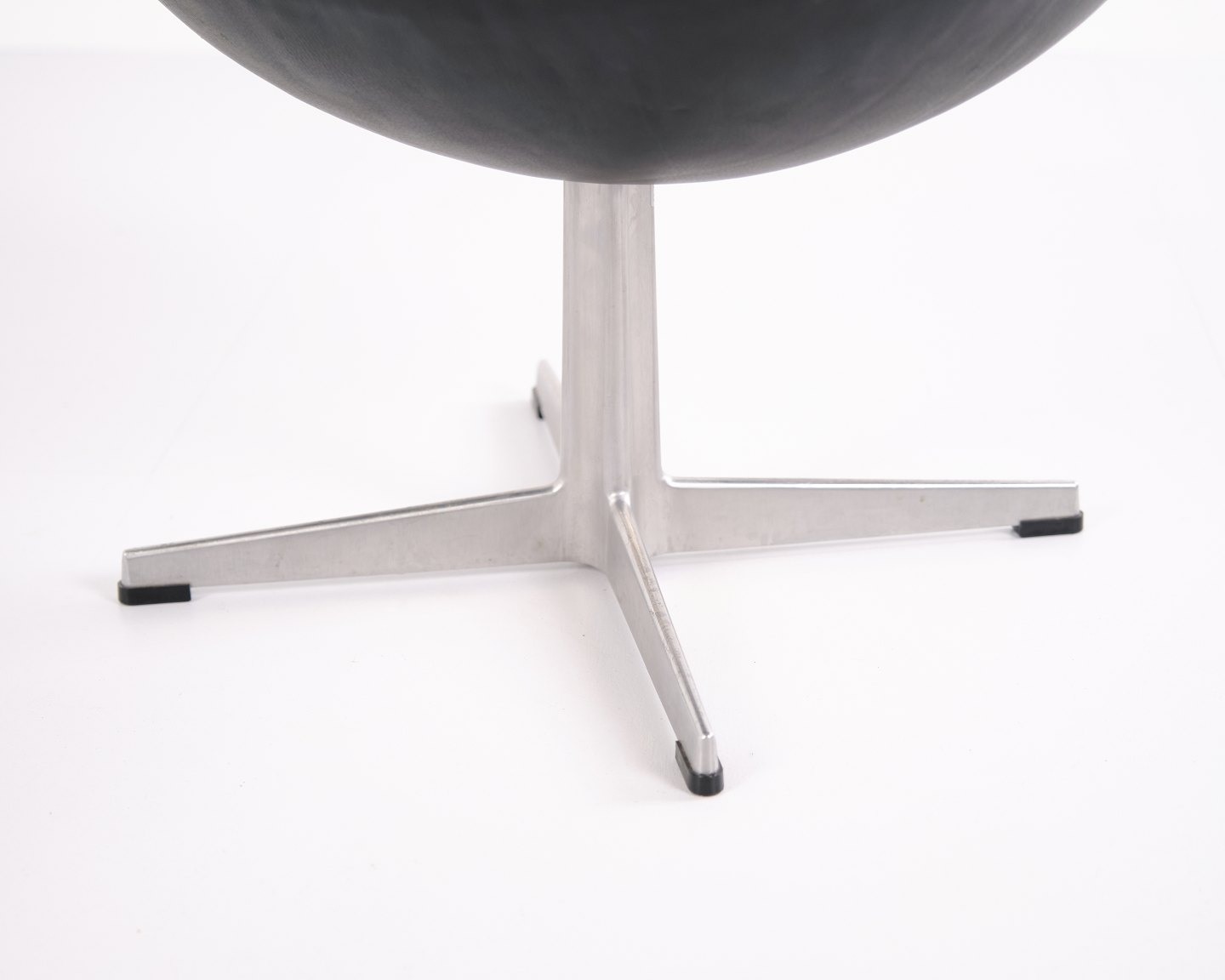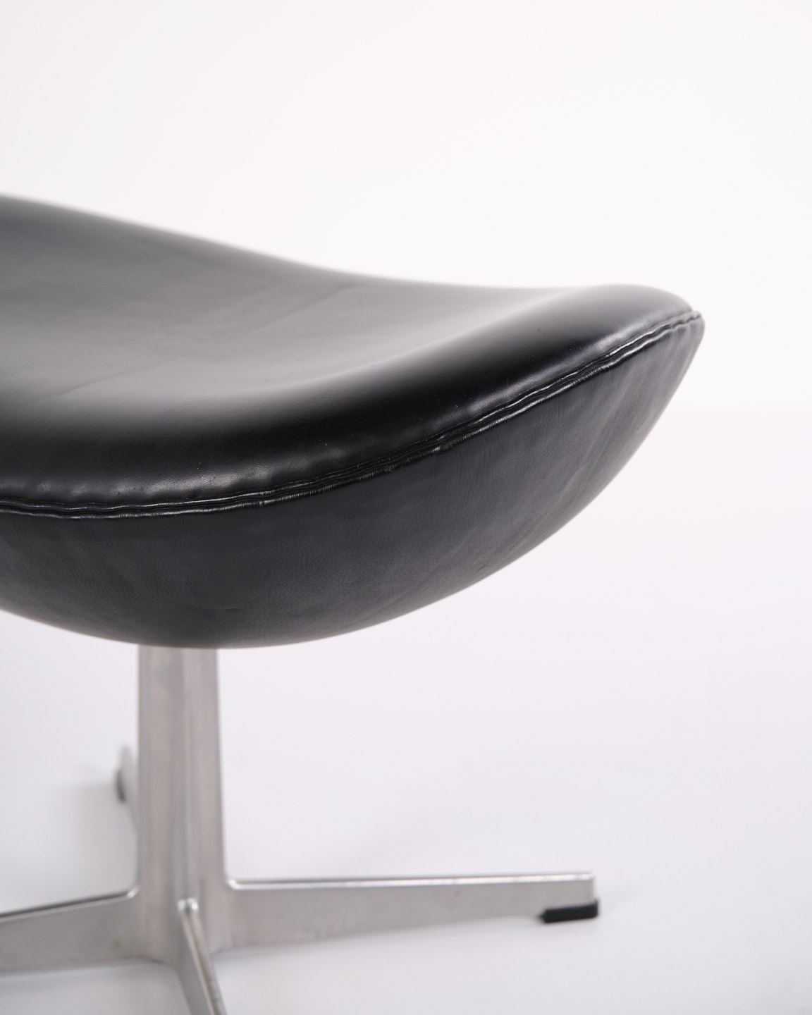 Stool for the Egg Chair, designed by Arne Jacobsen and produced by Fritz Hansen in 2006. Upholstered in black Elegance leather and fitted with an aluminium star base. High-quality materials and craftsmanship consistent with Fritz Hansen’s production standards.