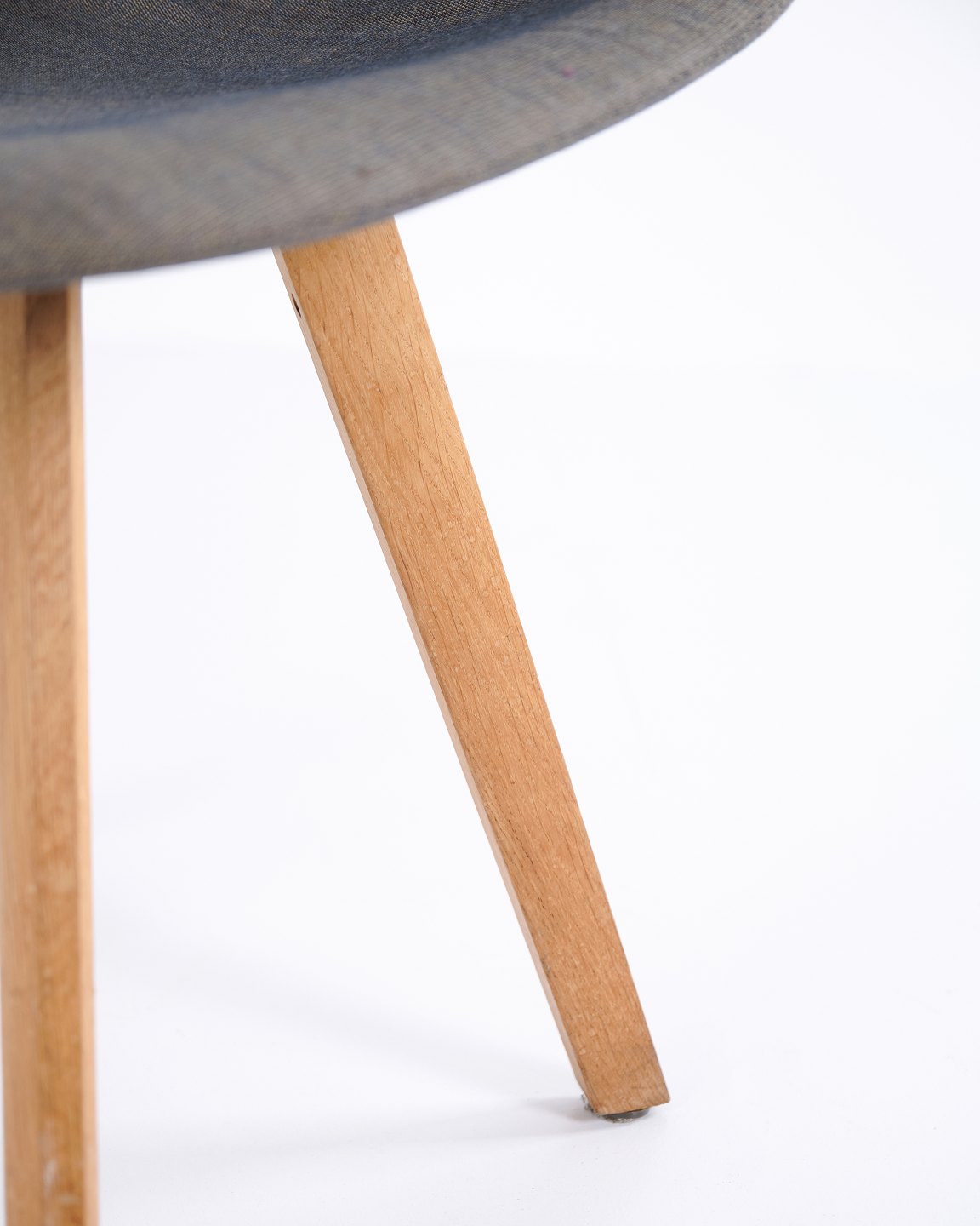 Eyes Wood chair by Erik Jørgensen with mid-grey upholstery and solid wood legs. A modern dining chair offering good seating comfort and high-quality materials.