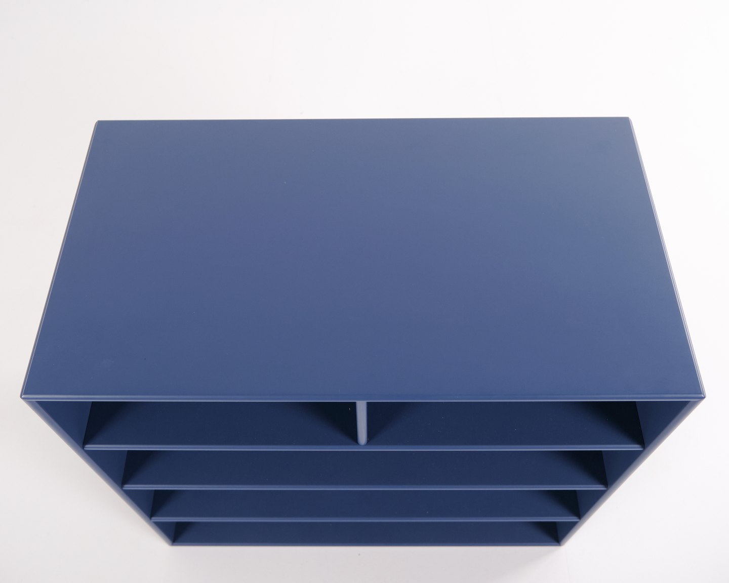 Montana bookcase in blue. Equipped with four open shelves, suitable for storage or display in the living room, office or hallway. A classic Montana module with a simple structure and high functionality.