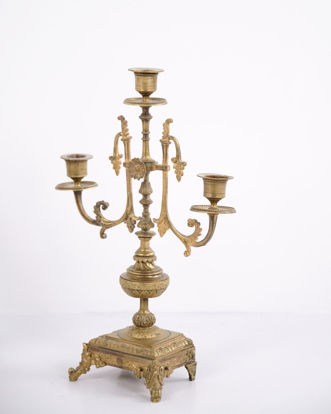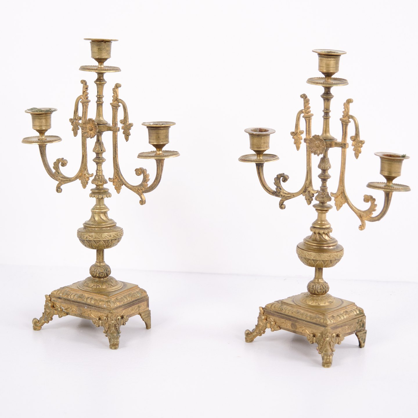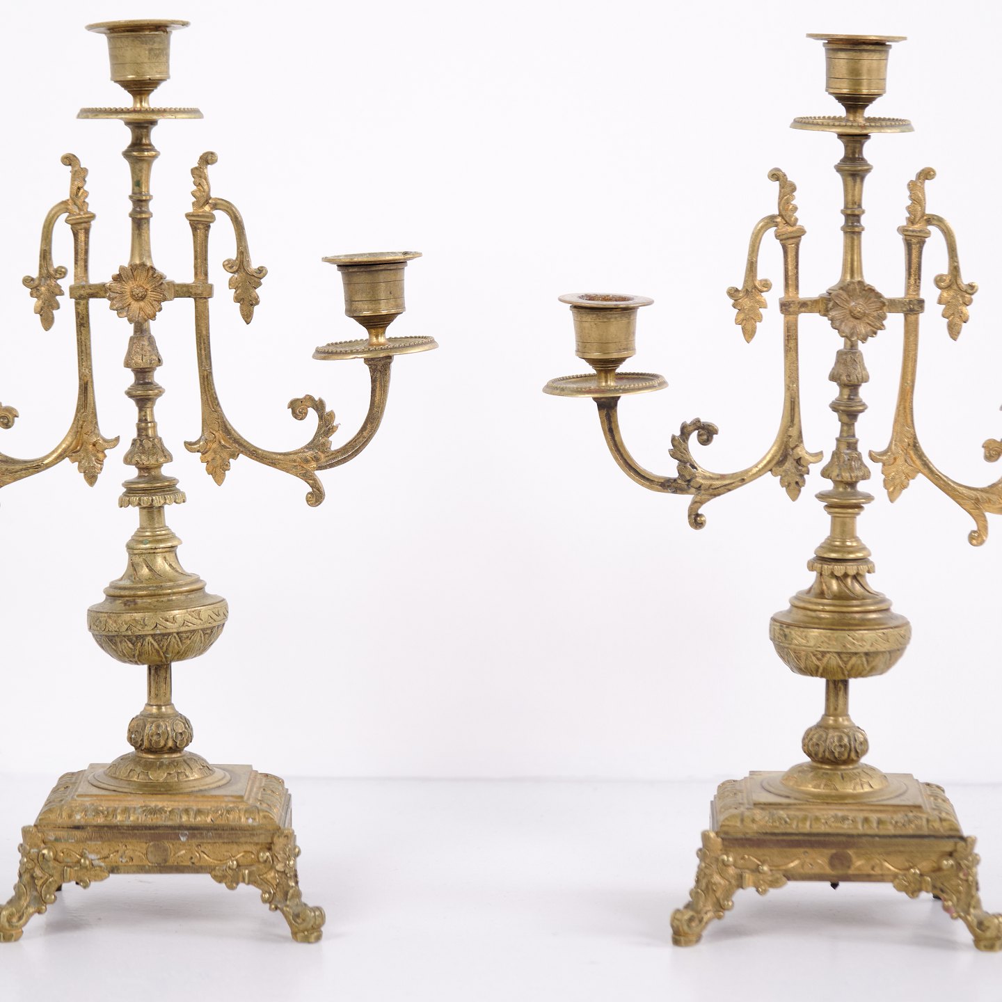French Bronze Candlesticks – 3-Arm – Decorative Details – 1890s