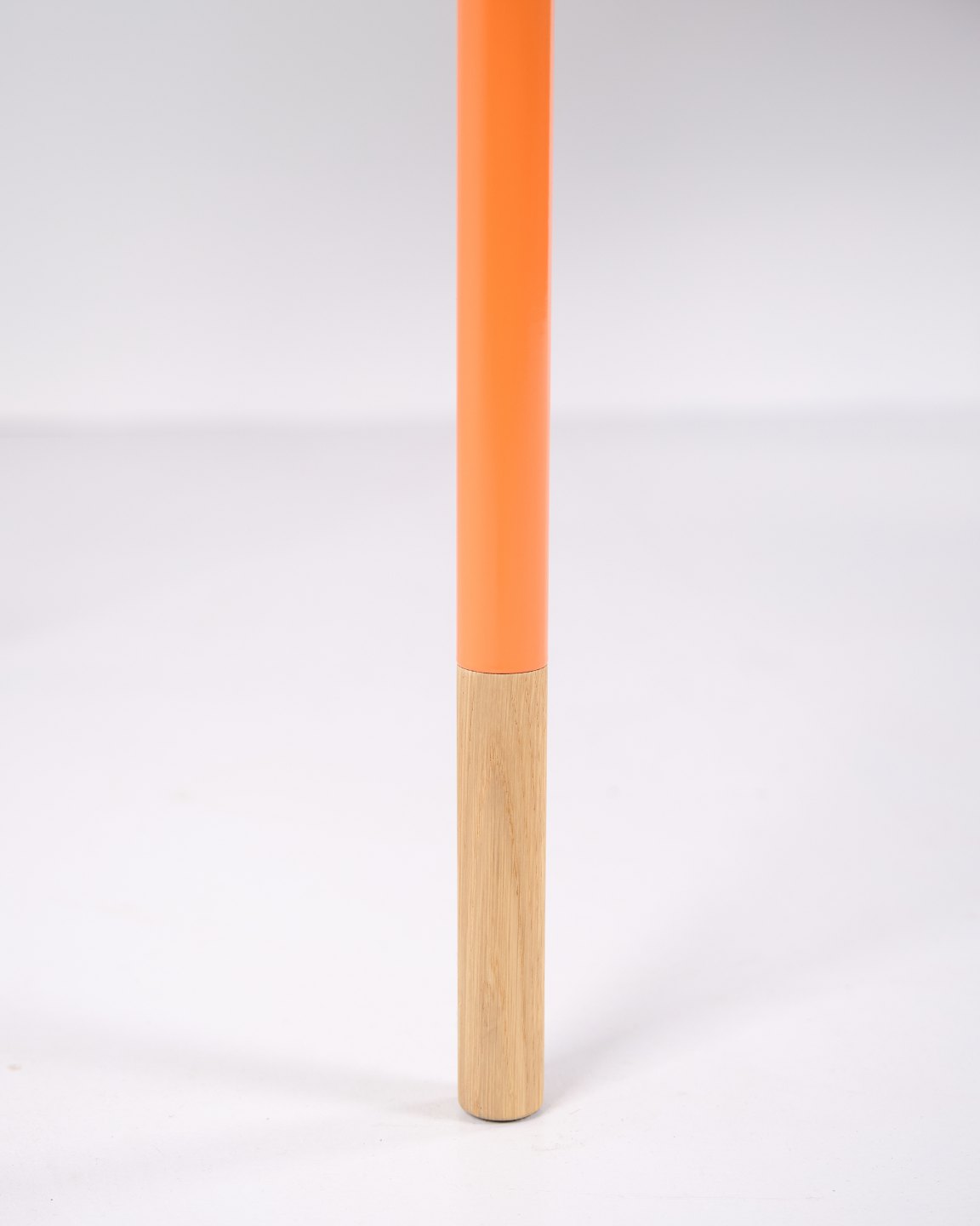 — Materials: Grey linoleum, oregon pine edges, orange-lacquered steel legs