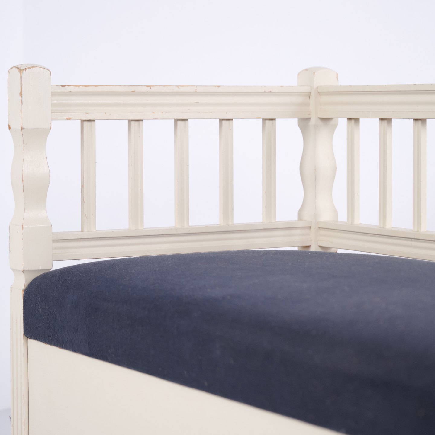 Banc Coffre Antique – Style Gustavien – Peinture Blanche & Assise Rembourrée – Vers 1890
