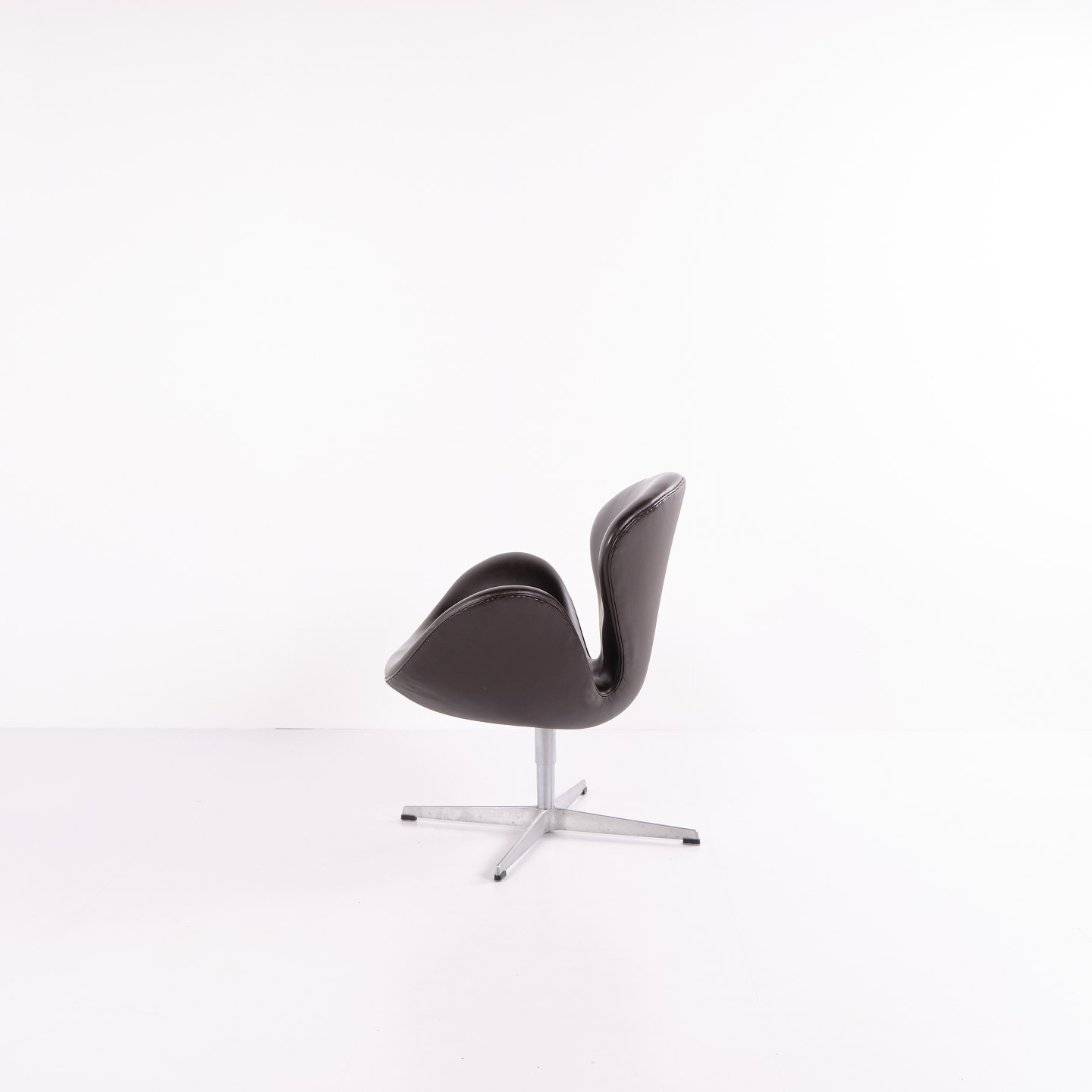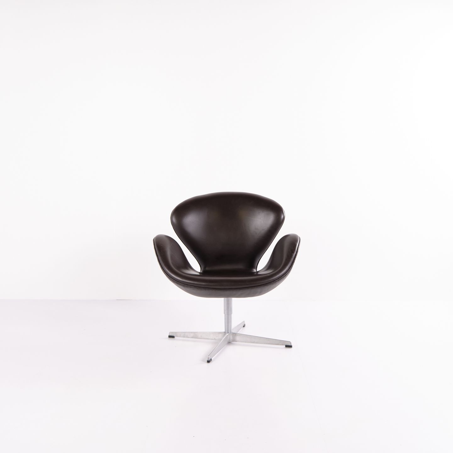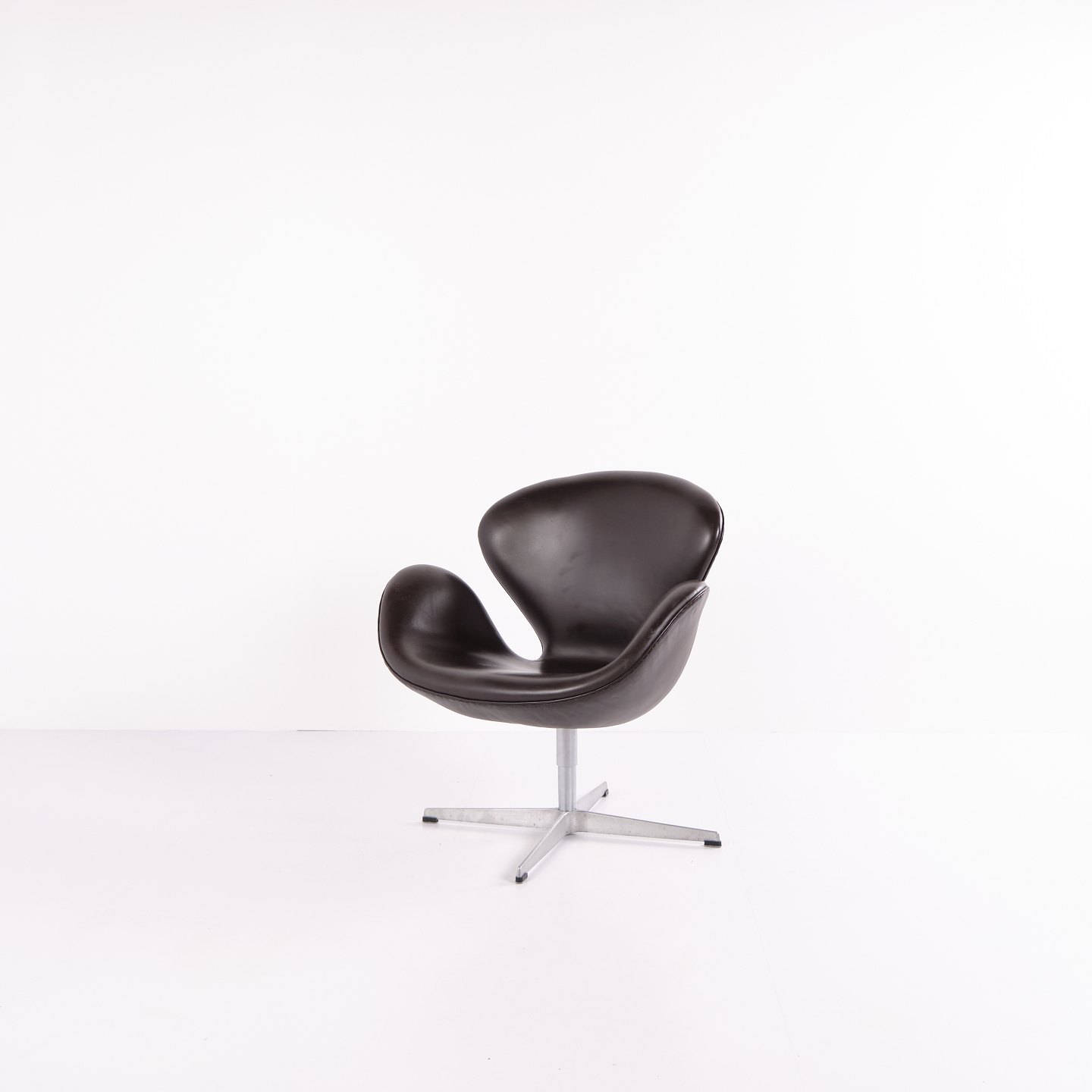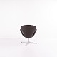 Fauteuil Swan modèle 3320, dessiné par Arne Jacobsen et produit par Fritz Hansen. Réalisé en cuir brun. Production de l’année 2007. Icône du design danois.