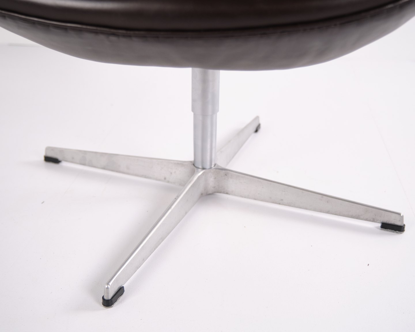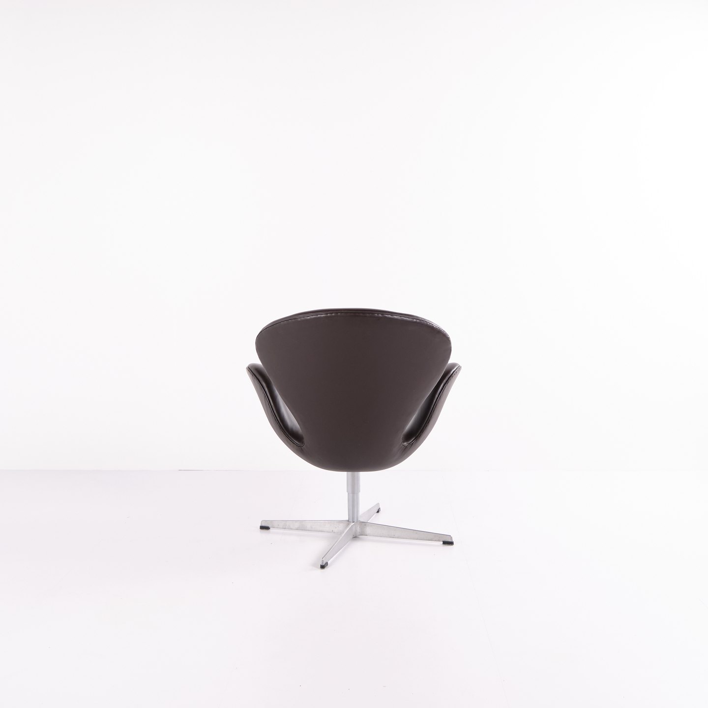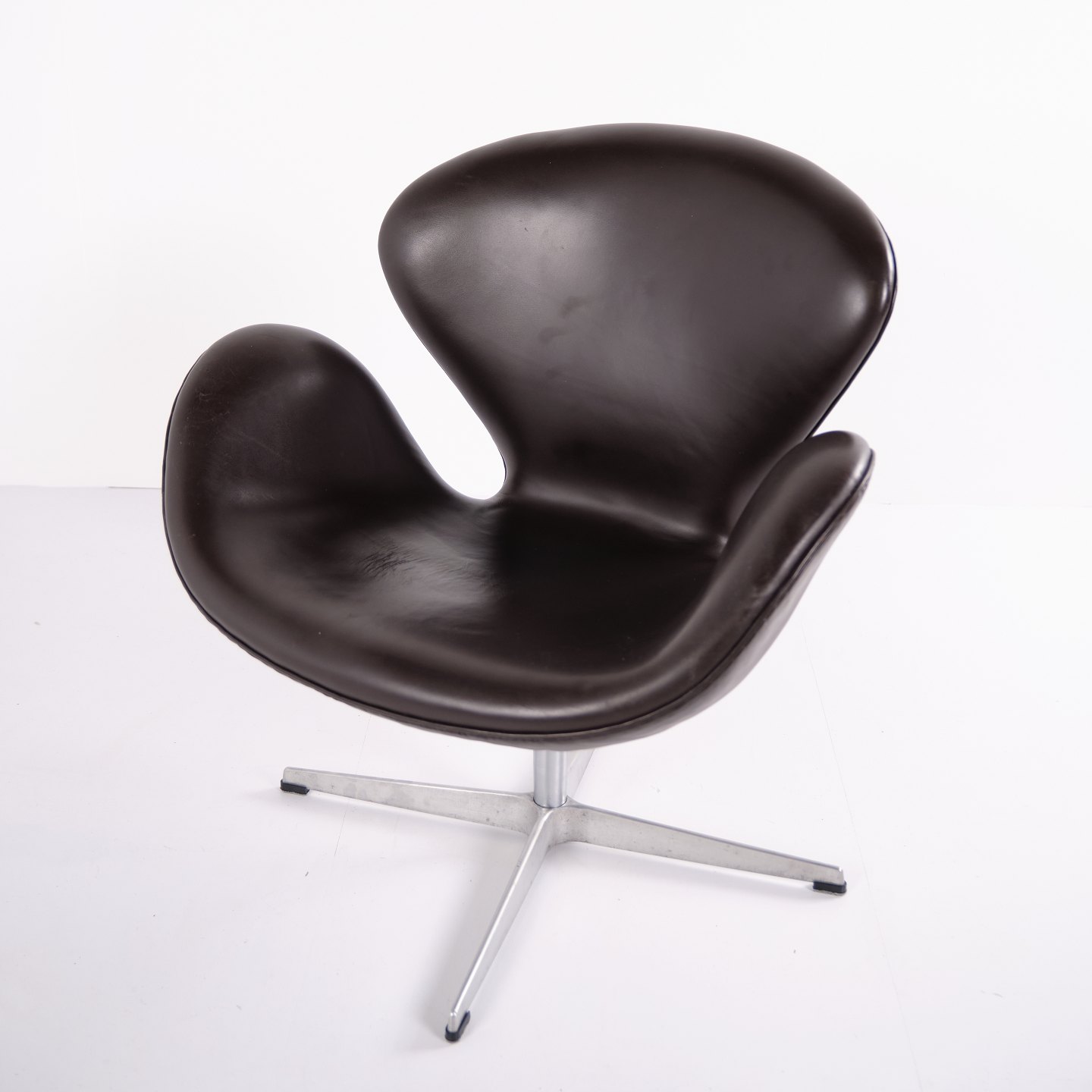 Fauteuil Swan modèle 3320, dessiné par Arne Jacobsen et produit par Fritz Hansen. Réalisé en cuir brun. Production de l’année 2007. Icône du design danois.