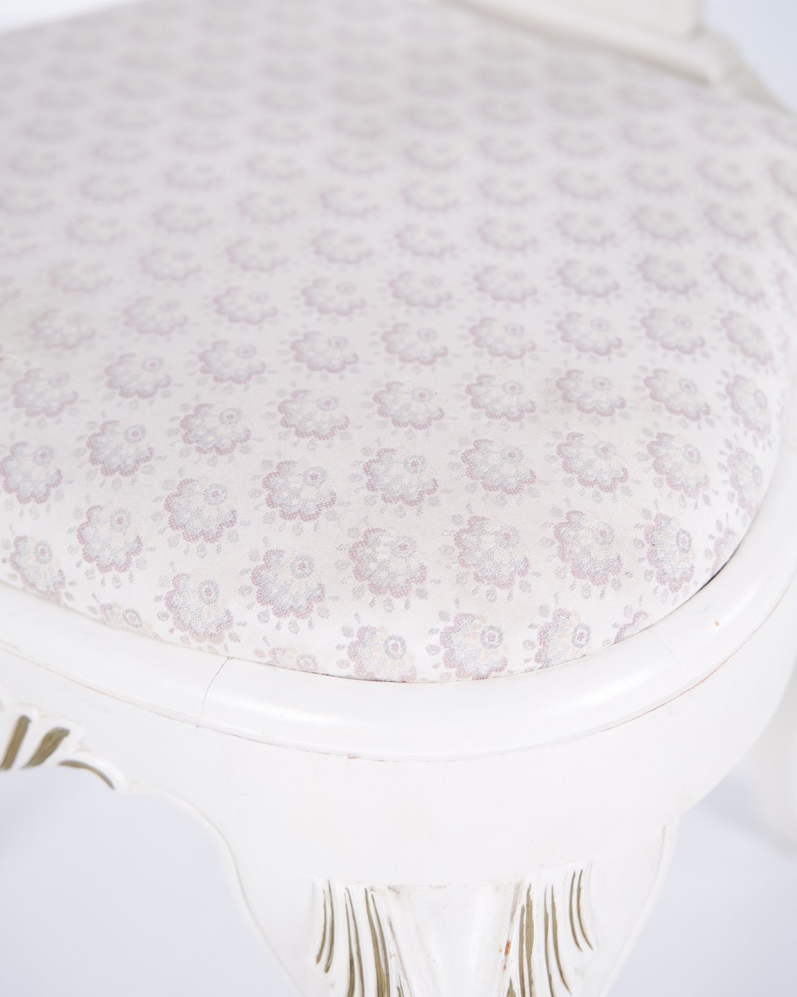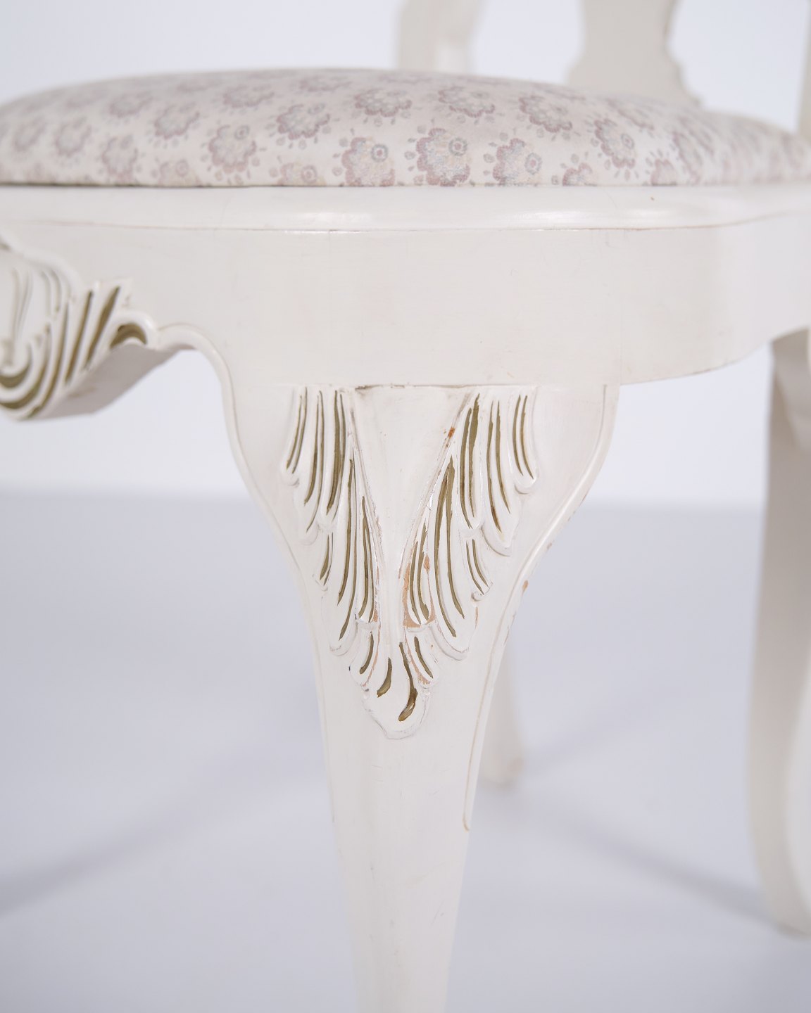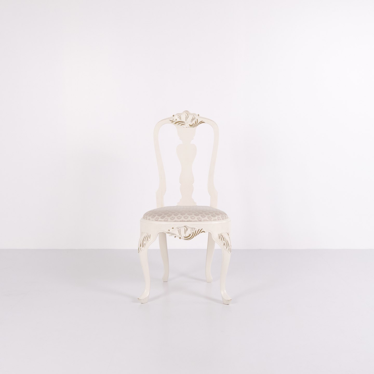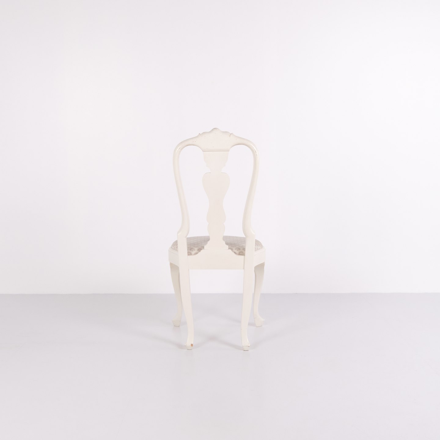 Chaises de salle à manger anciennes de style néo-rococo des années 1920. Ensemble de 6 chaises peintes en blanc avec détails décoratifs.