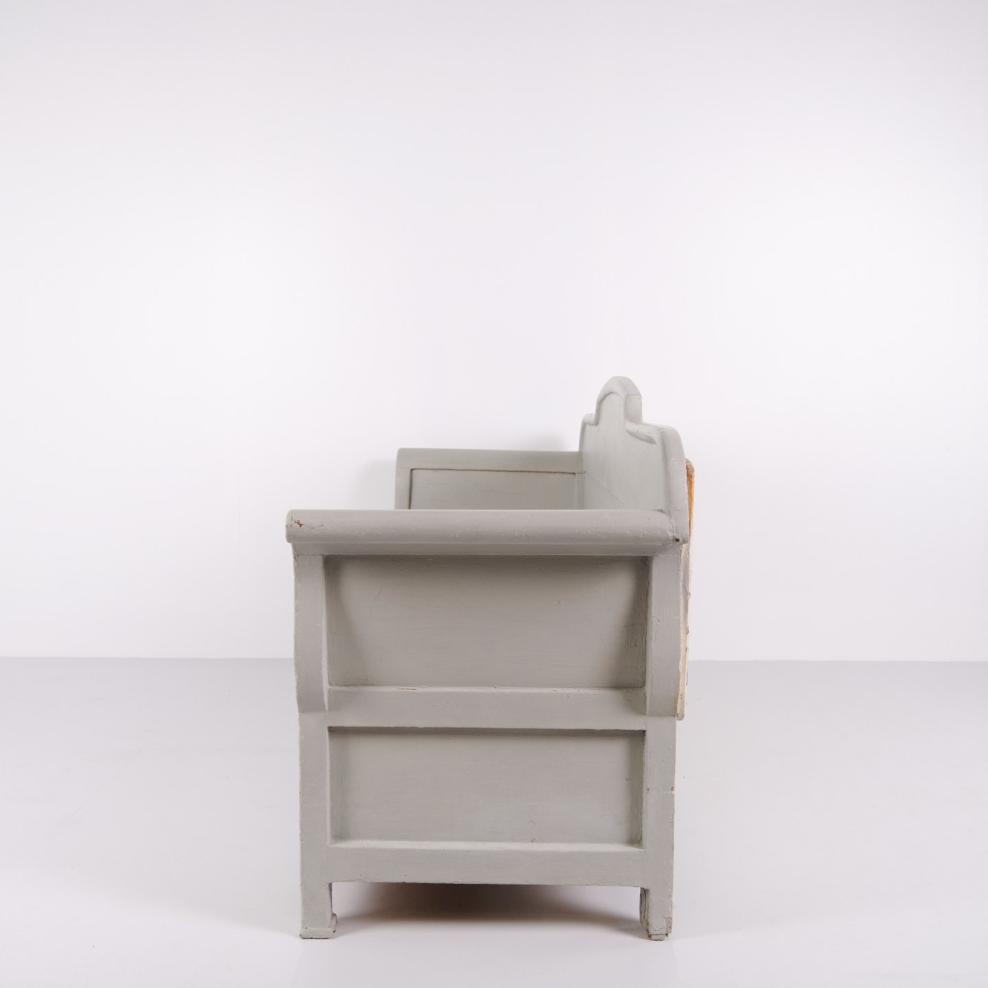 Antique Storage Bench – Grey Painted – Pine Wood – 1890s