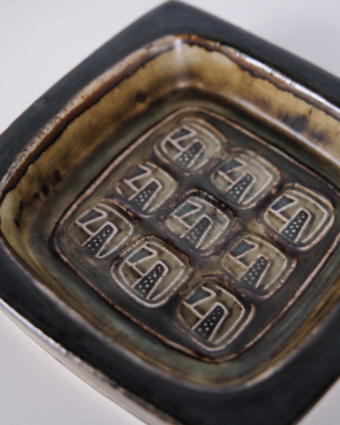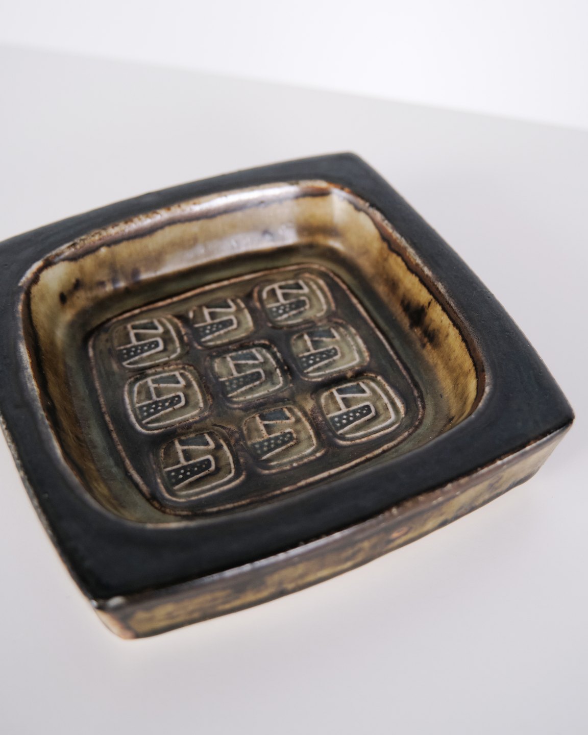 Coupe en grès, également utilisée comme cendrier, modèle 21872, conçue par Jørgen Mogensen pour Royal Copenhagen. Réalisée en grès avec une conception fonctionnelle, typique des objets utilitaires créés par Jørgen Mogensen pour Royal Copenhagen au milieu du XXe siècle.