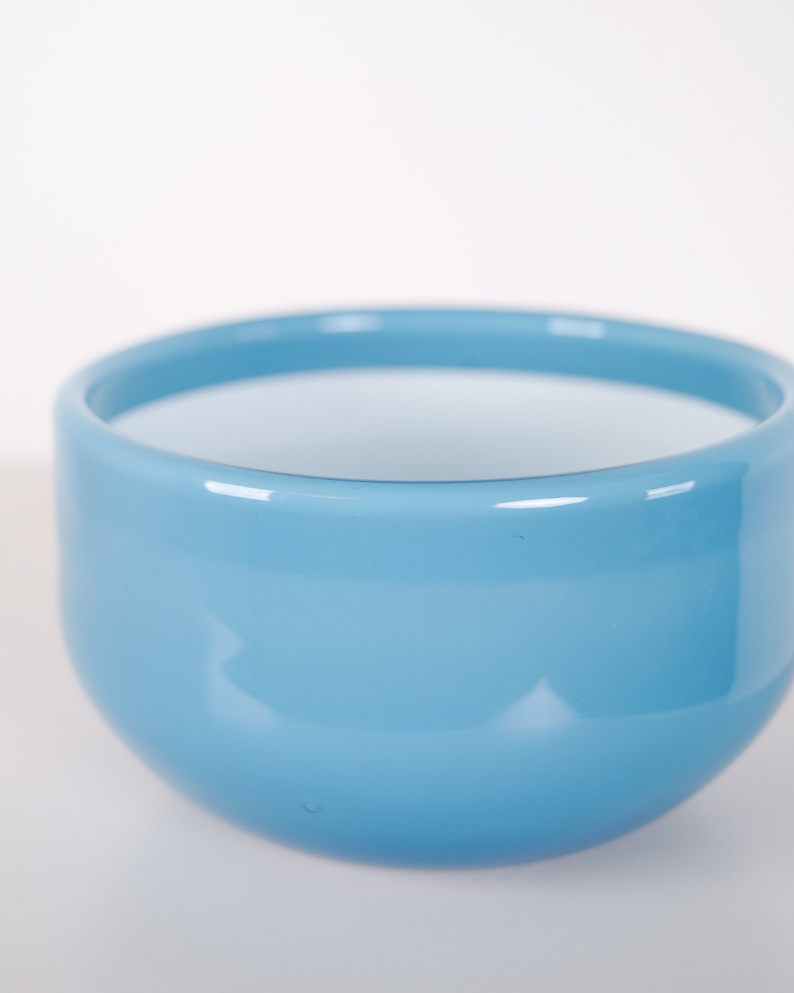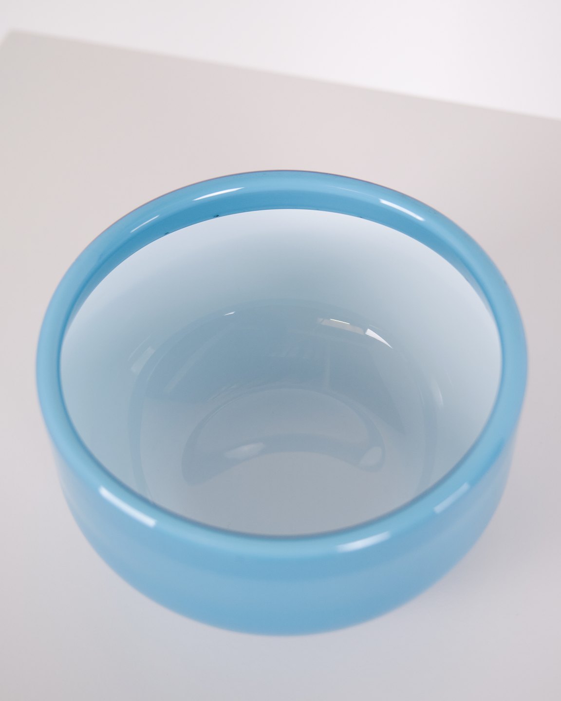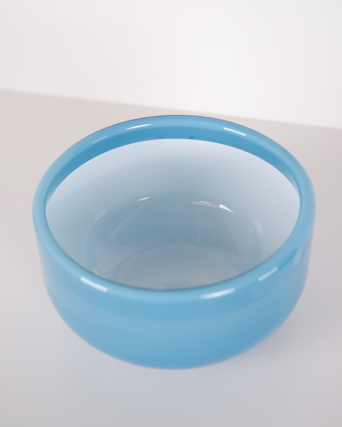 Coupe en verre de la série Palet conçue par Michael Bang pour Holmegaard. Réalisée en verre de couleur bleue, cette pièce fait partie de la production Holmegaard de la seconde moitié du XXe siècle et s’inscrit dans le design verrier danois classique.