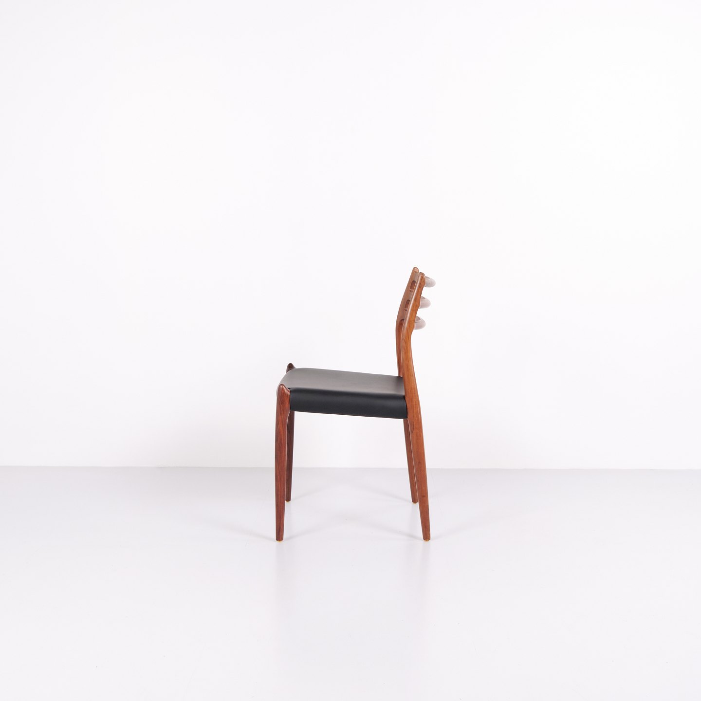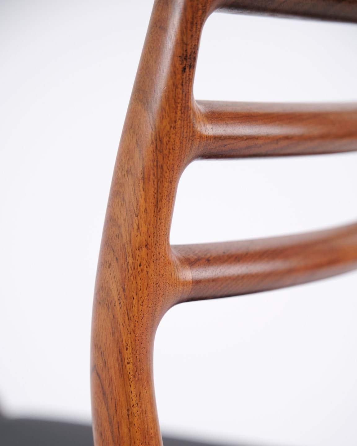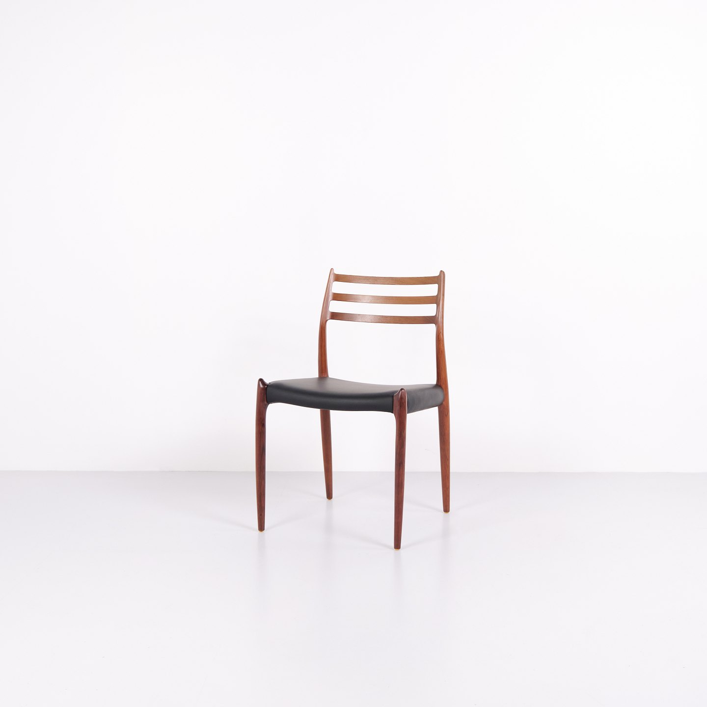 Ensemble de quatre chaises de salle à manger N.O. Møller, modèle 78, en palissandre des années 1950. Design danois classique avec un élégant travail d’ébénisterie.