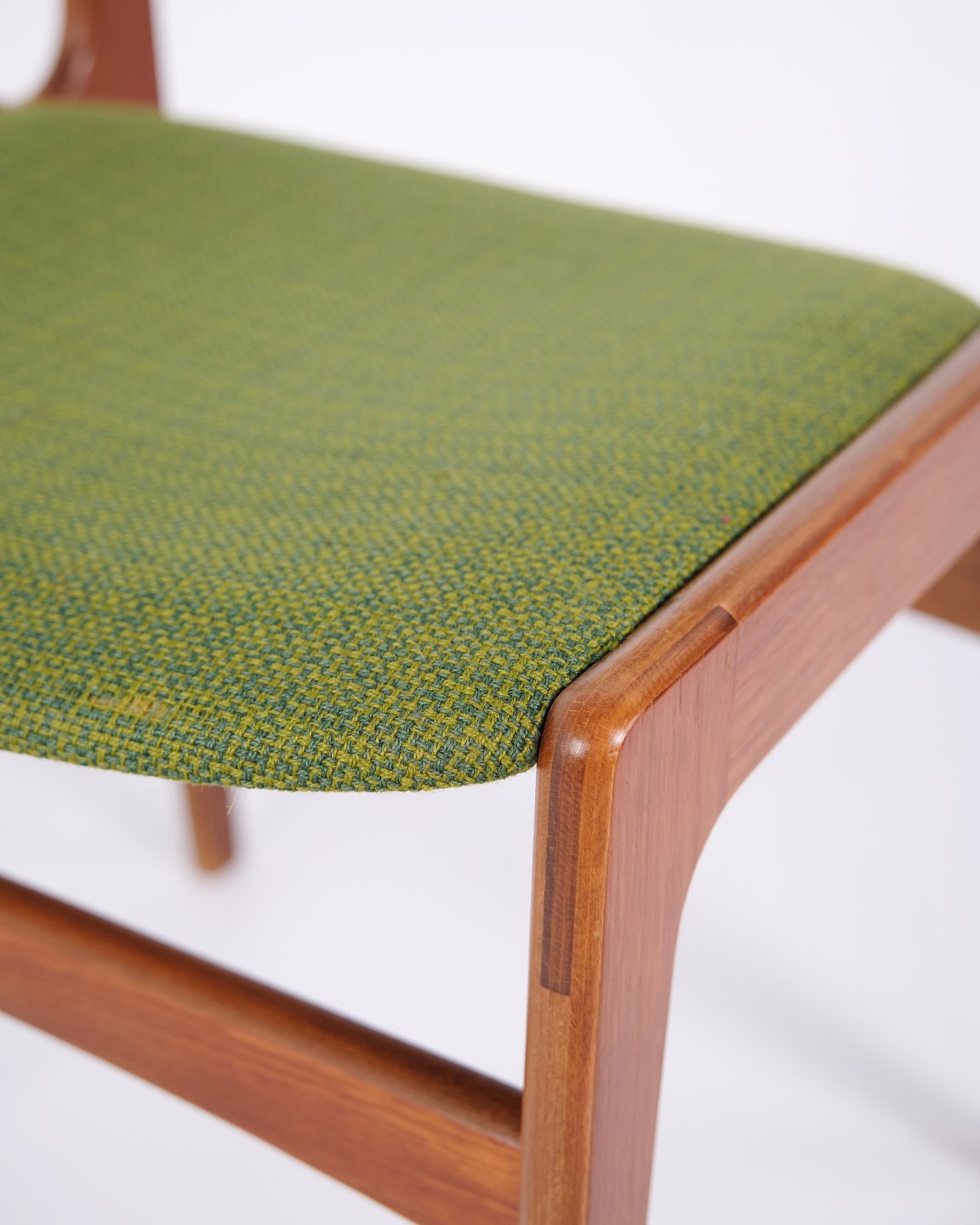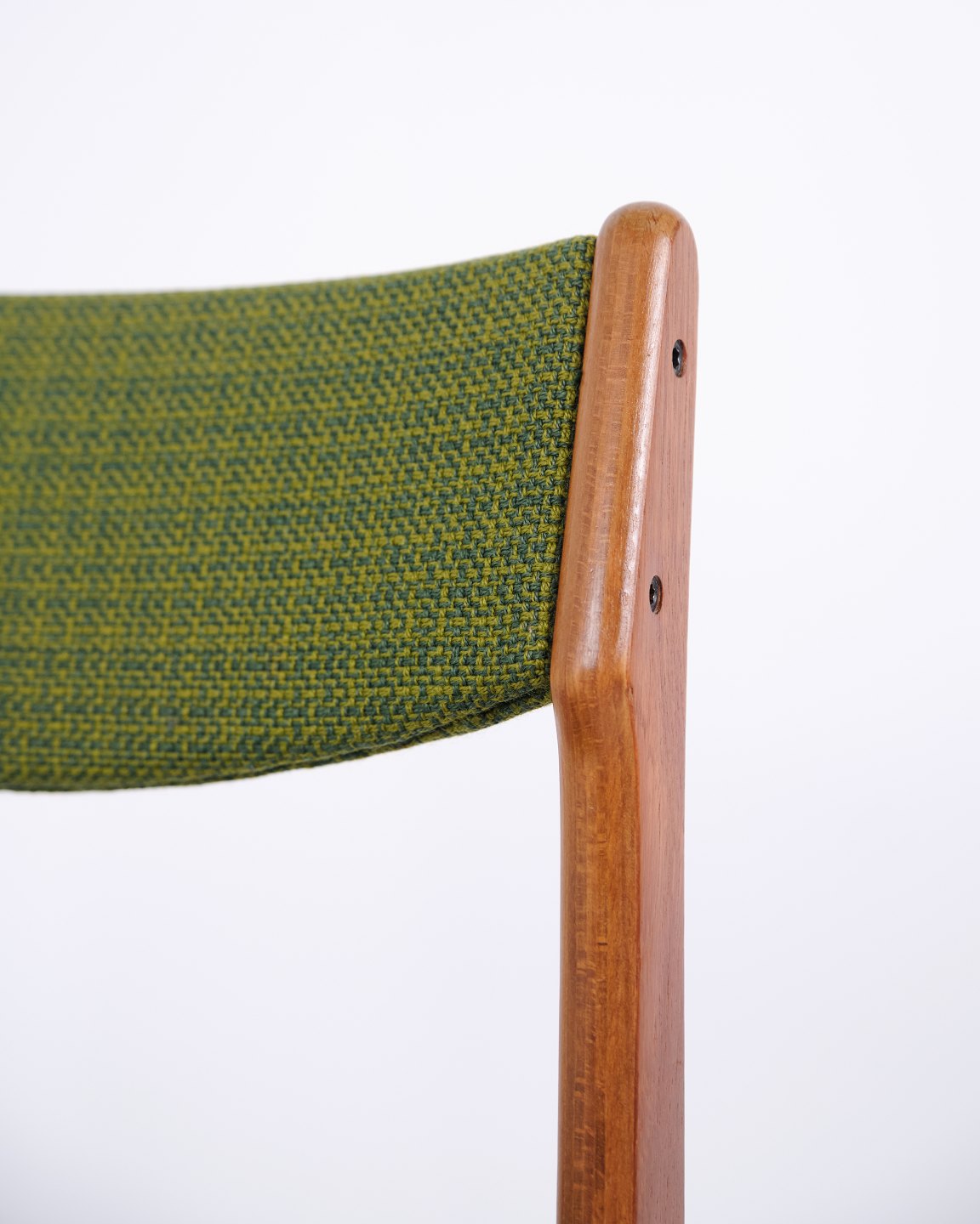 Chaise de salle à manger Erik Buch des années 1960 en teck et tissu vert. Design danois classique.