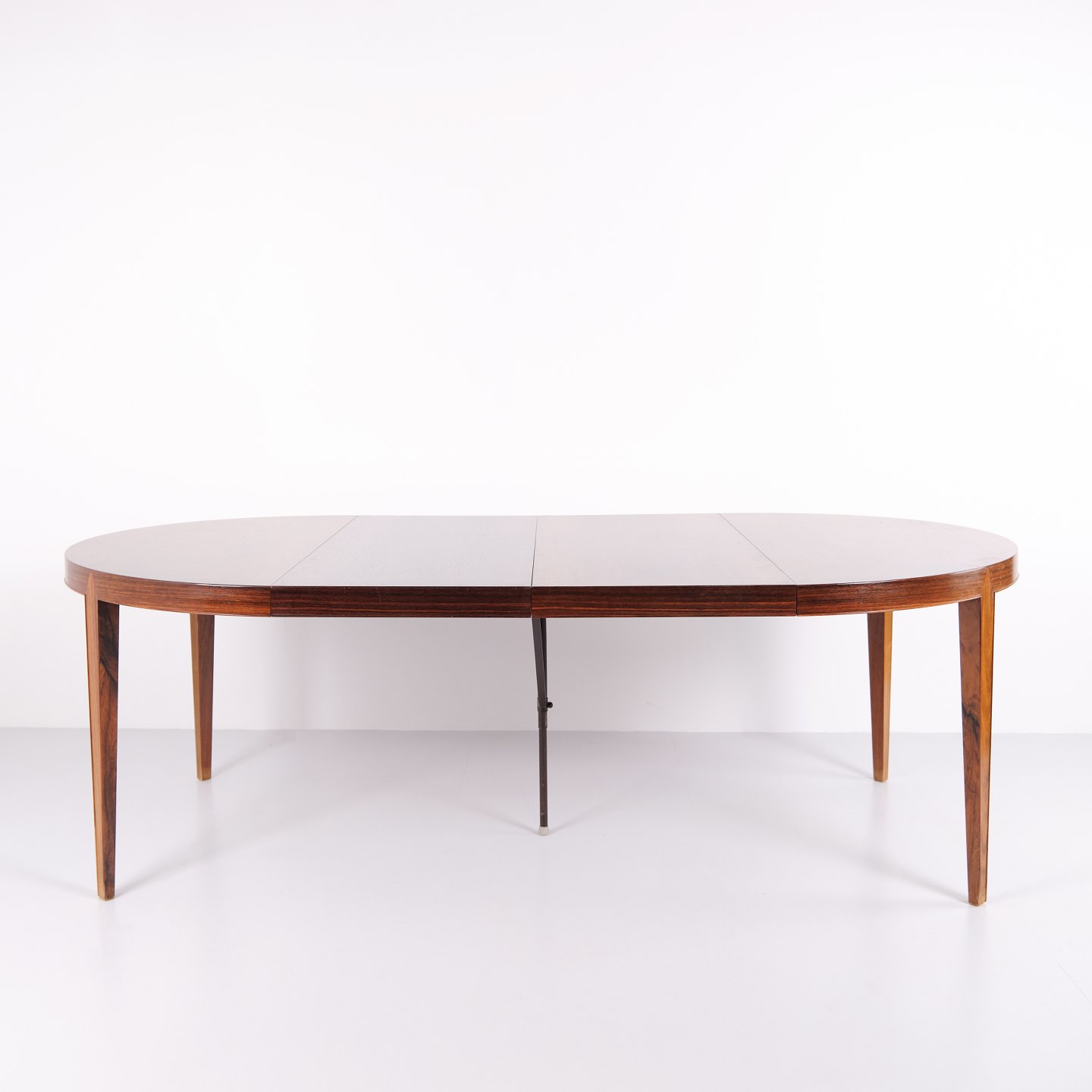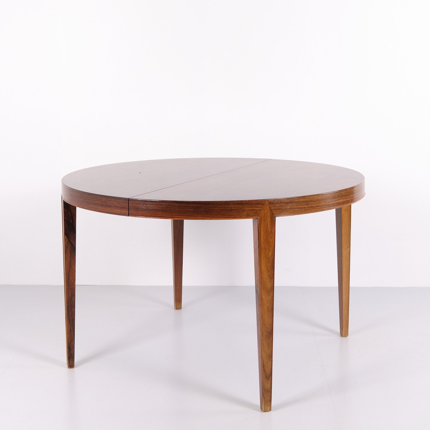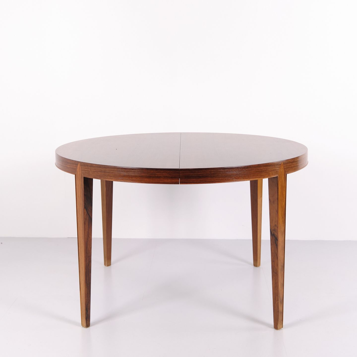 Table à manger ronde Severin Hansen modèle 57 en palissandre de Haslev Møbelfabrik. Design danois des années 1960 avec rallonges et un langage de forme classique.