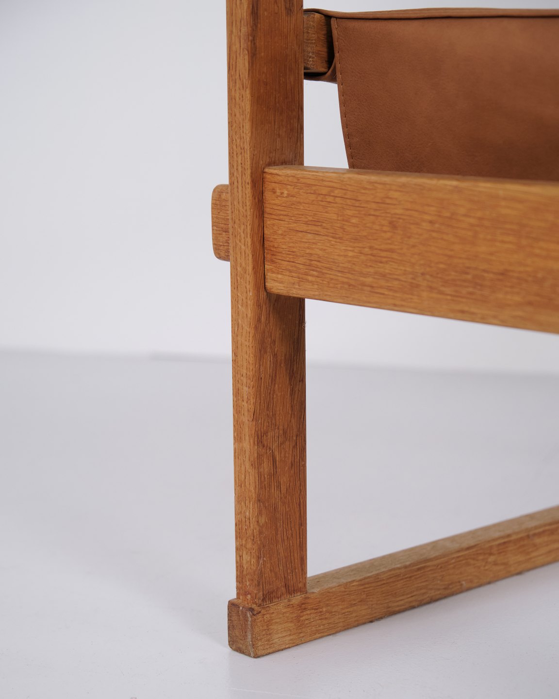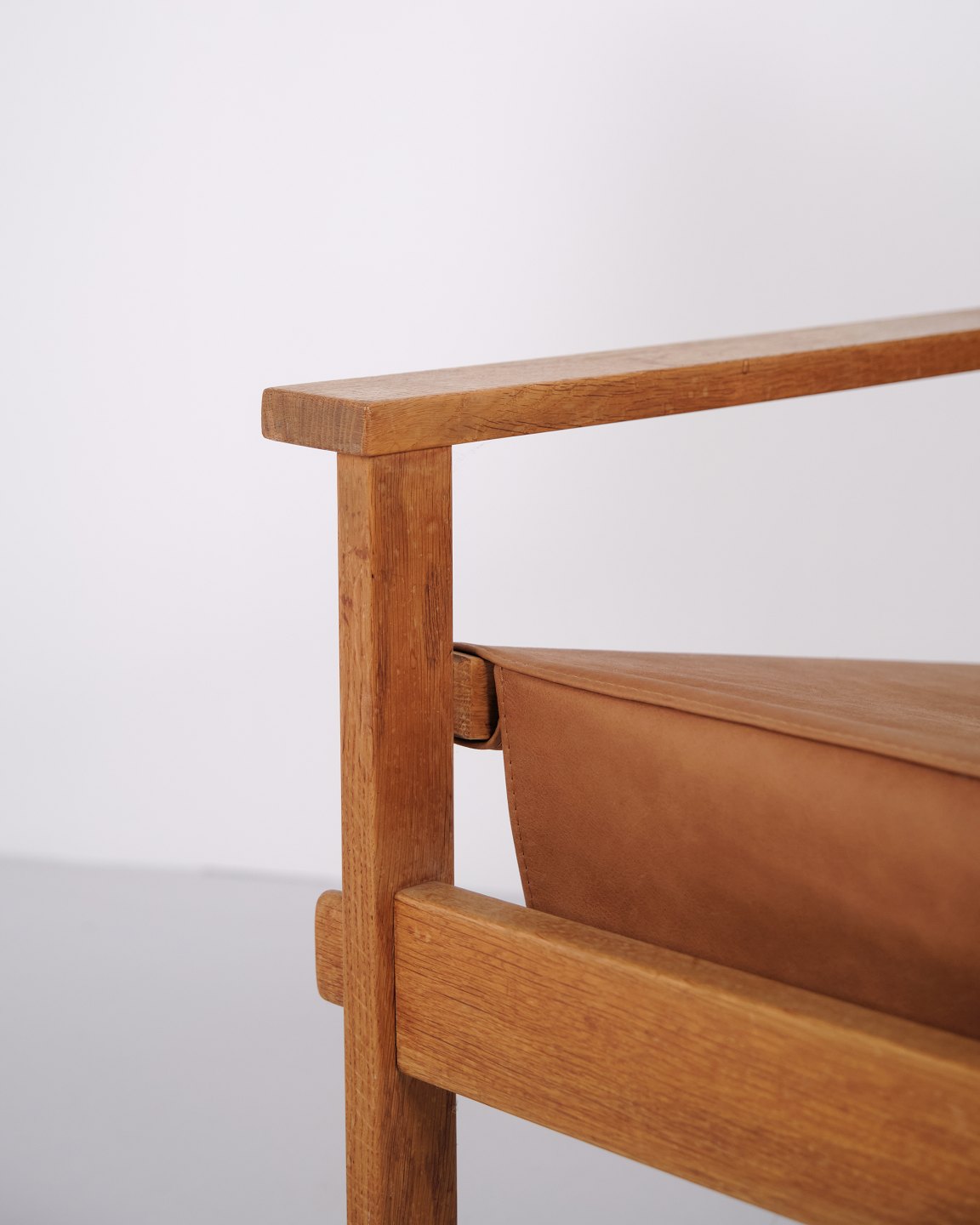 Le design se caractérise par une construction solide et des lignes épurées, typiques du mobilier danois du début des années 1960. La combinaison du chêne et du cuir met en valeur la qualité artisanale et le confort du fauteuil.