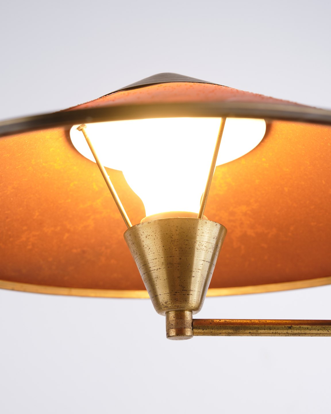 — Matériau : Laiton patiné et abat-jour en peau de porc