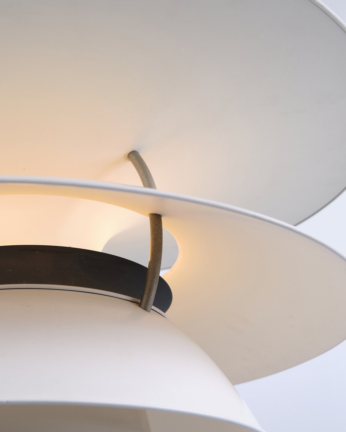 Pour réduire l’éblouissement, un abat-jour intérieur bleu a été ajouté, améliorant le confort lumineux et offrant un éclairage plus agréable. La construction s’appuie sur les principes de Henningsen en matière de répartition optimale de la lumière et de design fonctionnel.